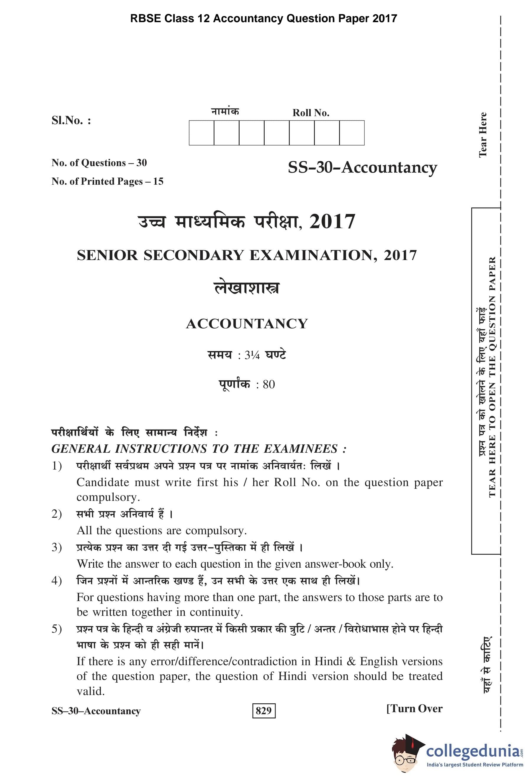 | RBSE Class 12 Accountancy Question Paper 2017 PDF | RBSE Class 12 Accountancy Answer Key 2017 PDF |