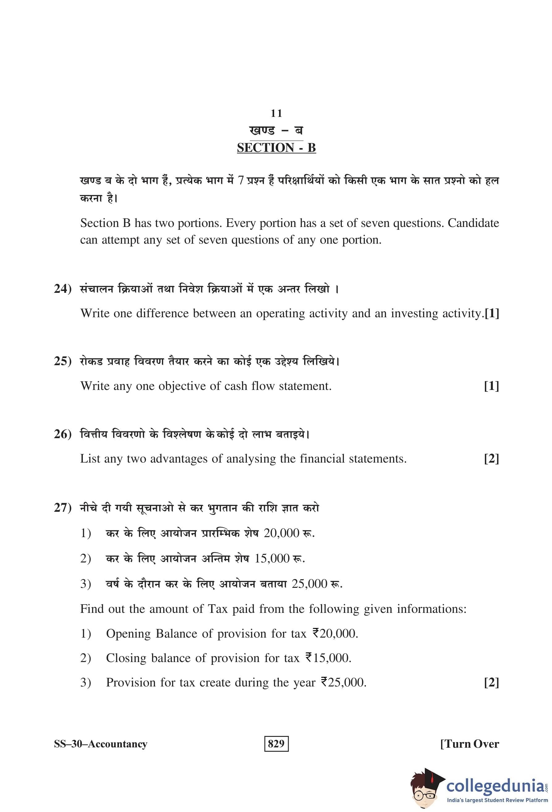 RBSE Class 12 Accountancy Question Paper 2017 with Answer Key pdf is available for download here. The exam was conducted by Board of Secondary Education Rajasthan (BSER) on March 6, 2017 in the Morning Session 8:30 AM to 11:45 AM. The question paper comprised a total of 30 questions divided among 2 sections.