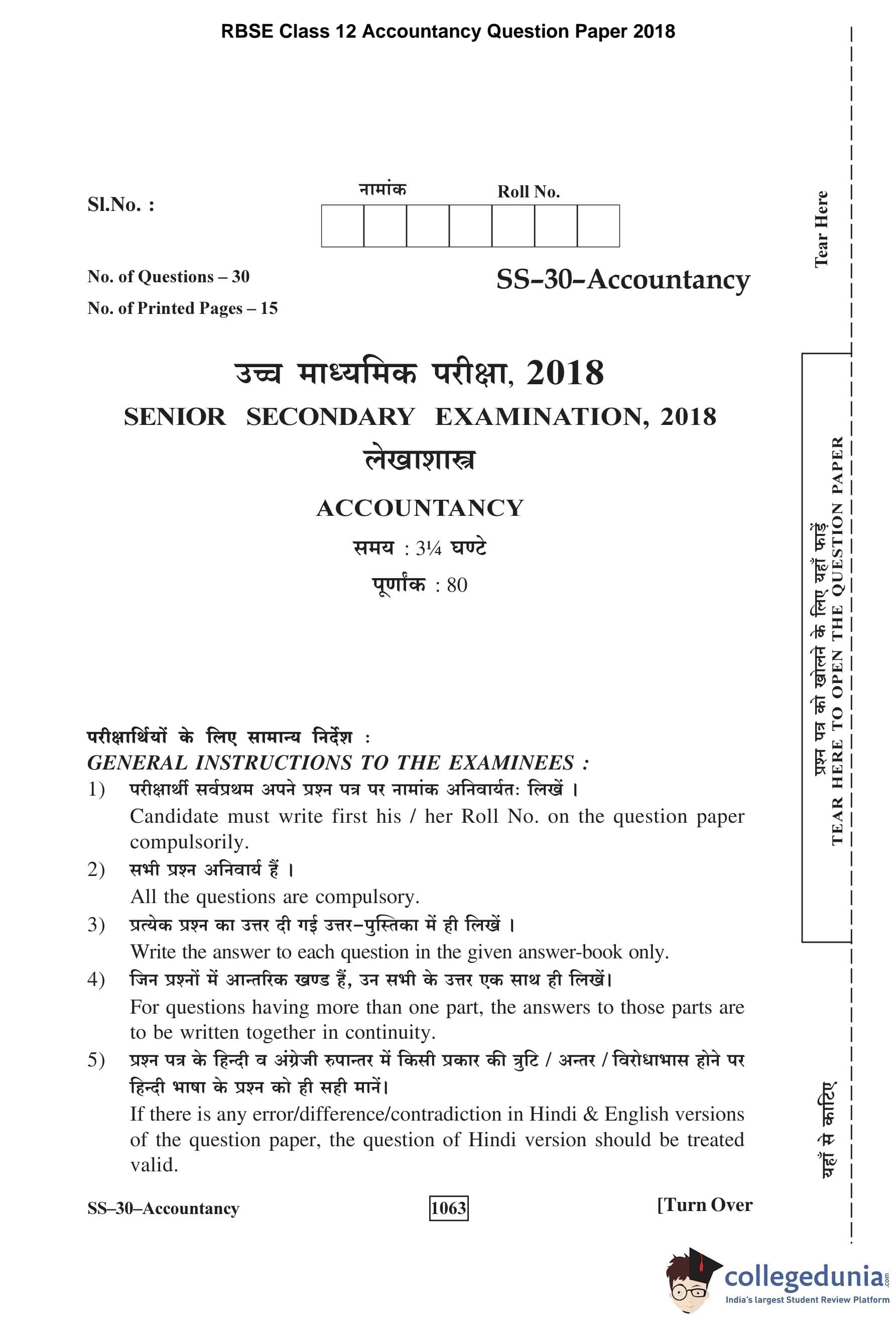 | RBSE Class 12 Accountancy Question Paper 2018 PDF | RBSE Class 12 Accountancy Answer Key 2018 PDF |
