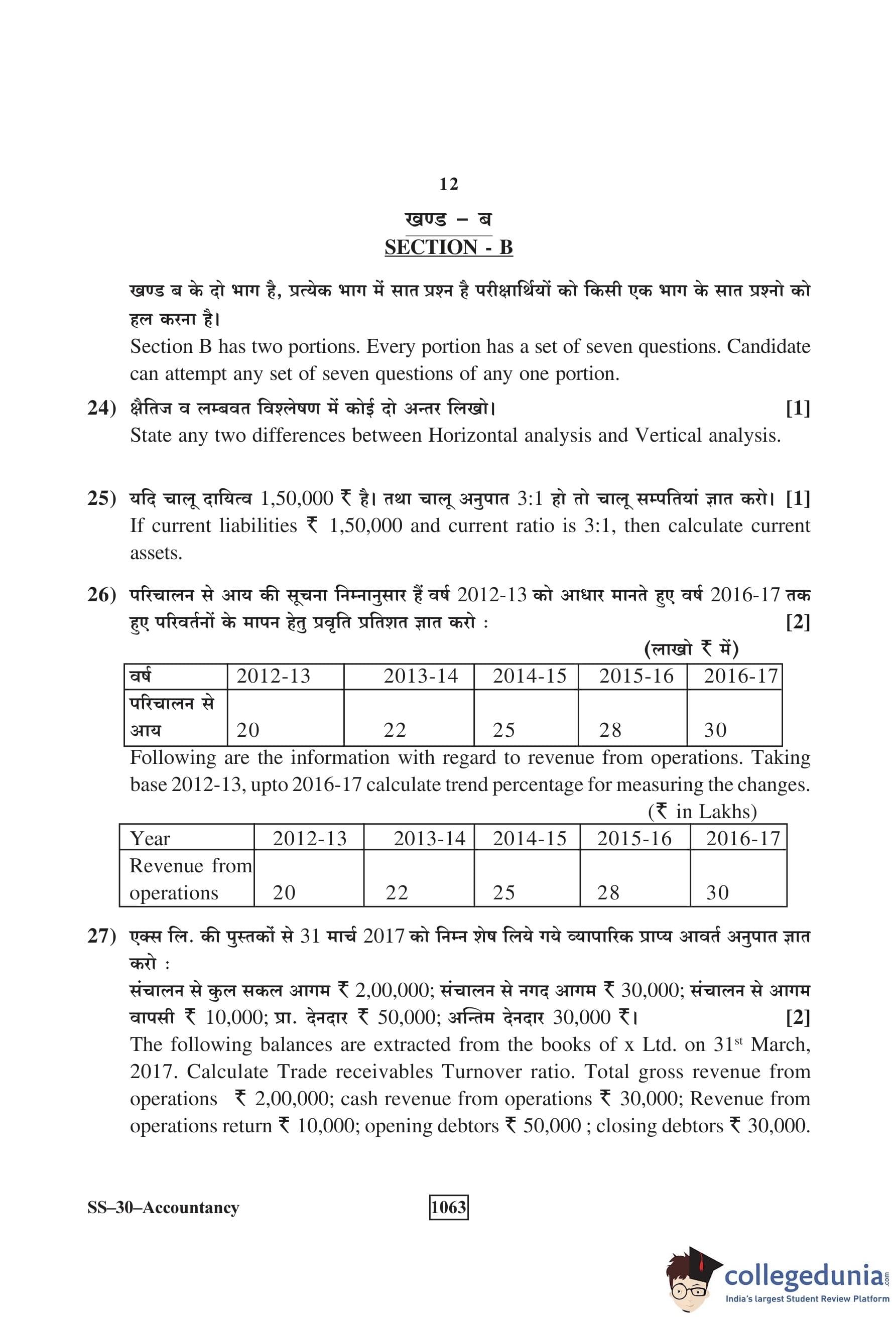 RBSE Class 12 Accountancy Question Paper 2018 with Answer Key pdf is available for download here. The exam was conducted by Board of Secondary Education Rajasthan (BSER) on March 12, 2018 in the Morning Session 8:30 AM to 11:45 AM. The question paper comprised a total of 30 questions divided among 2 sections.
