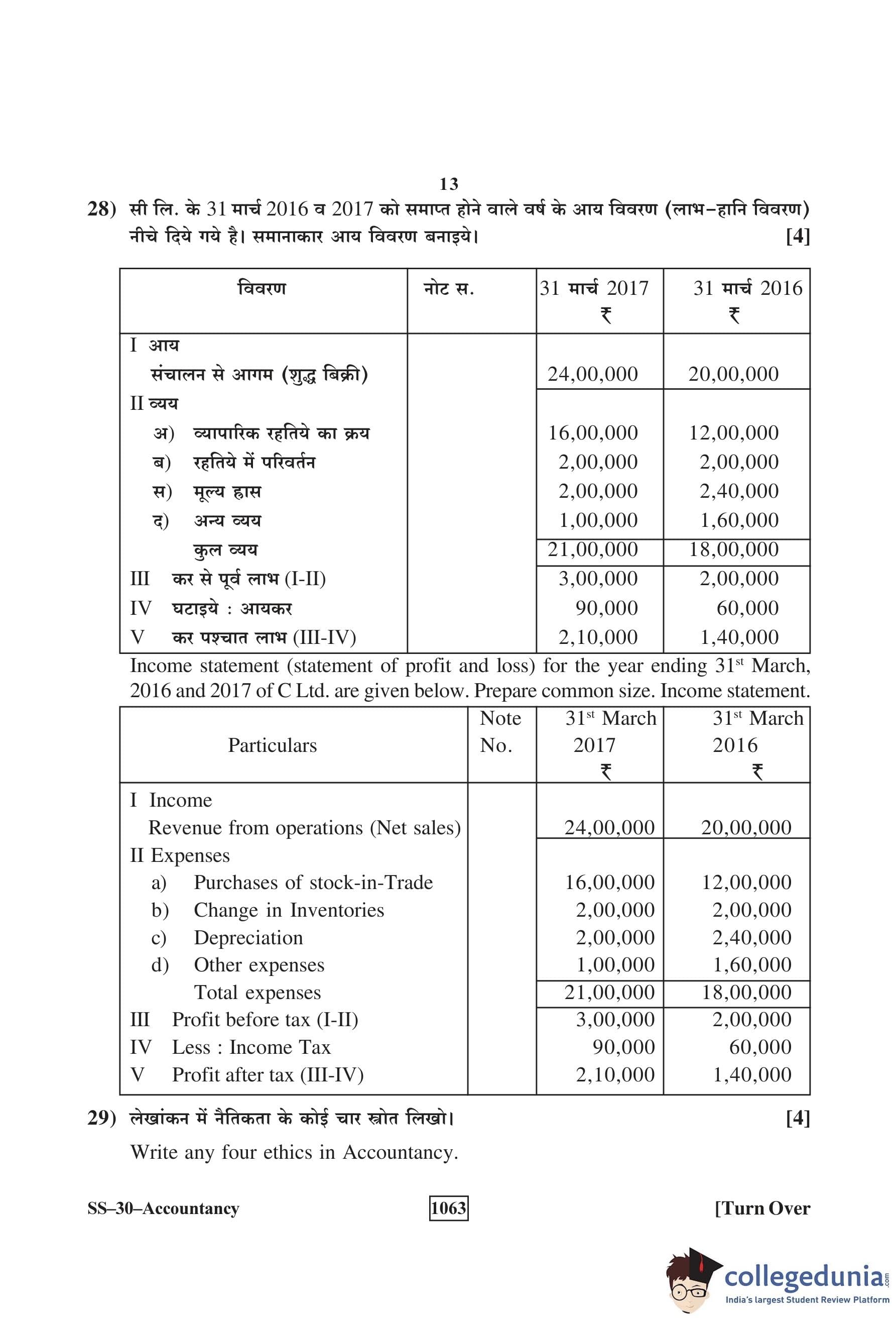 RBSE Class 12 Accountancy Question Paper 2018 with Answer Key