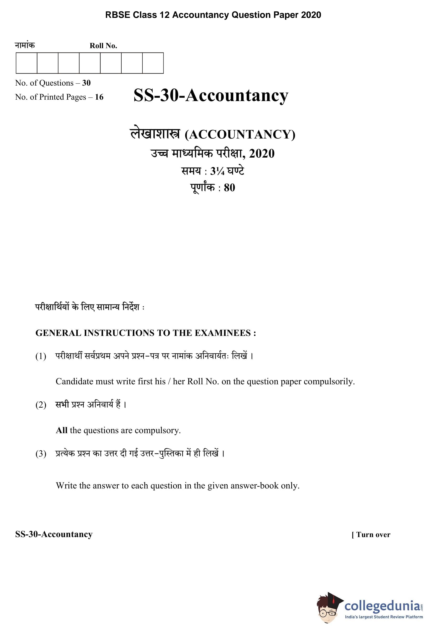 | RBSE Class 12 Accountancy Question Paper 2020 PDF | RBSE Class 12 Accountancy Answer Key 2020 PDF |