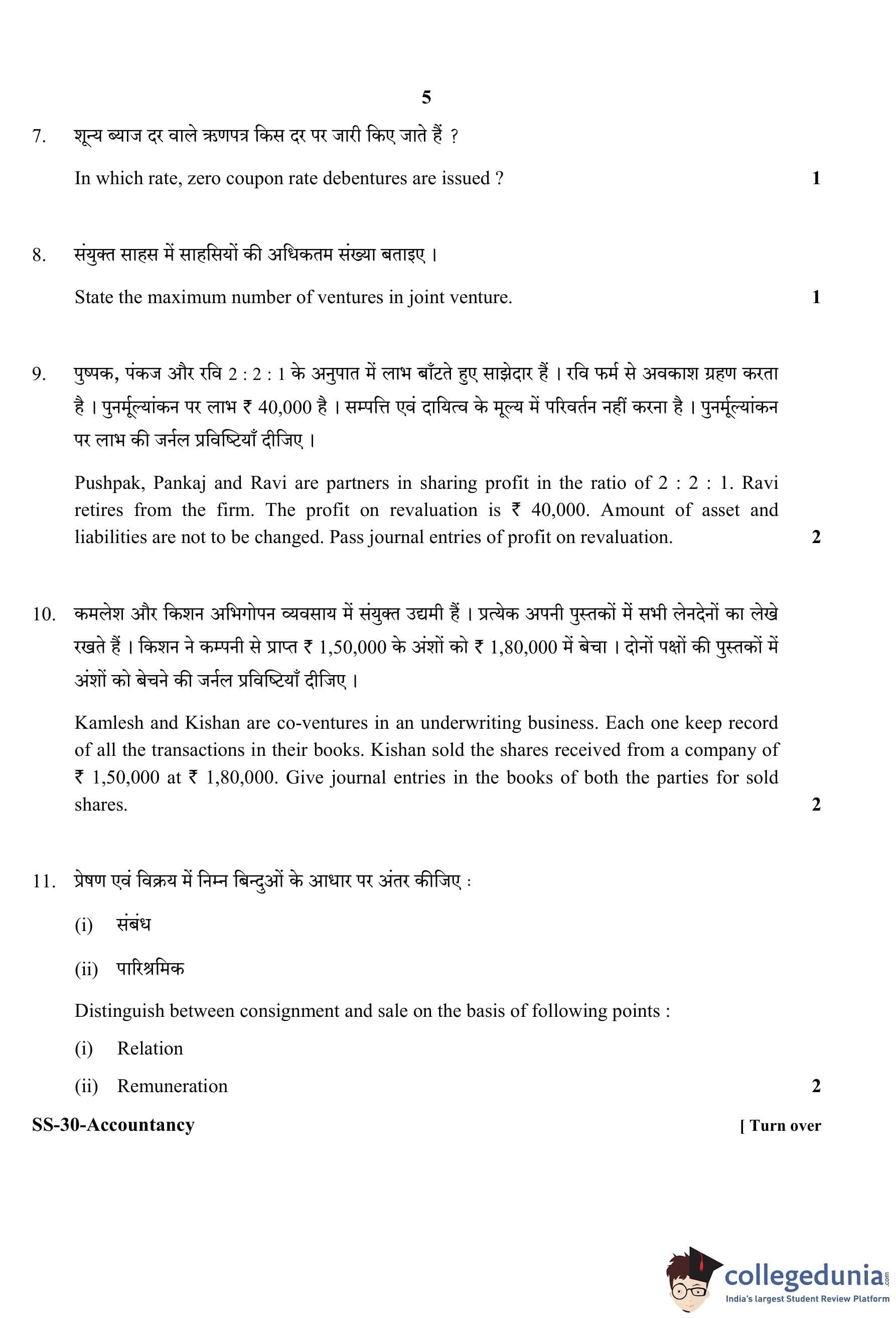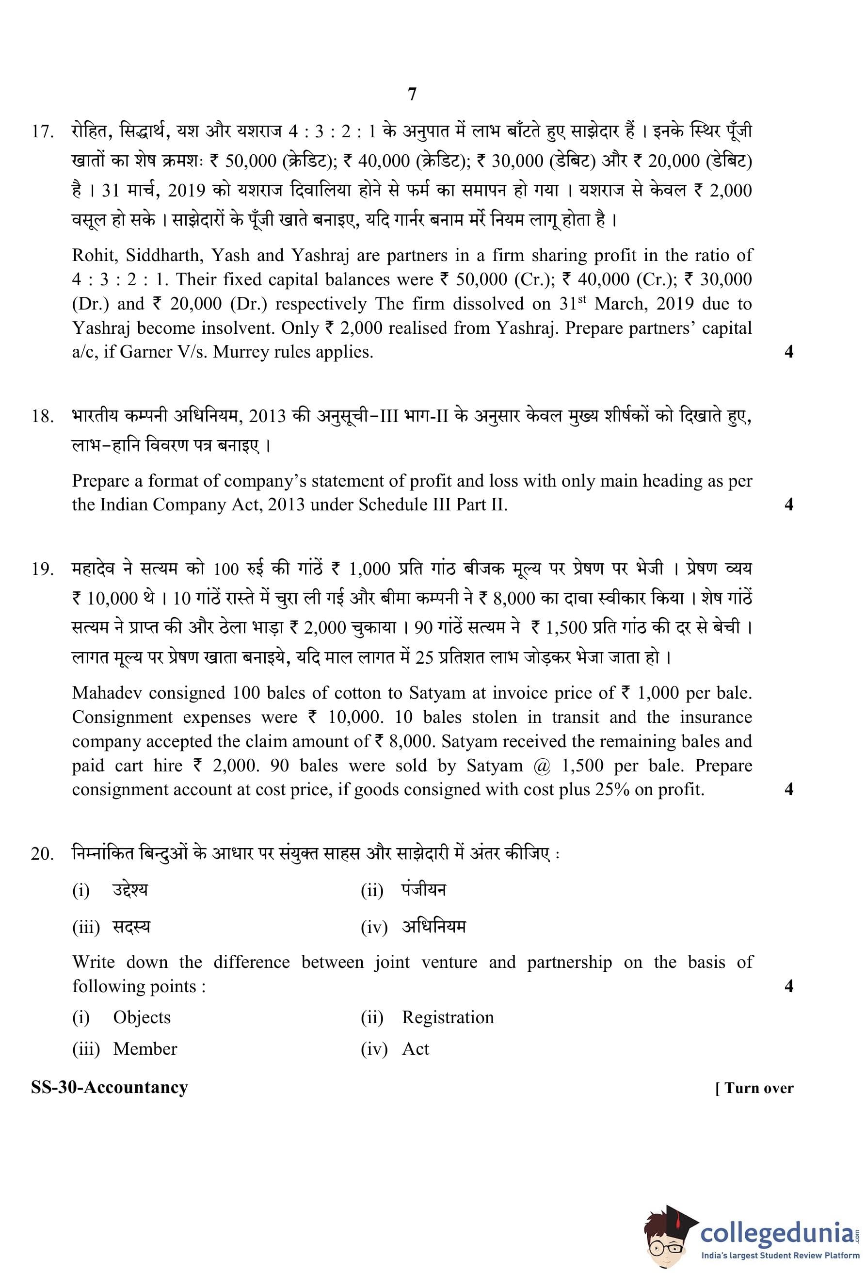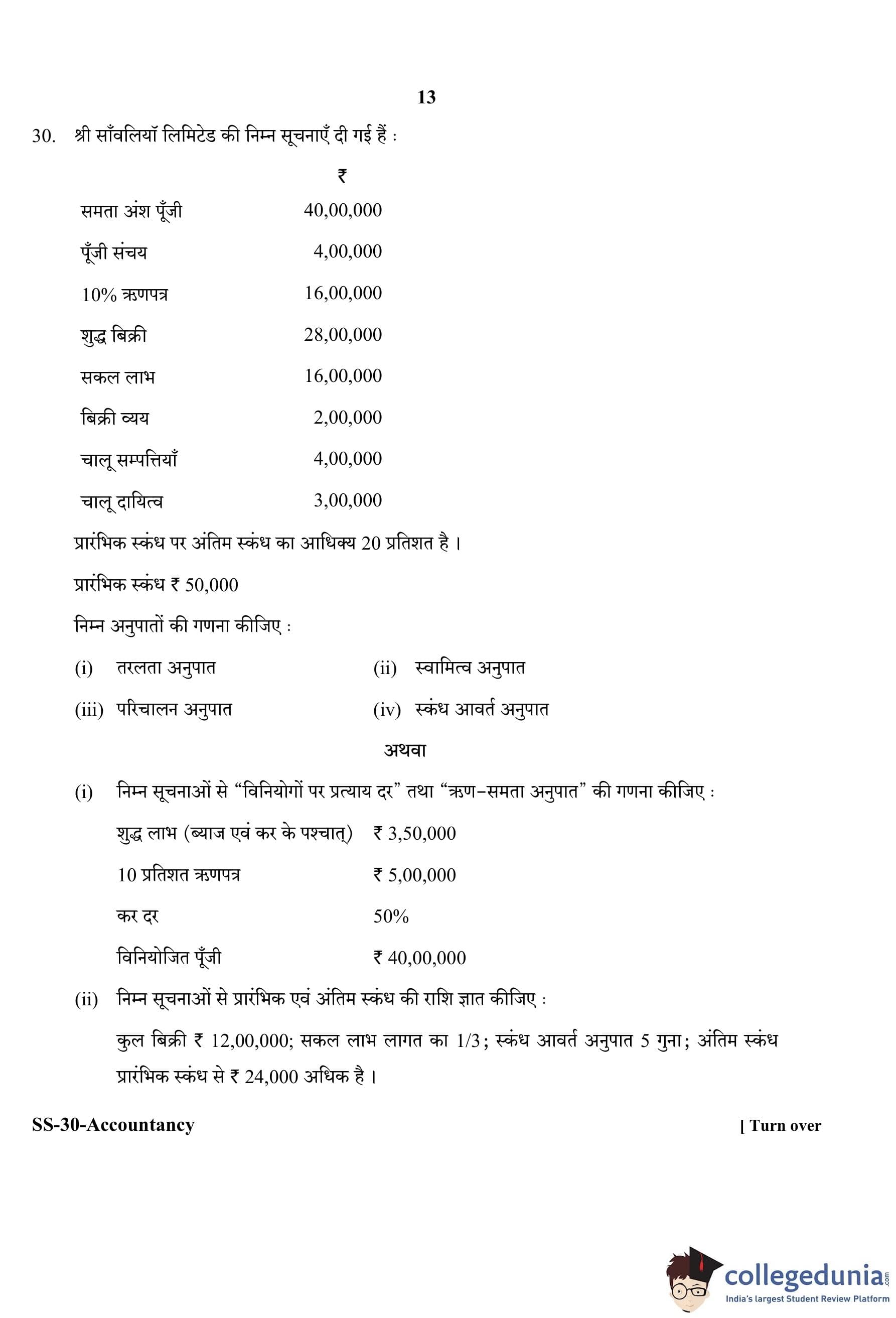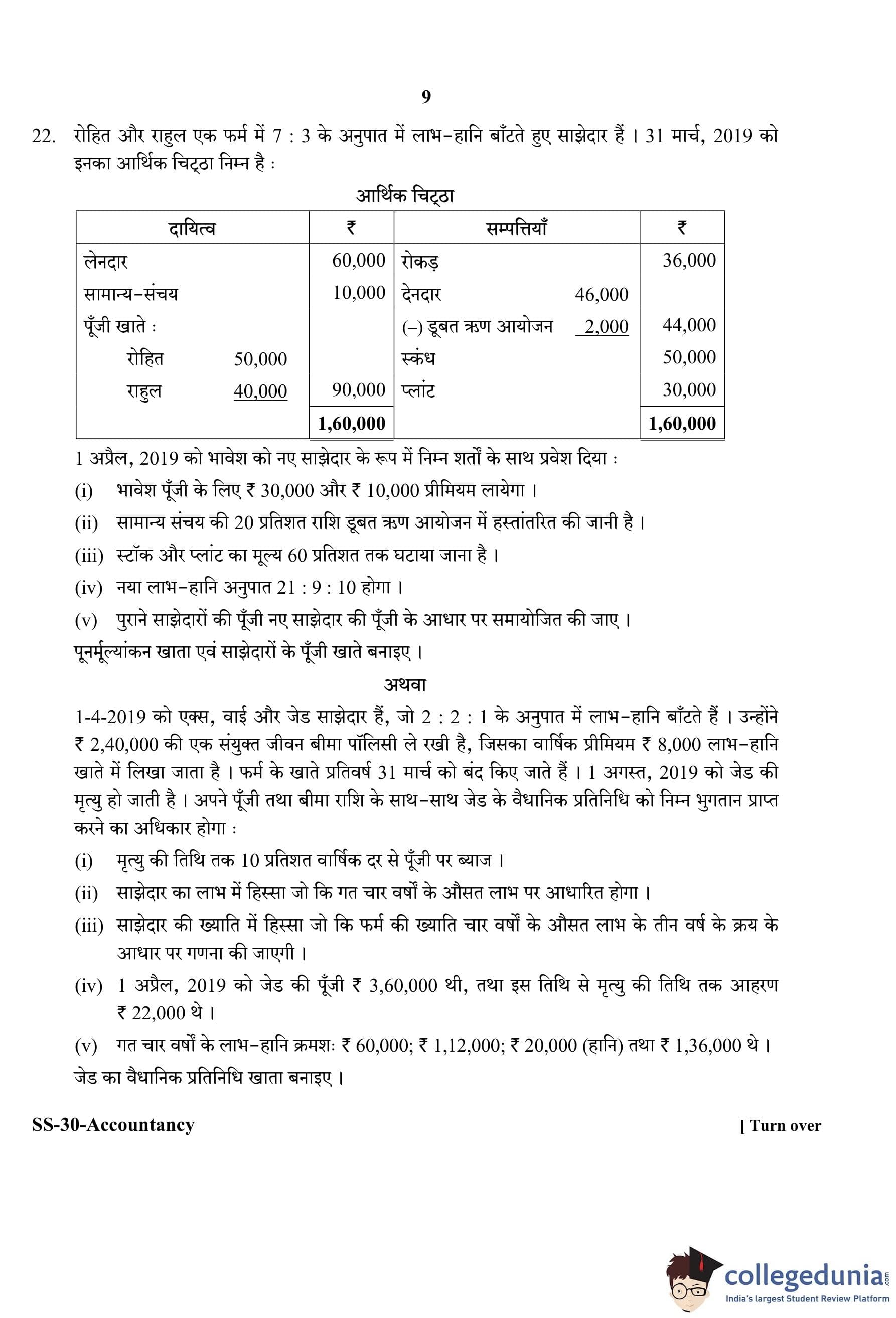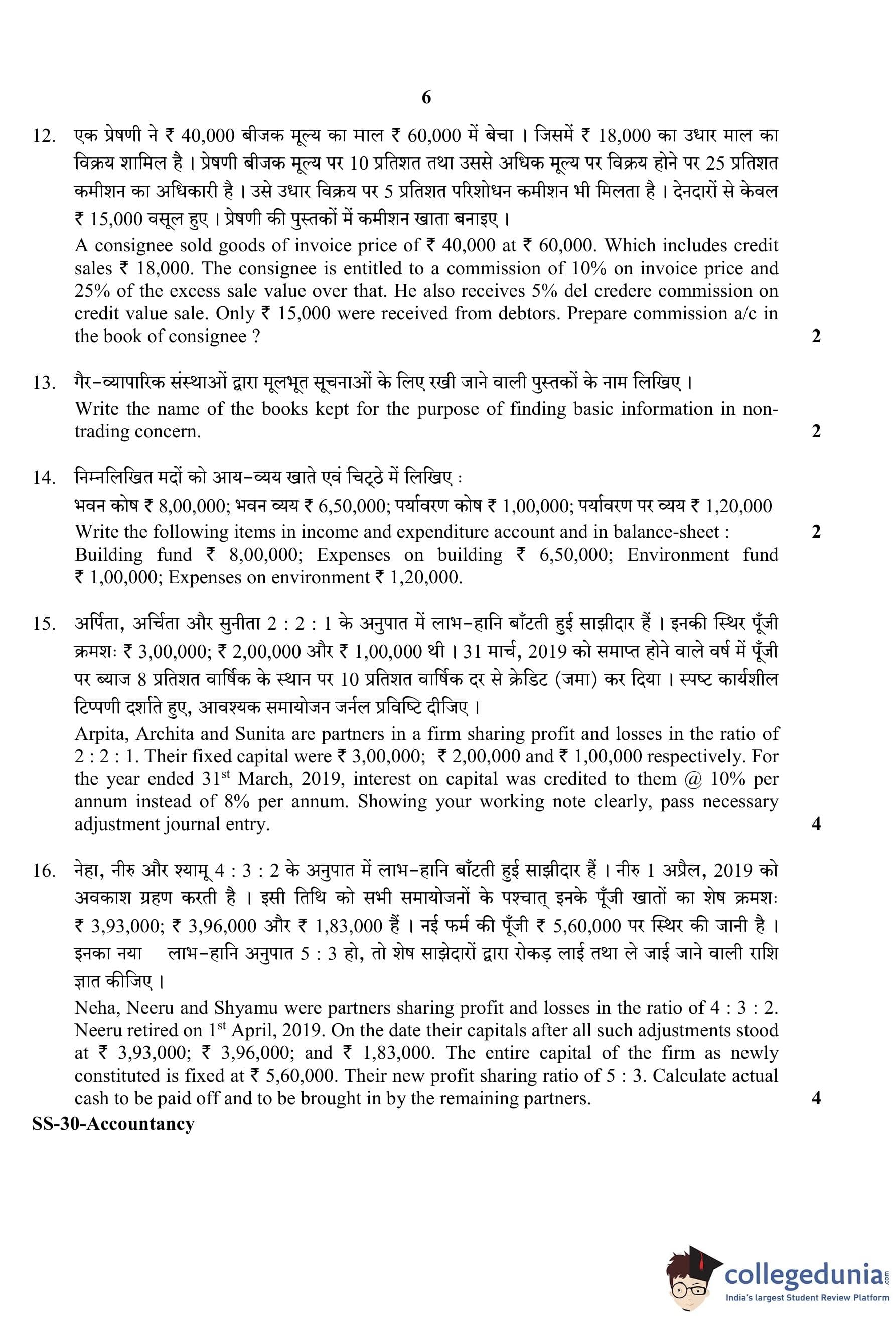 RBSE Class 12 Accountancy Question Paper 2020 with Answer Key