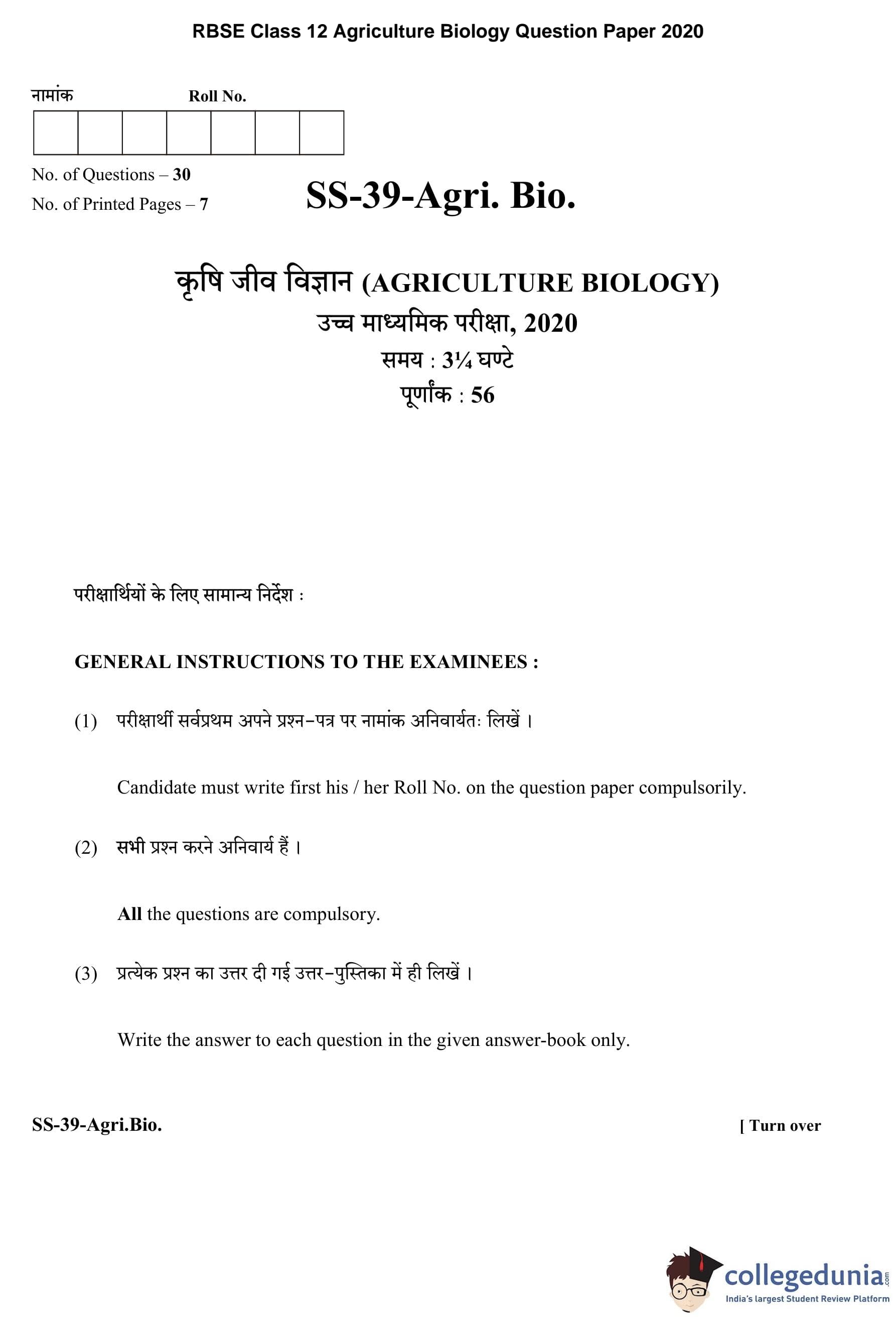 | RBSE Class 12 Agriculture Biology Question Paper 2020 PDF | RBSE Class 12 Agriculture Biology Answer Key 2020 PDF |