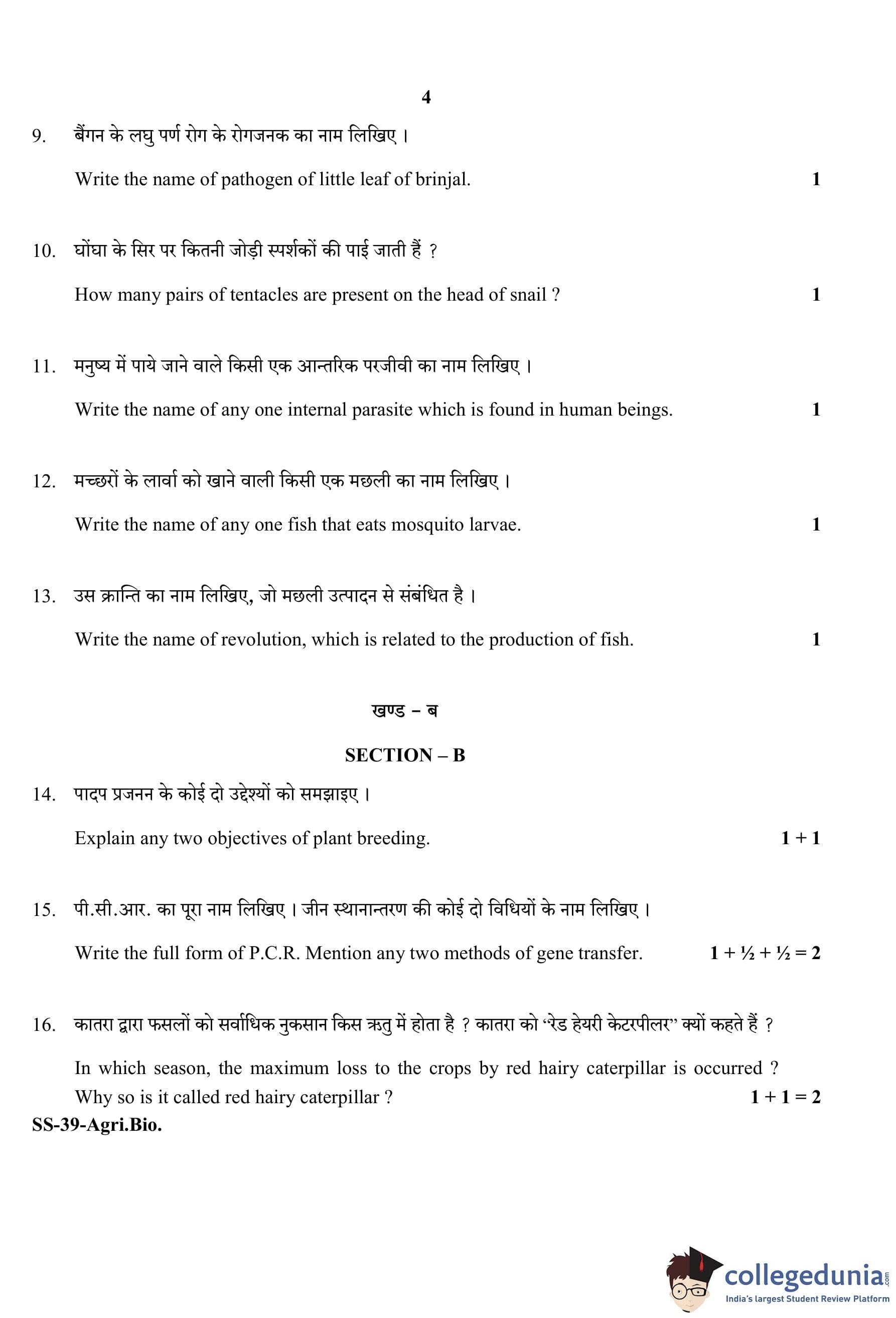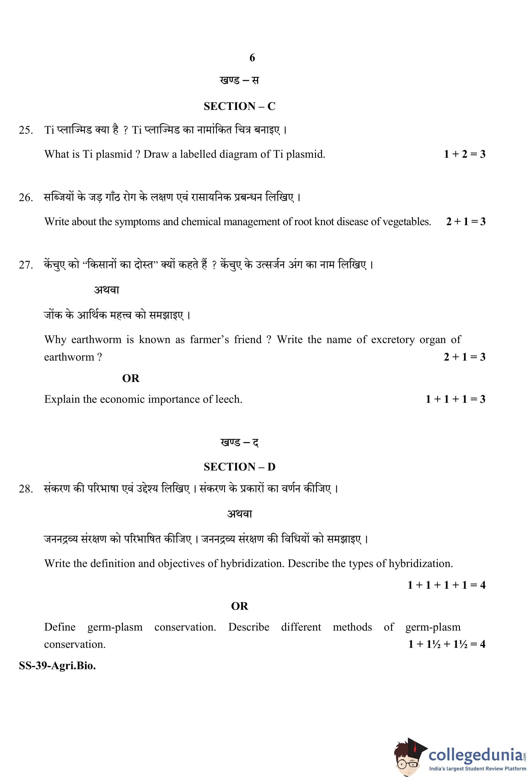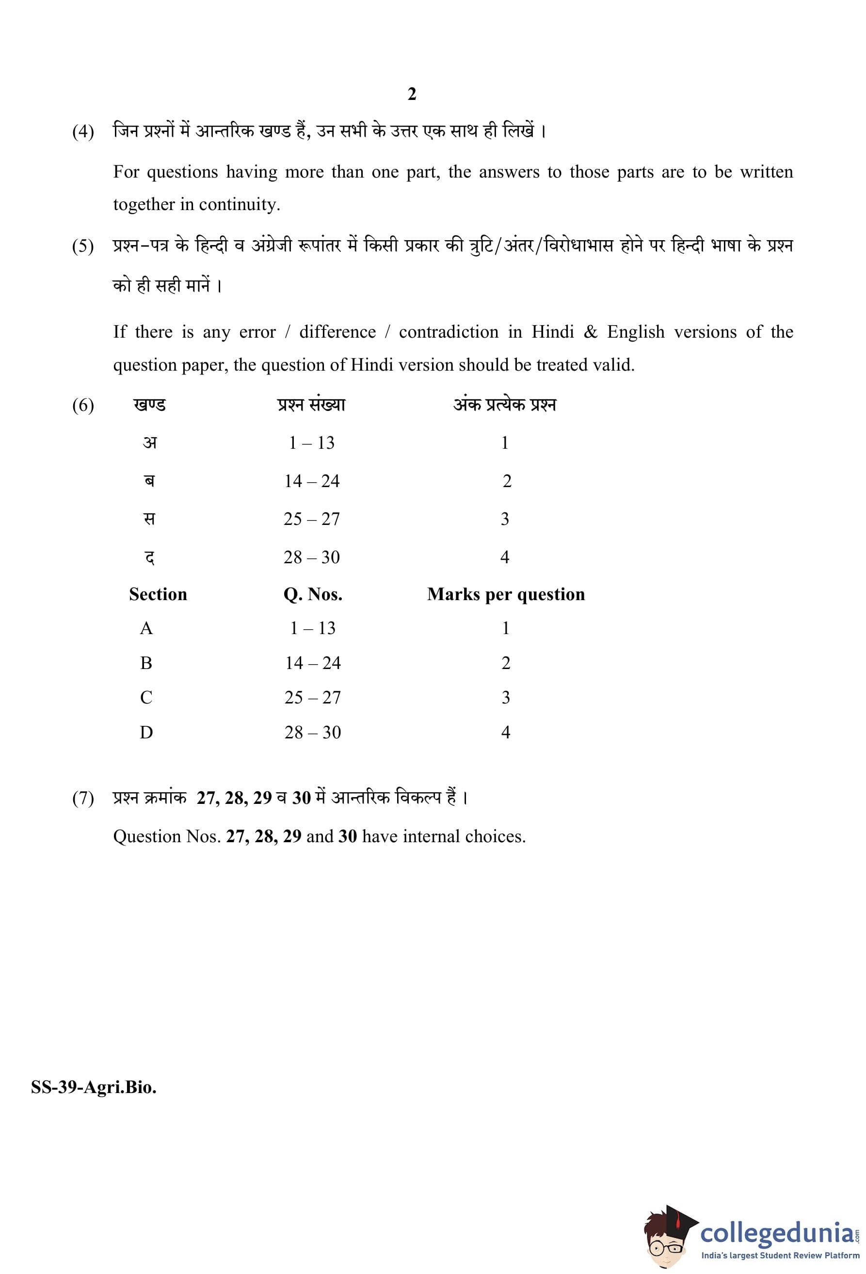 RBSE Class 12 Agriculture Biology Question Paper 2020 with Answer Key pdf is available for download here. The exam was conducted by Board of Secondary Education Rajasthan (BSER) on March 19, 2020 in the Morning Session 8:30 AM to 11:45 AM. The question paper comprised a total of 30 questions divided among 4 sections.