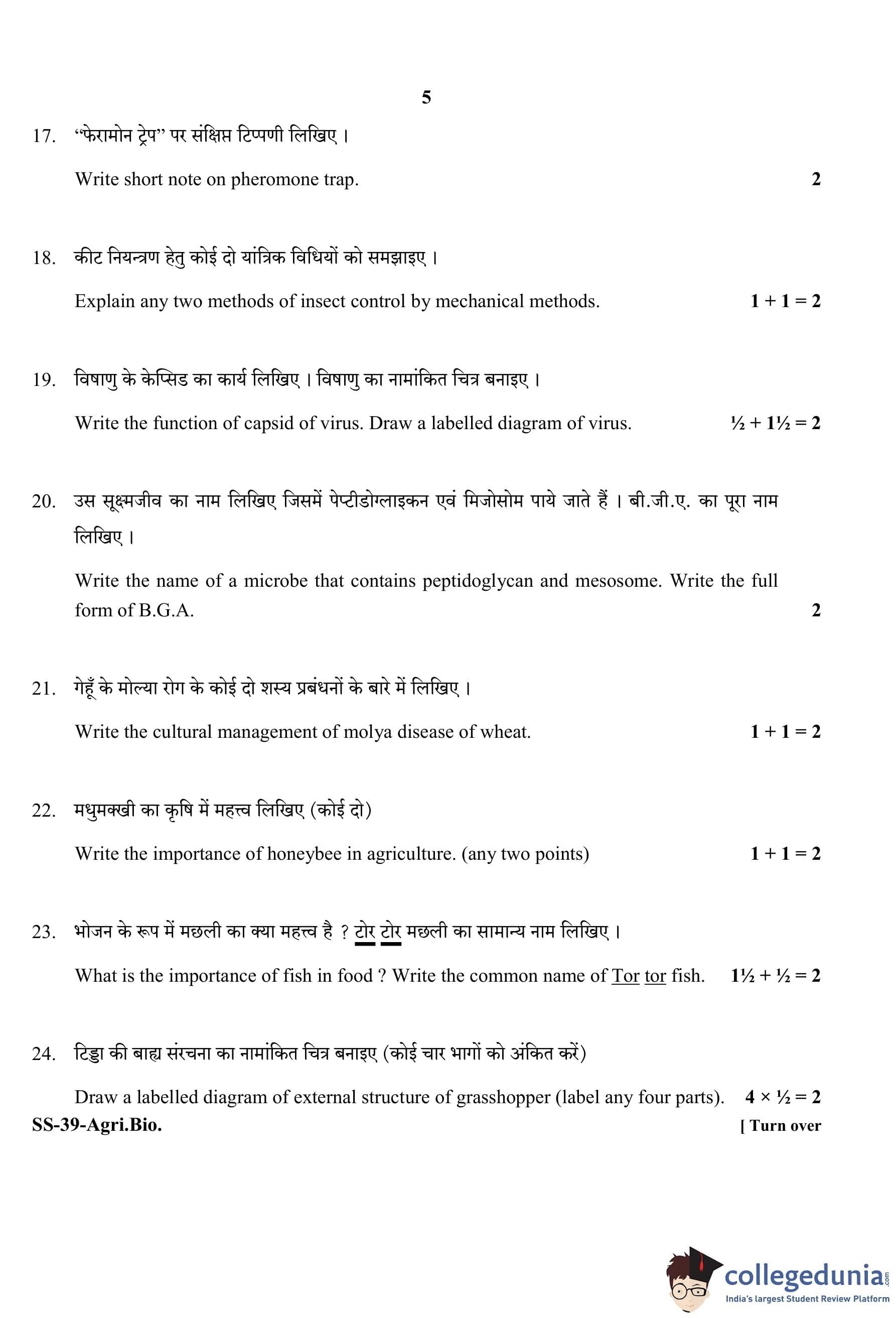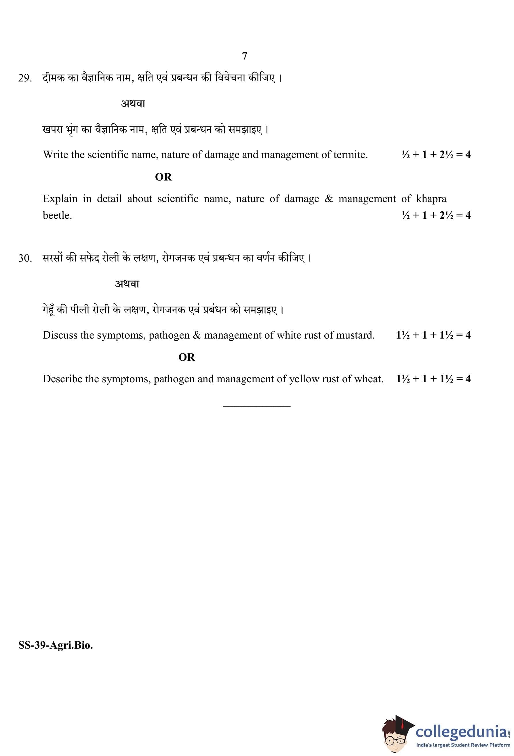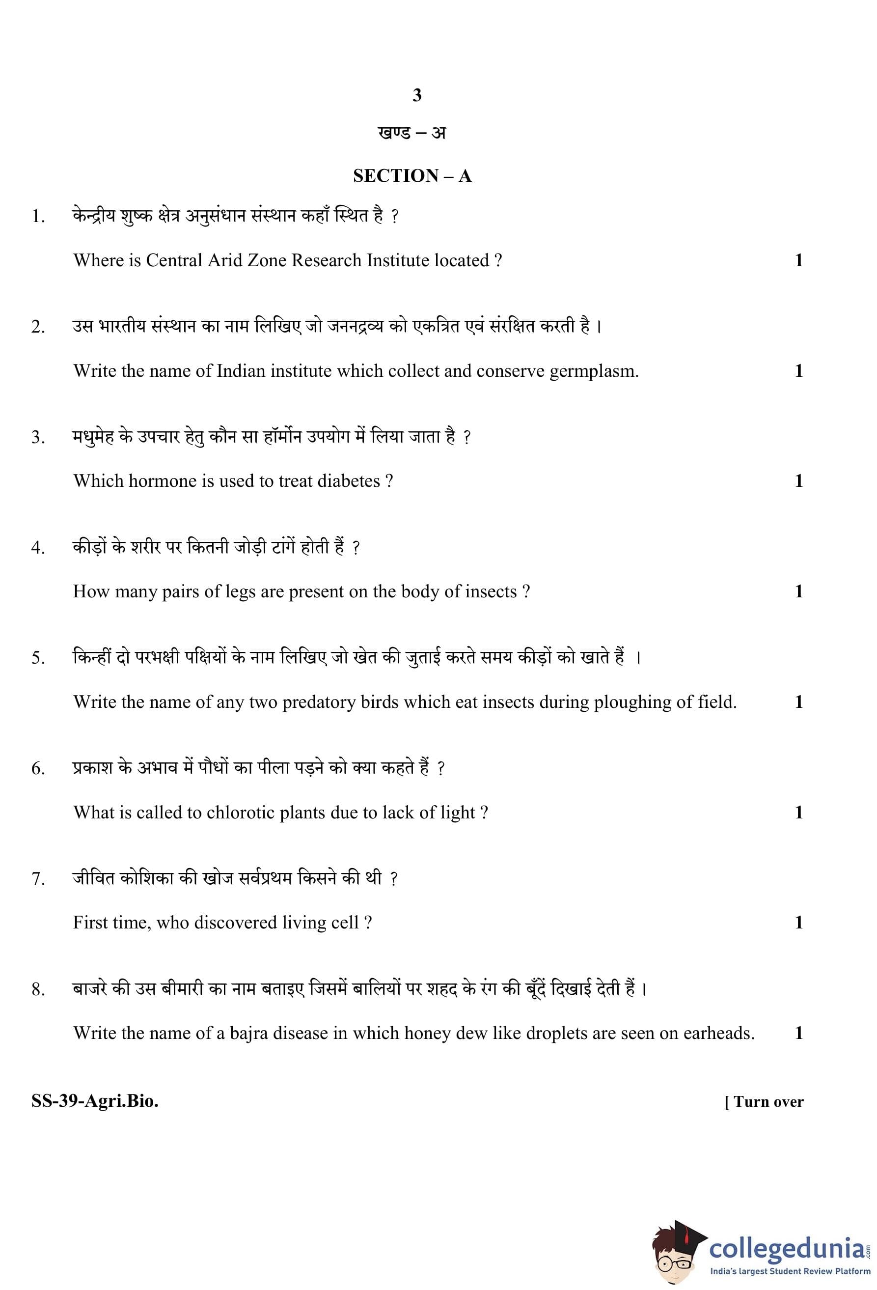 RBSE Class 12 Agriculture Biology Question Paper 2020 with Answer Key
