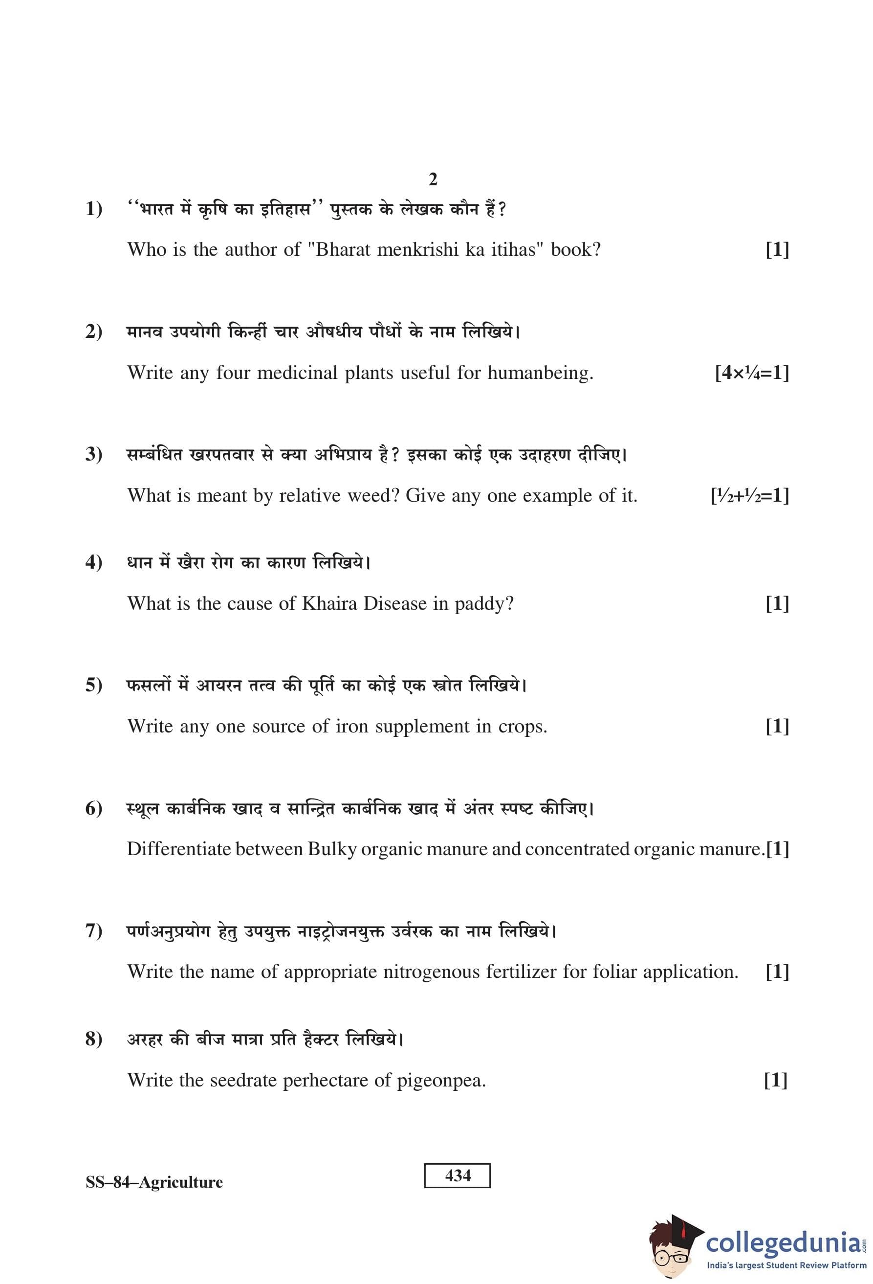 RBSE Class 12 Agriculture Question Paper 2016 with Answer Key