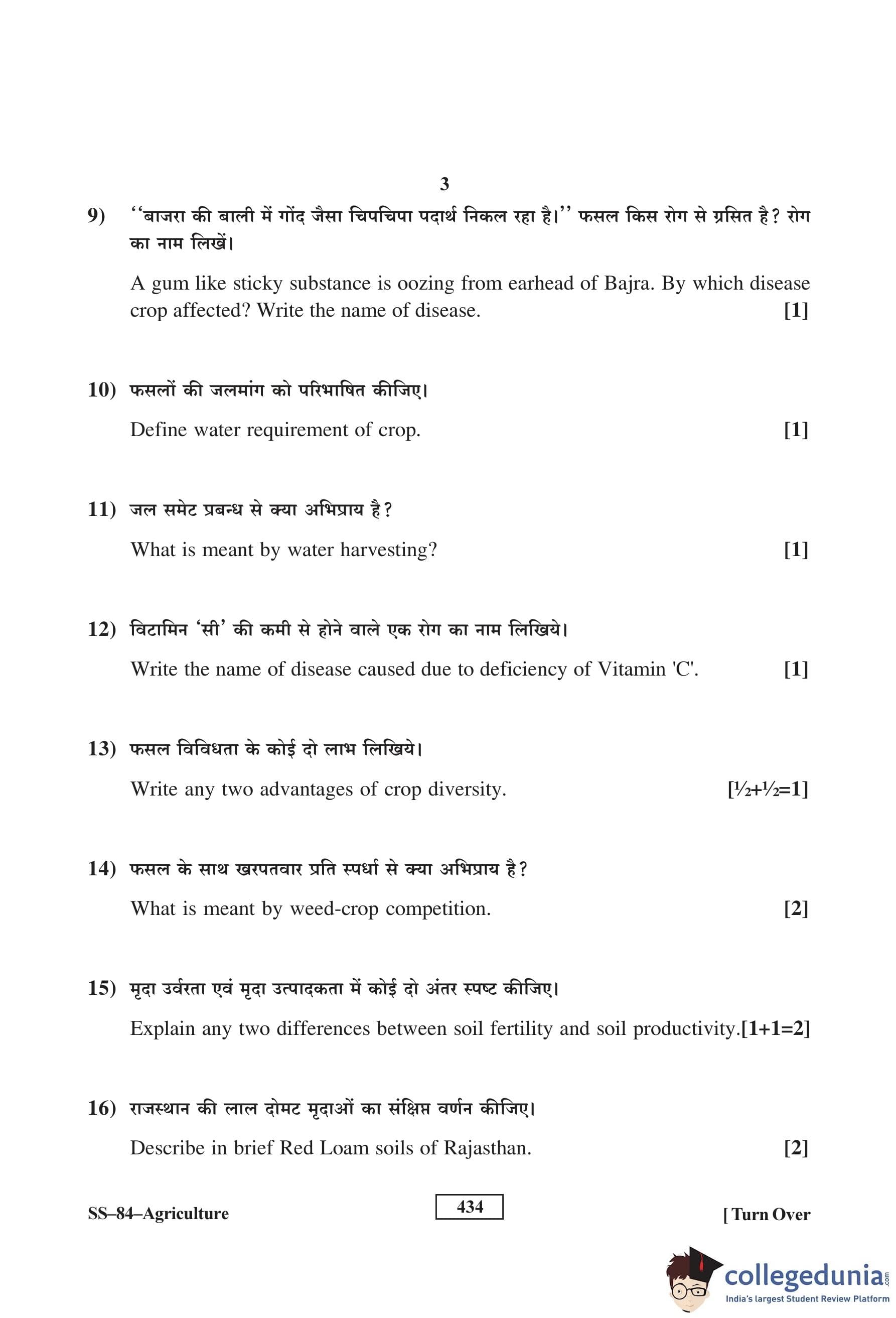 RBSE Class 12 Agriculture Question Paper 2016 with Answer Key pdf is available for download here. The exam was conducted by Board of Secondary Education Rajasthan (BSER) on March 9, 2016 in the Morning Session 8:30 AM to 11:45 AM. The question paper comprised a total of 30 questions.