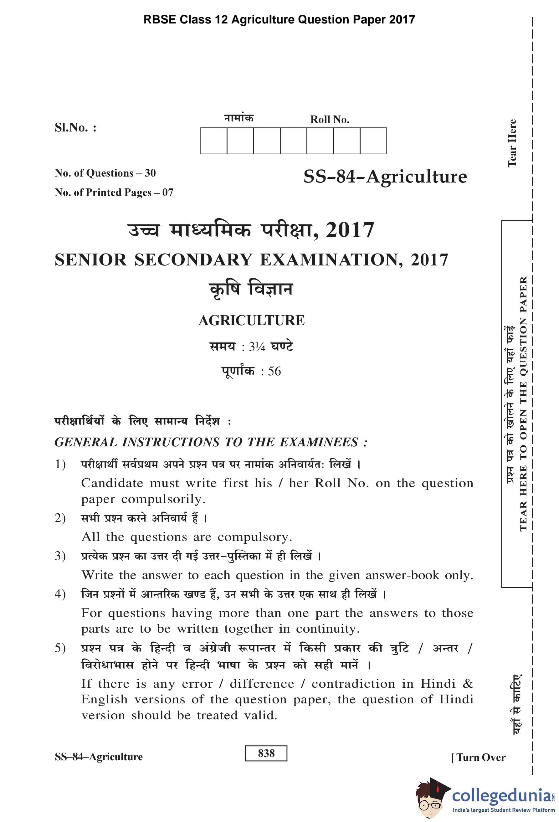 | RBSE Class 12 Agriculture Question Paper 2017 PDF | RBSE Class 12 Agriculture Answer Key 2017 PDF |