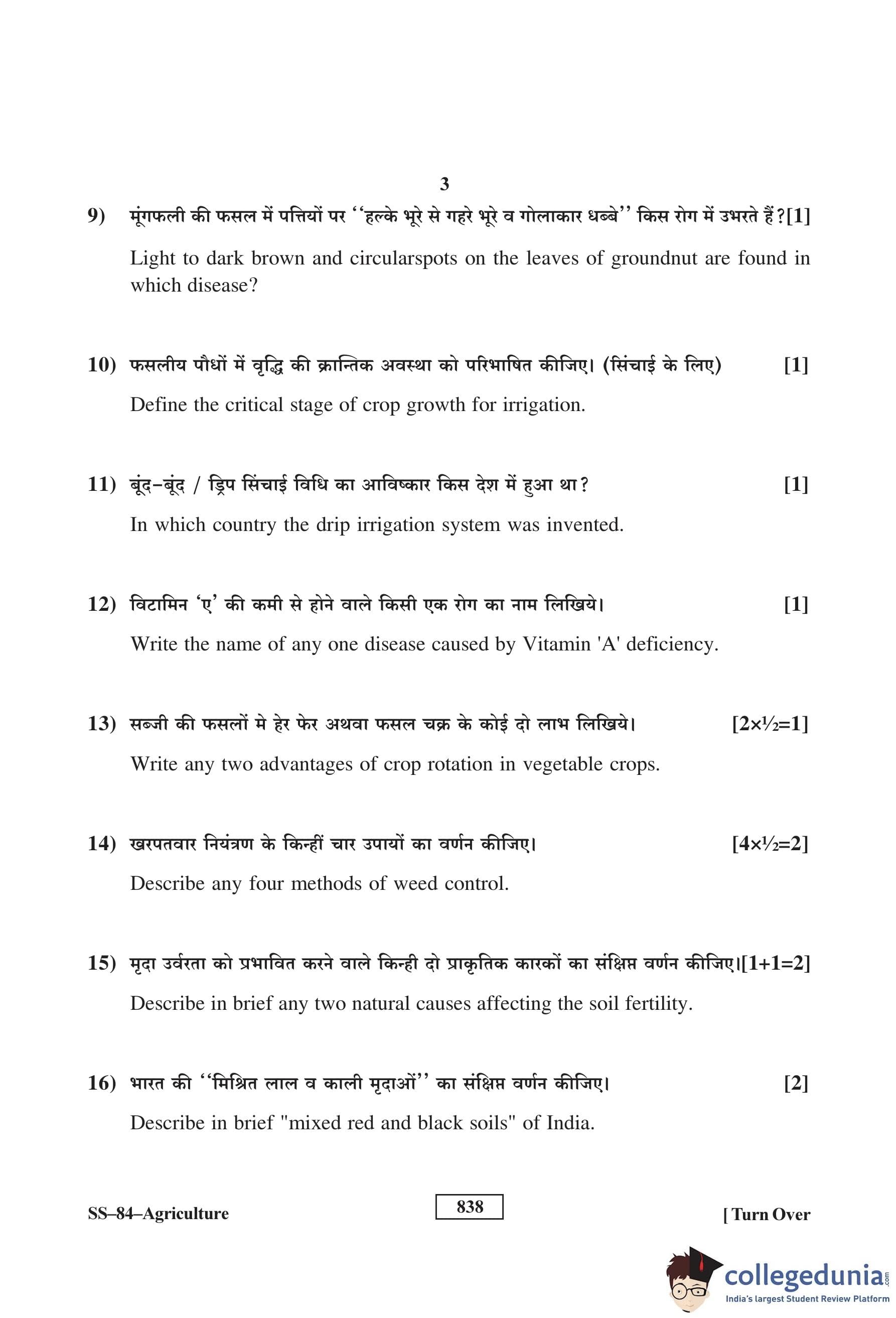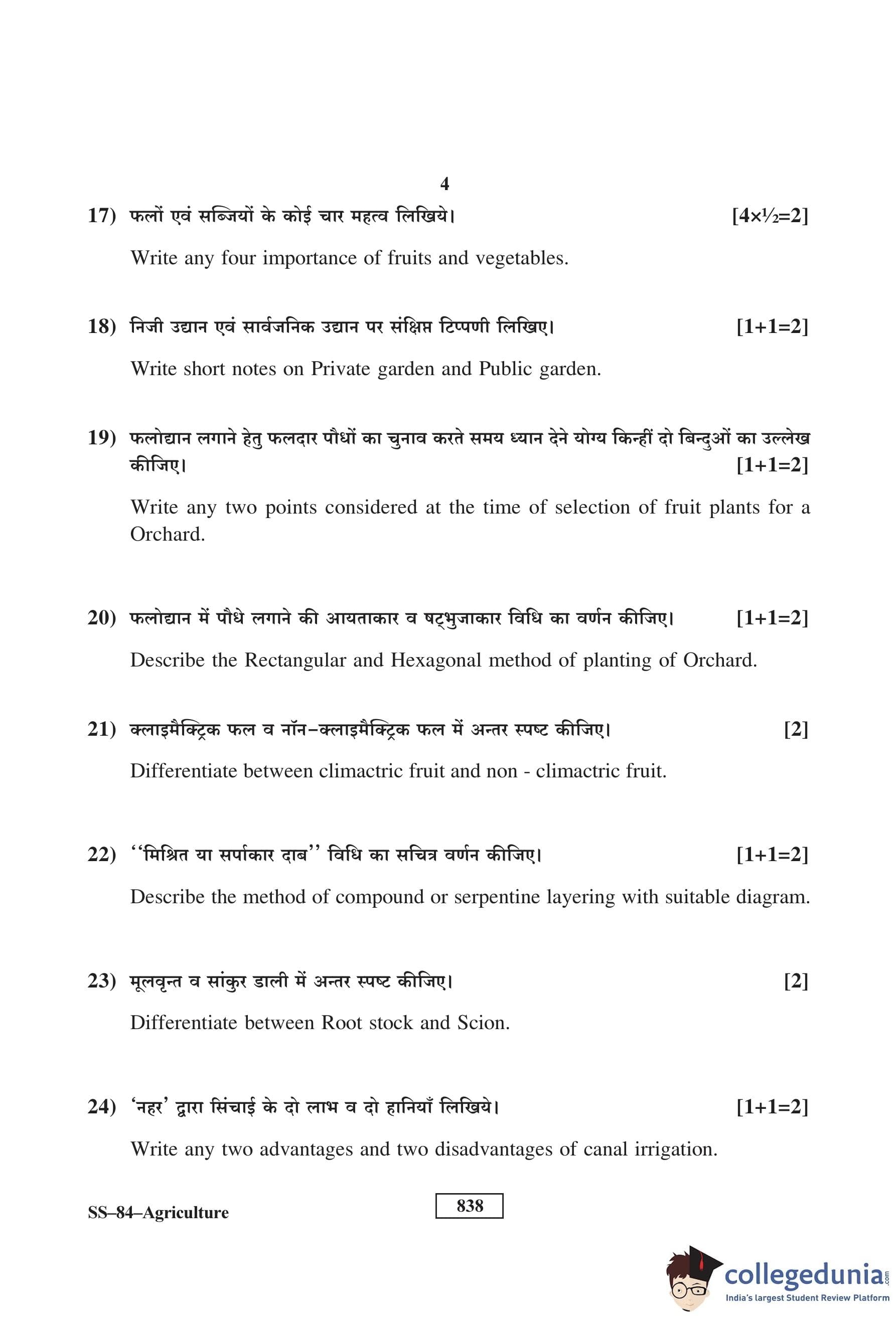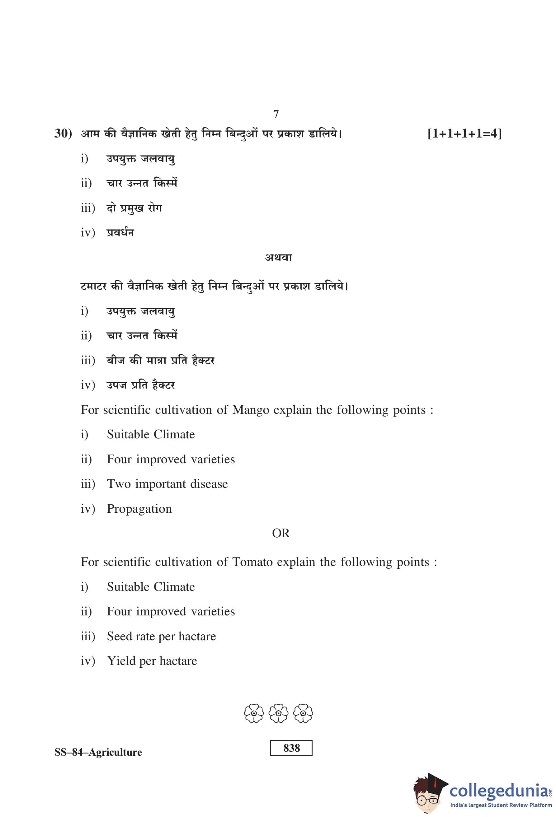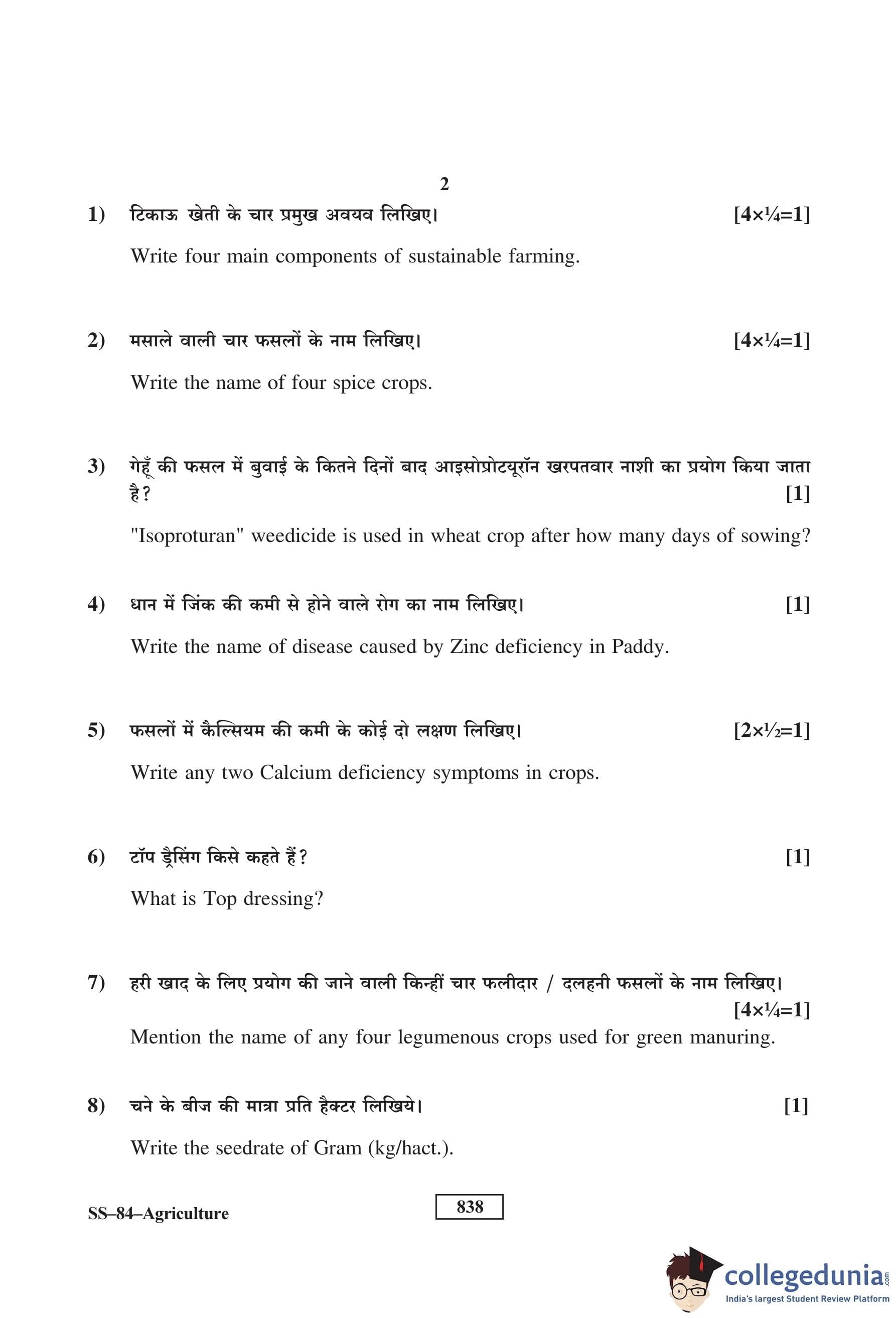 RBSE Class 12 Agriculture Question Paper 2017 with Answer Key pdf is available for download here. The exam was conducted by Board of Secondary Education Rajasthan (BSER) on March 7, 2017 in the Morning Session 8:30 AM to 11:45 AM. The question paper comprised a total of 30 questions.