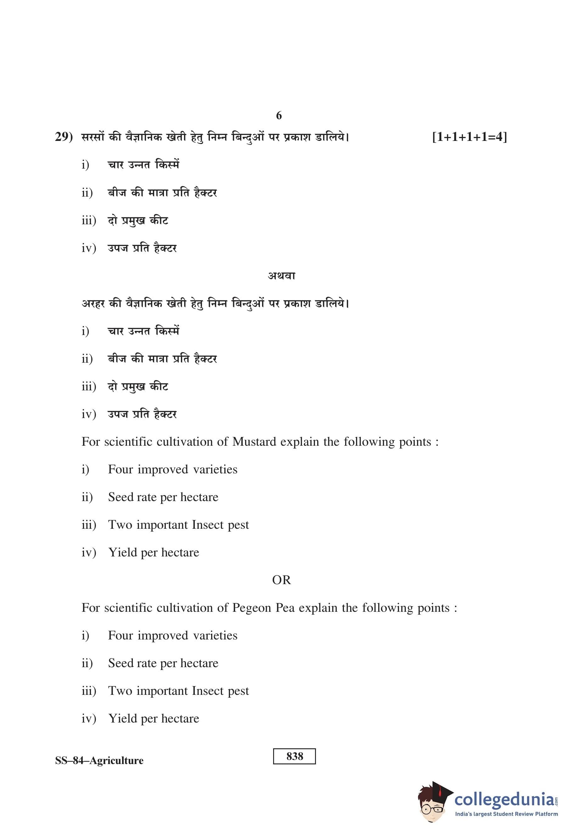 RBSE Class 12 Agriculture Question Paper 2017 with Answer Key
