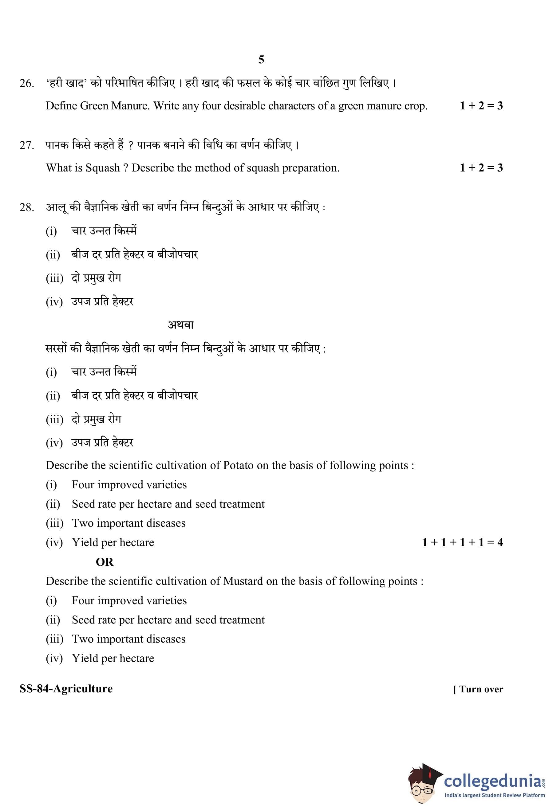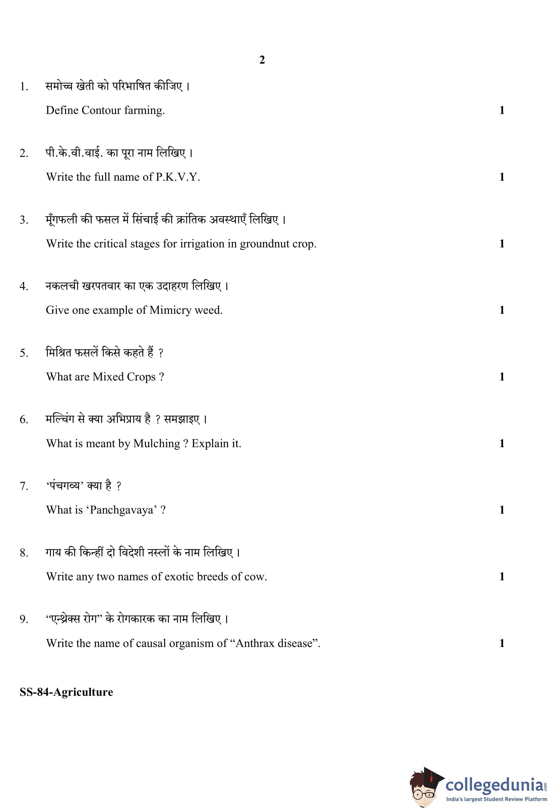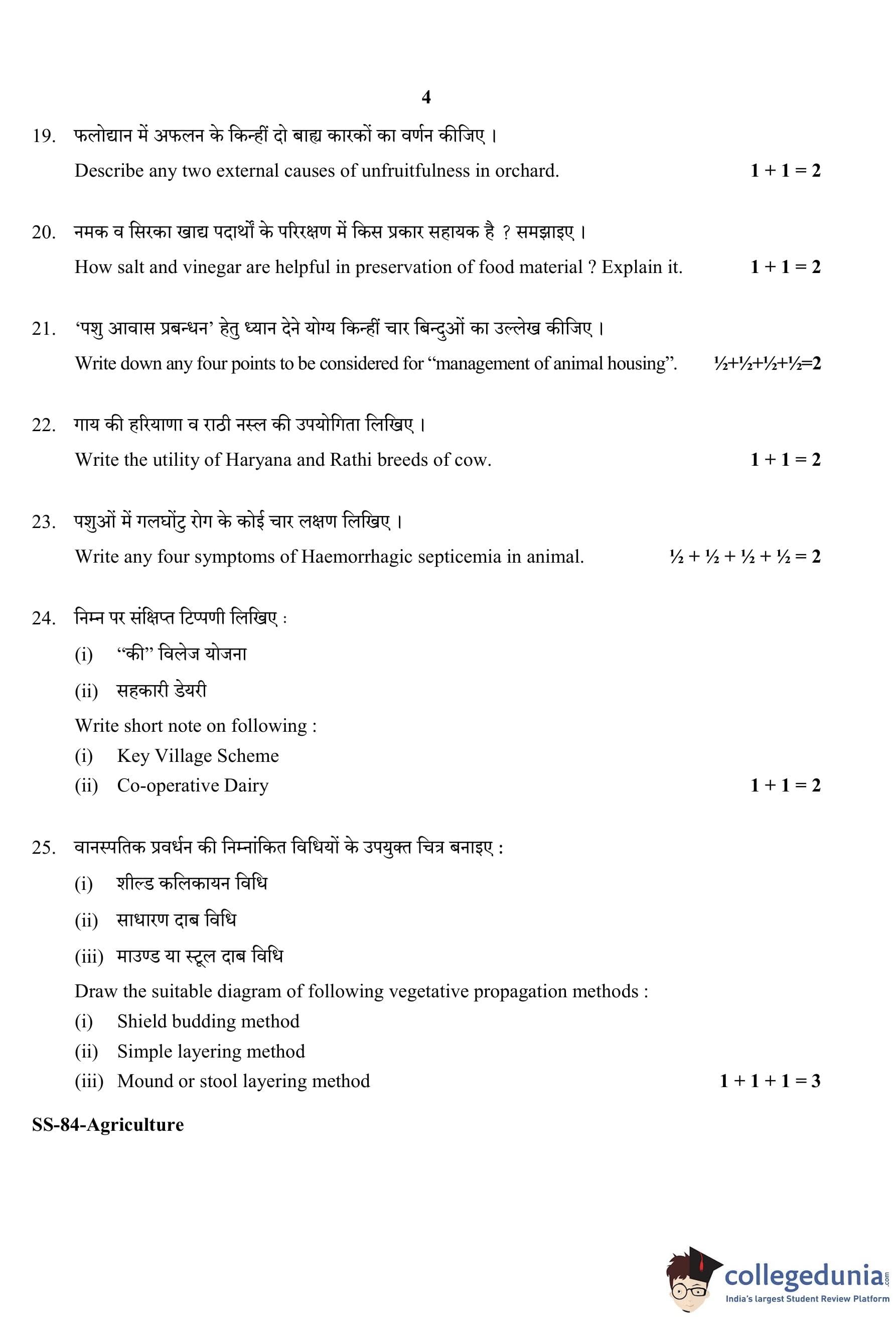RBSE Class 12 Agriculture Question Paper 2020 with Answer Key