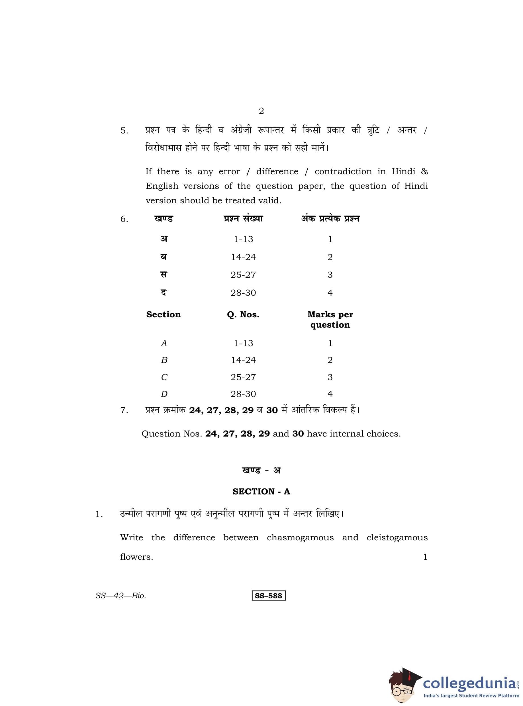 RBSE Class 12 Biology Question Paper 2013 with Answer Key pdf is available for download here. The exam was conducted by Board of Secondary Education Rajasthan (BSER) on March 19, 2013 in the Morning Session 8:30 AM to 11:45 AM. The question paper comprised a total of 30 questions divided among 4 sections.