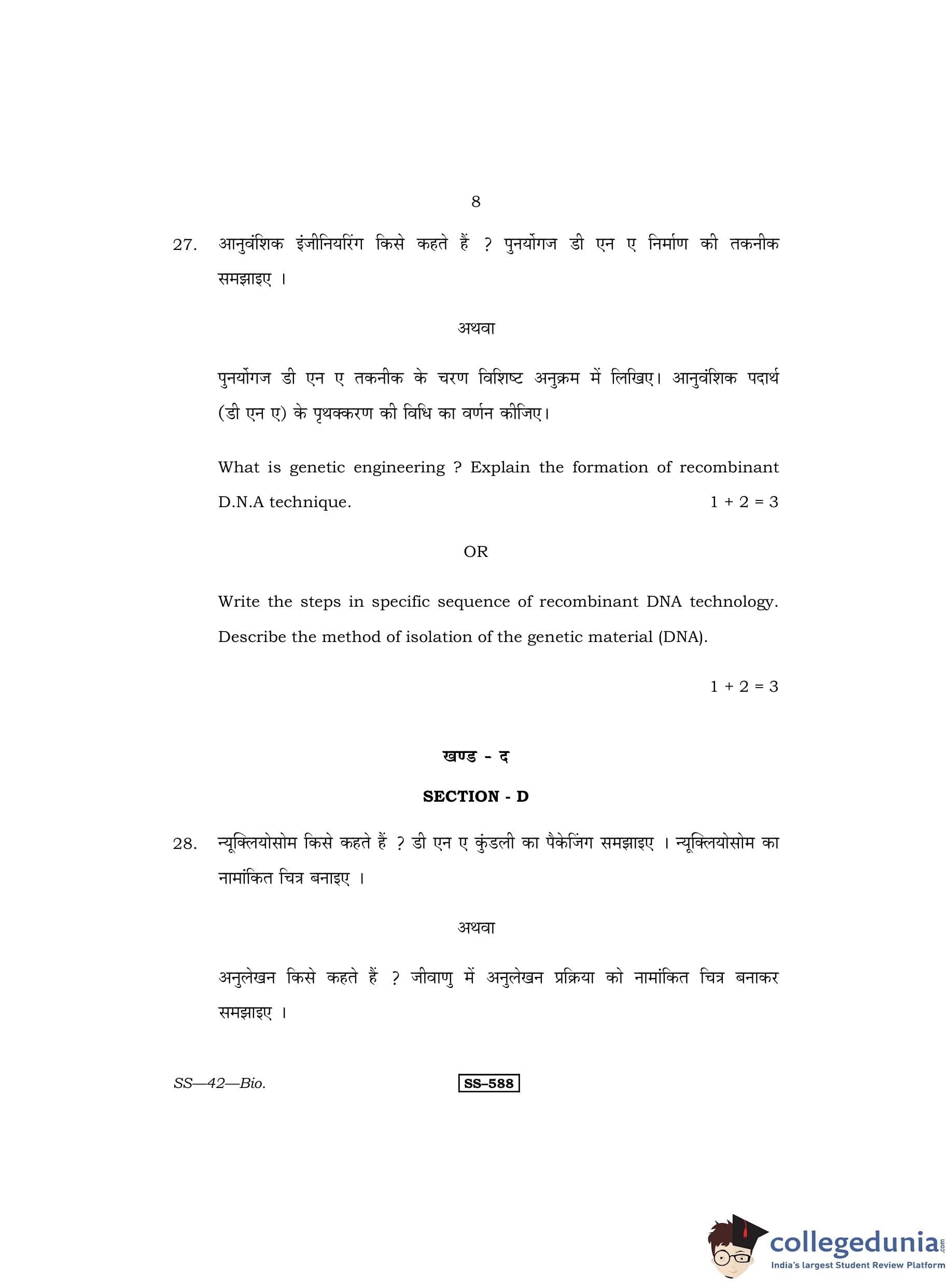 RBSE Class 12 Biology Question Paper 2013 with Answer Key