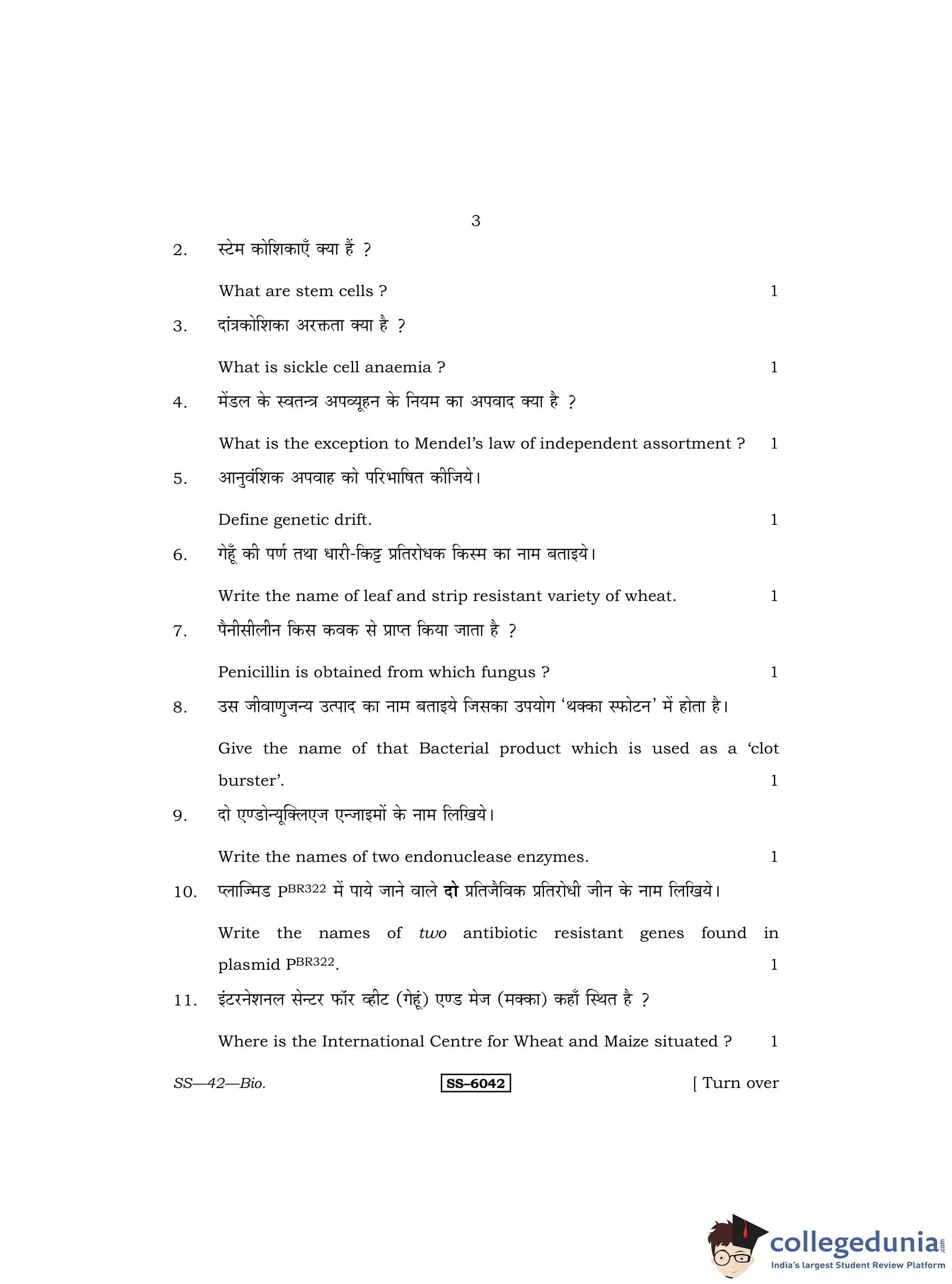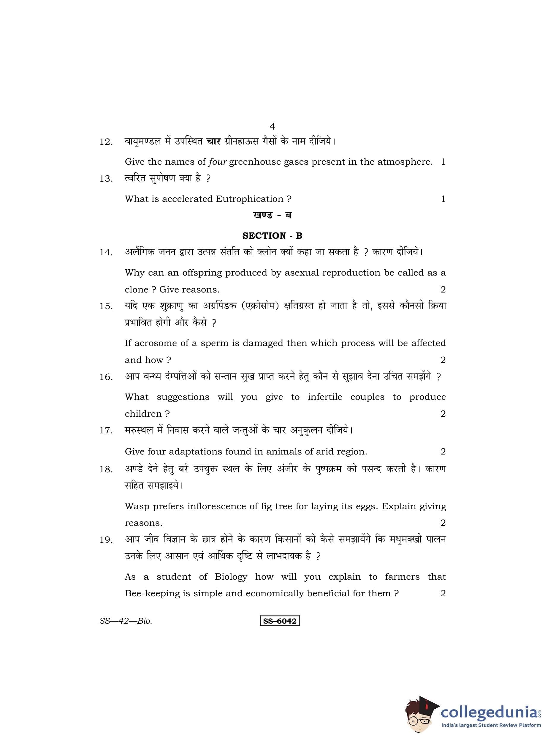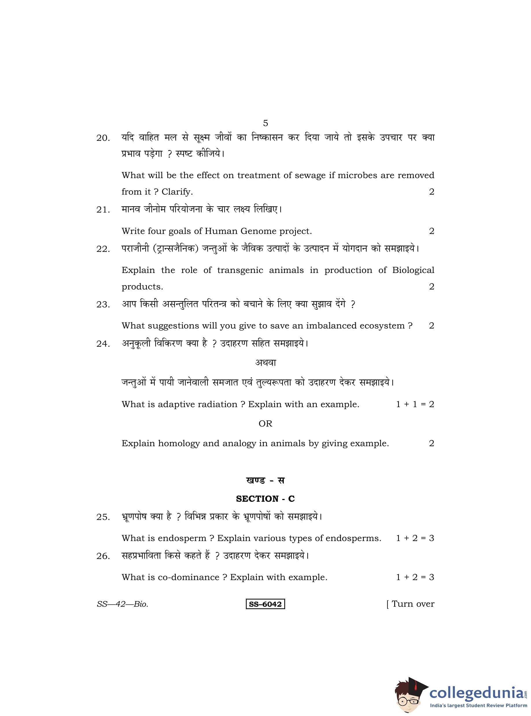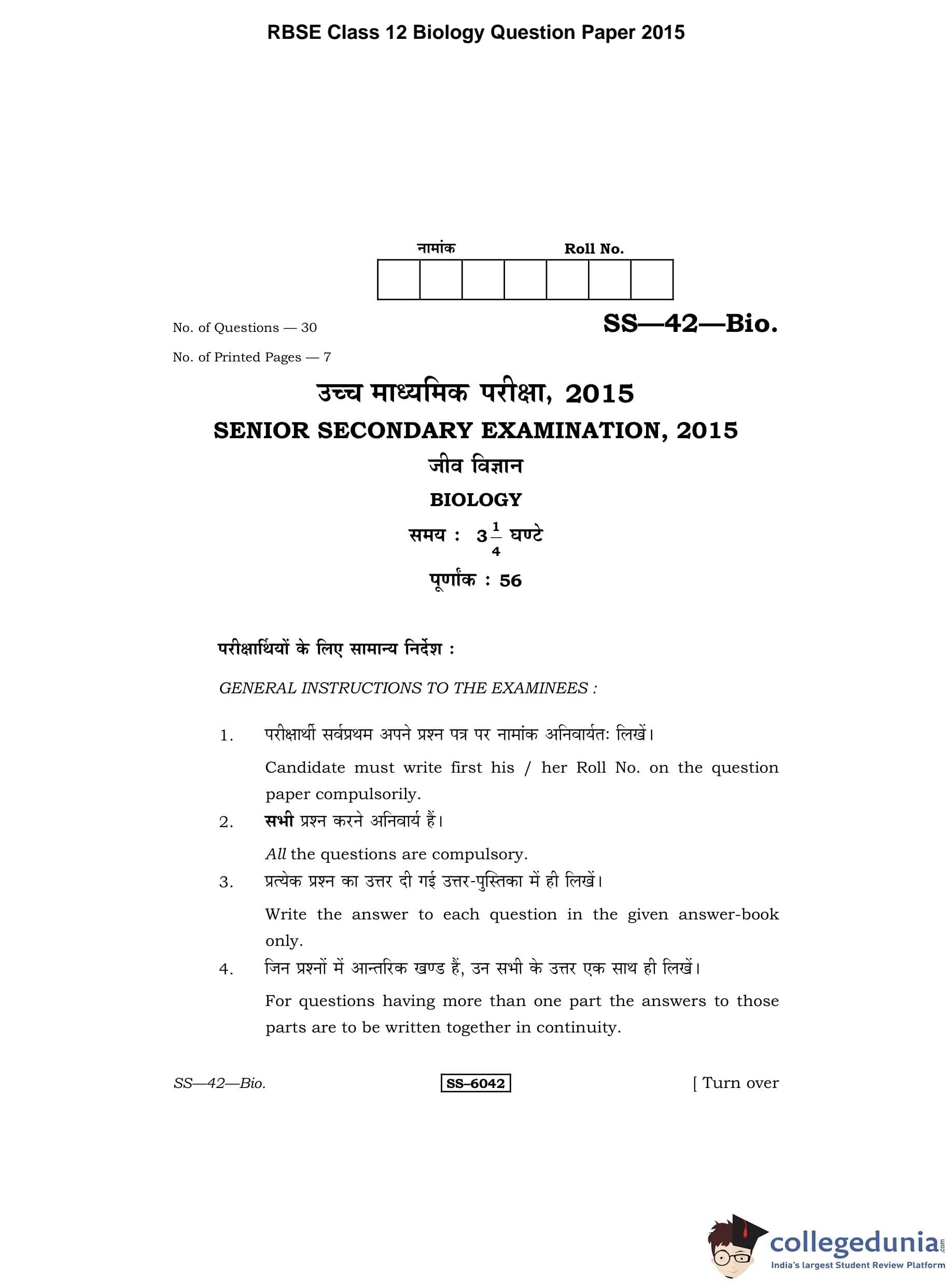 RBSE Class 12 Biology Question Paper 2015 with Answer Key