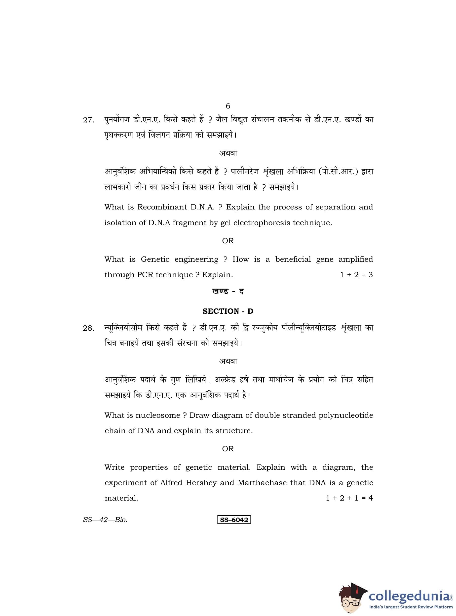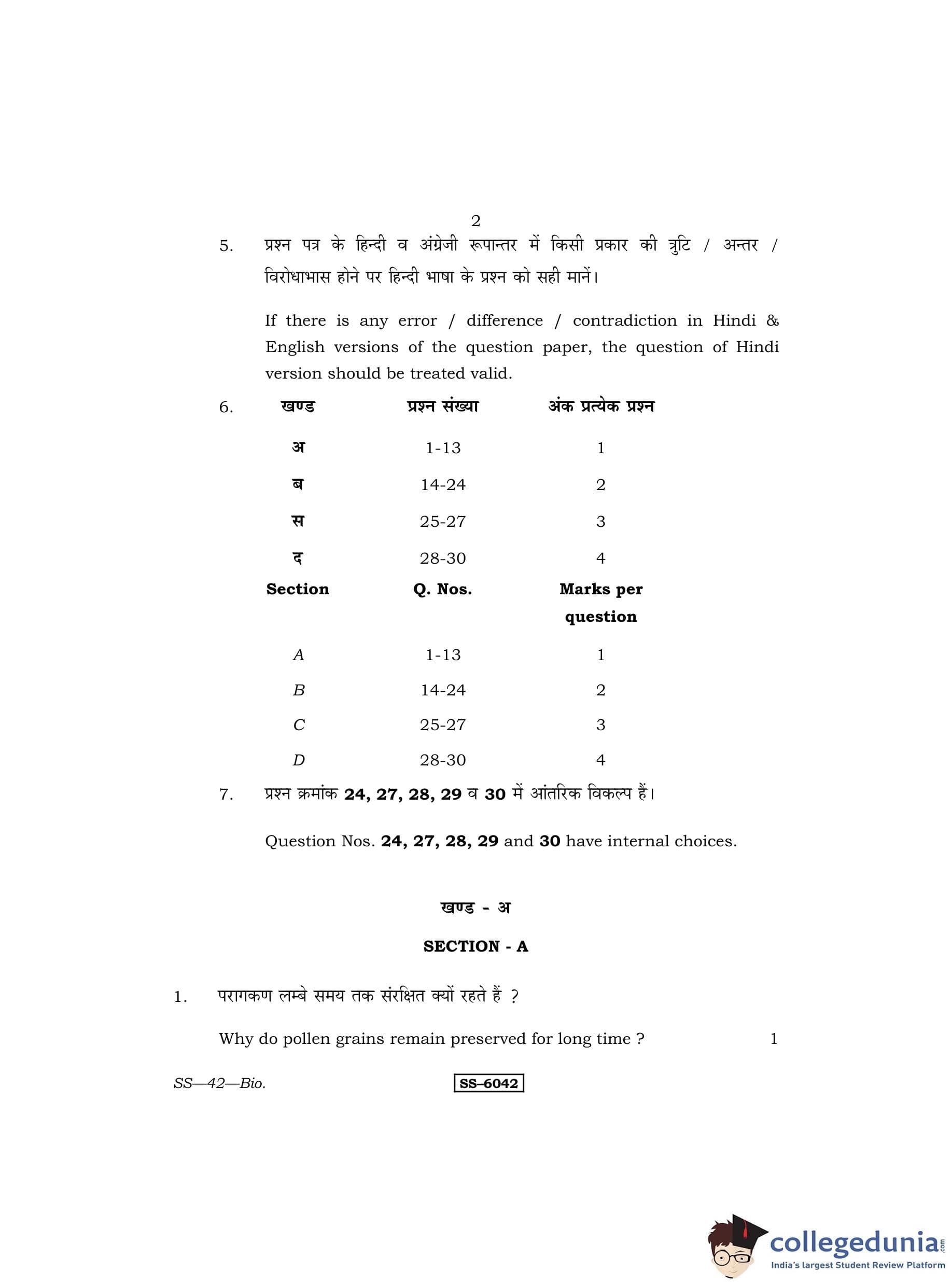 RBSE Class 12 Biology Question Paper 2015 with Answer Key pdf is available for download here. The exam was conducted by Board of Secondary Education Rajasthan (BSER) on March 26, 2015 in the Morning Session 8:30 AM to 11:45 AM. The question paper comprised a total of 30 questions divided among 4 sections.