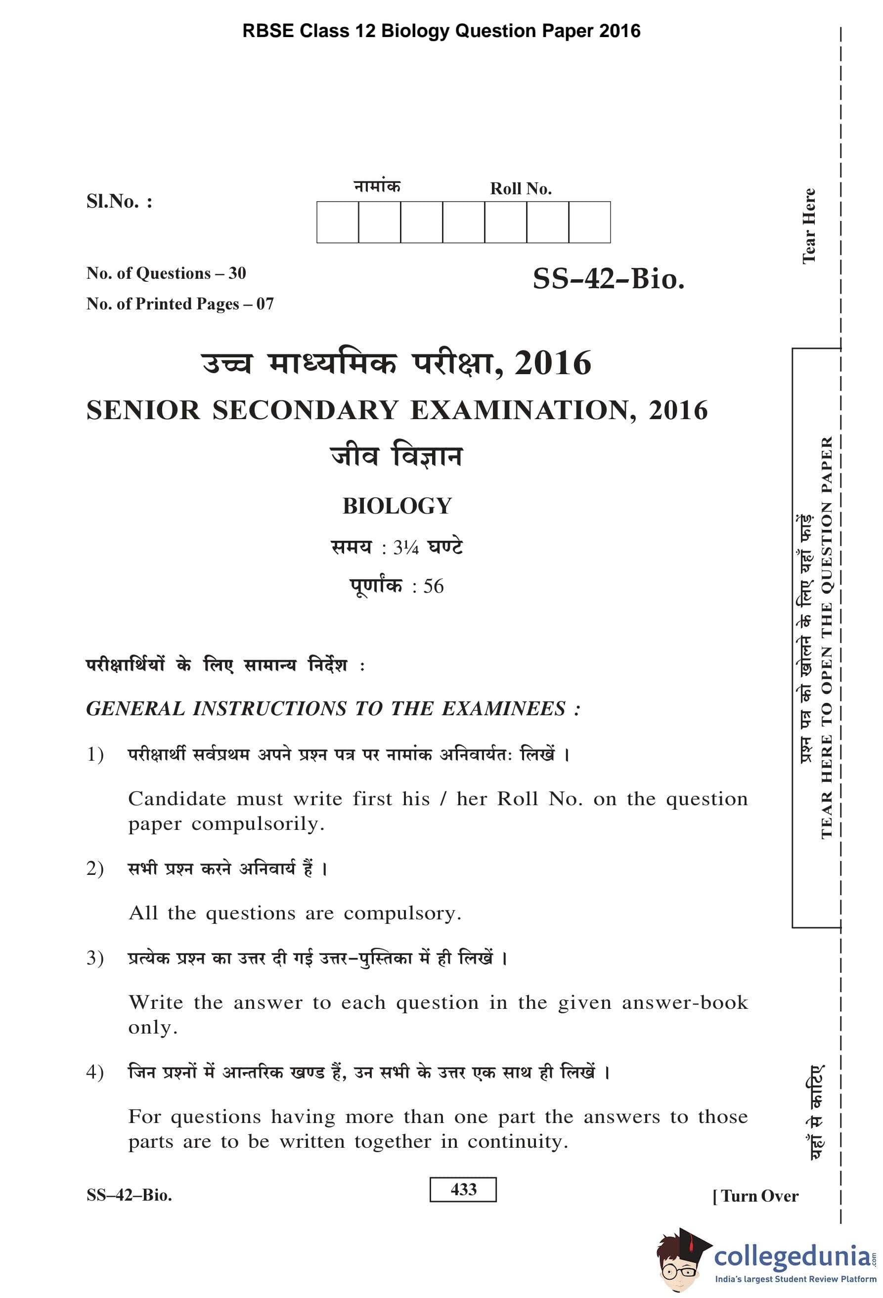 | RBSE Class 12 Biology Question Paper 2016 PDF | RBSE Class 12 Biology Answer Key 2016 PDF |