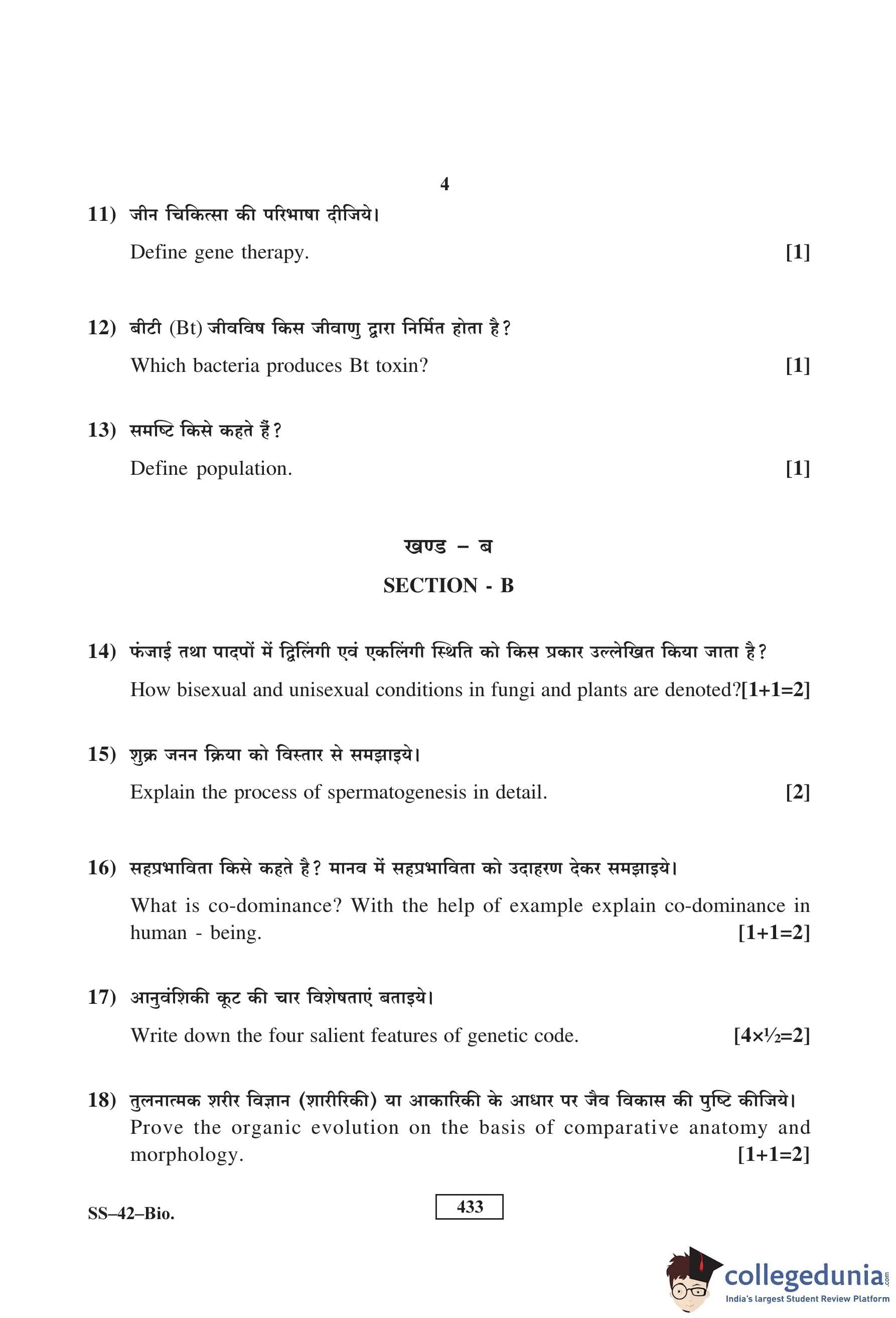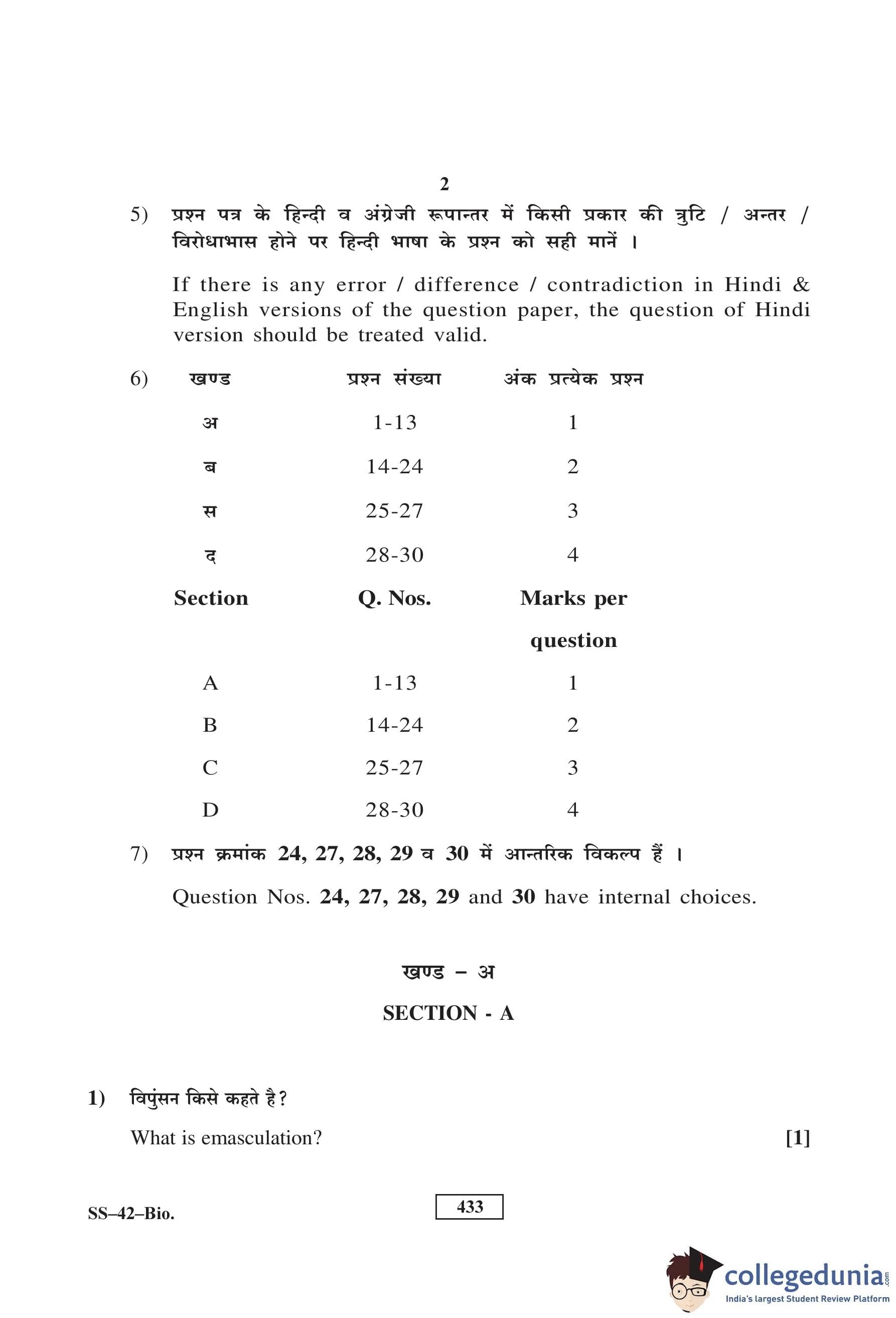 RBSE Class 12 Biology Question Paper 2016 with Answer Key pdf is available for download here. The exam was conducted by Board of Secondary Education Rajasthan (BSER) on March 15, 2016 in the Morning Session 8:30 AM to 11:45 AM. The question paper comprised a total of 30 questions divided among 4 sections.
