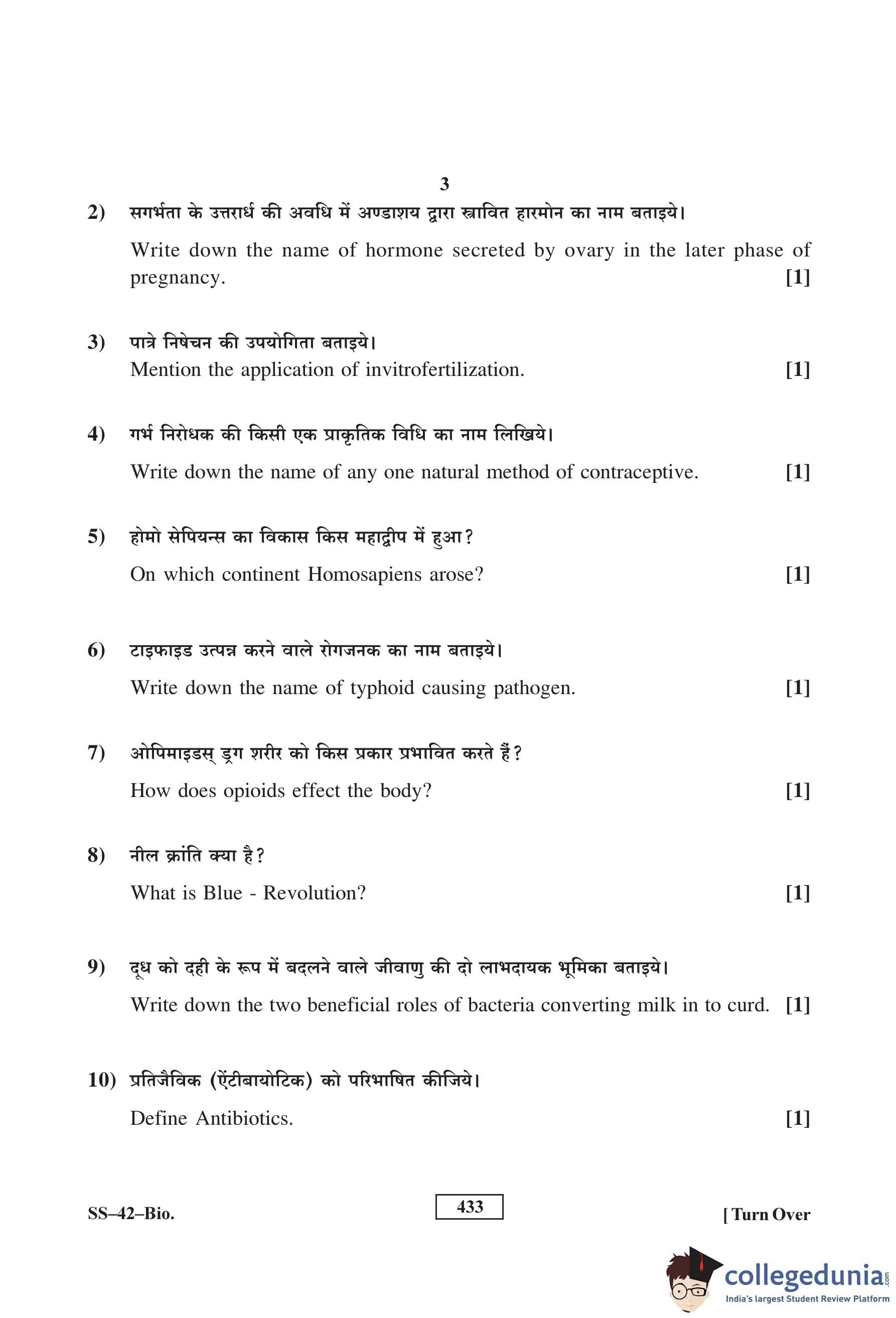 RBSE Class 12 Biology Question Paper 2016 with Answer Key