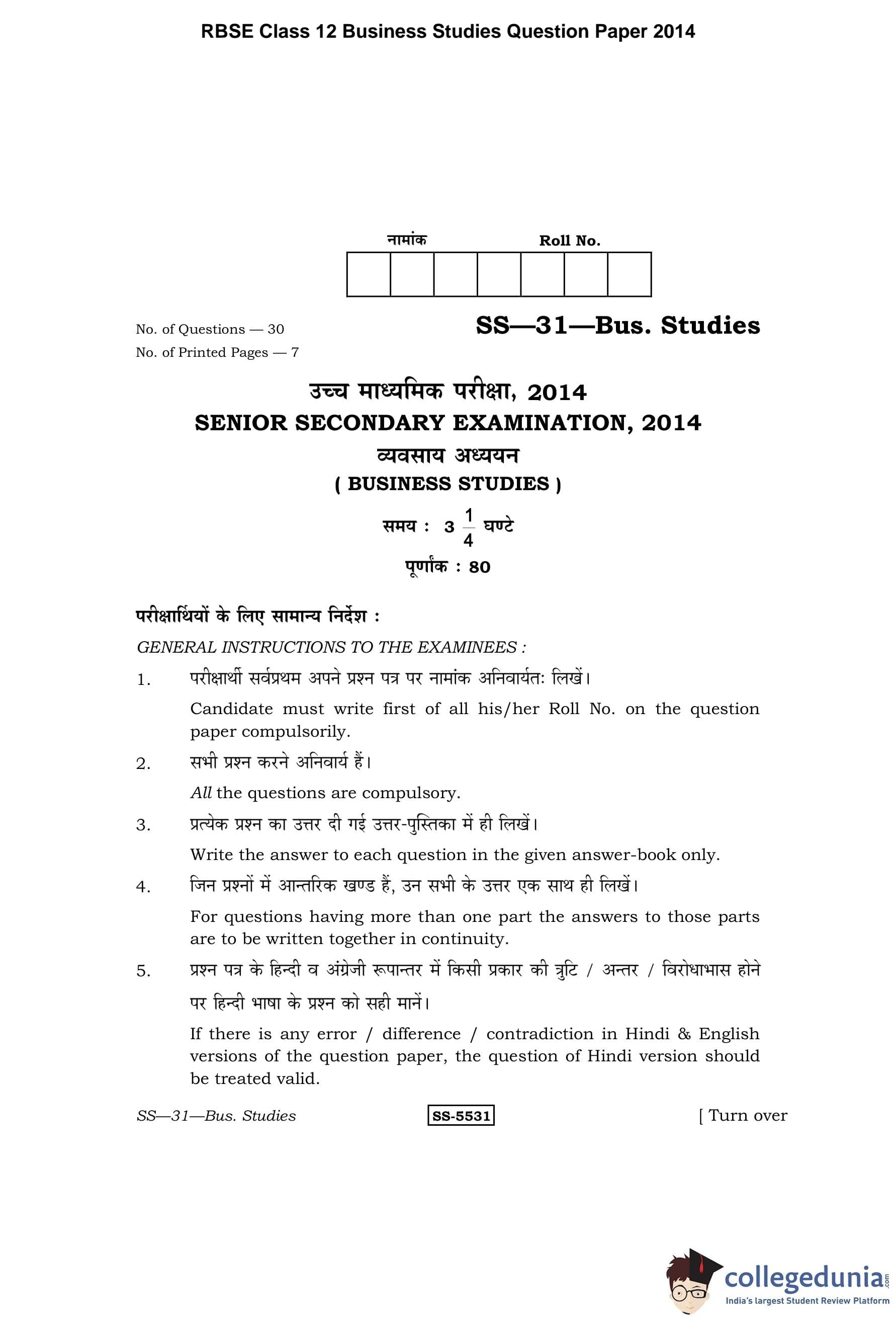 | RBSE Class 12 Business Studies Question Paper 2014 PDF | RBSE Class 12 Business Studies Answer Key 2014 PDF |