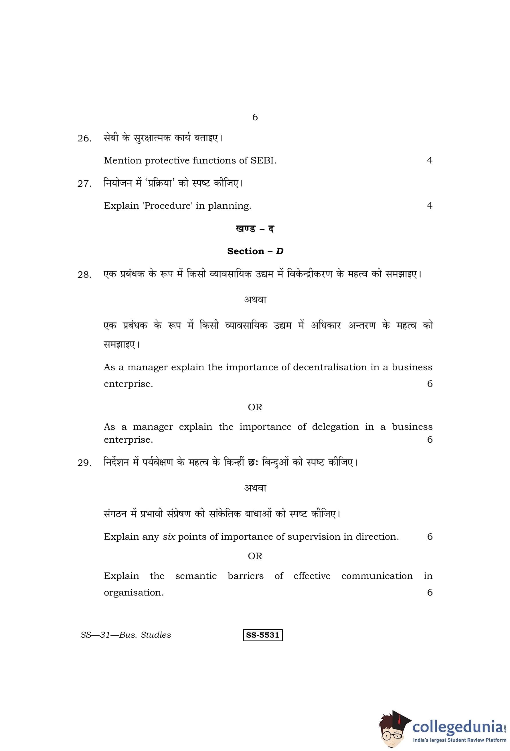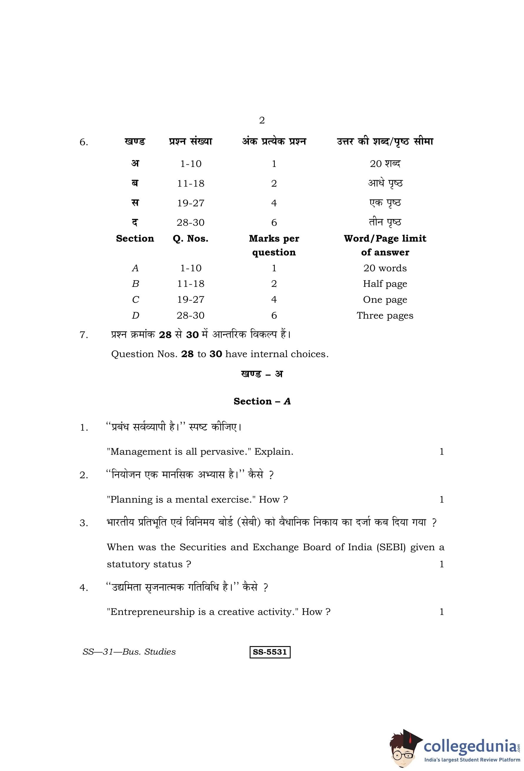 RBSE Class 12 Business Studies Question Paper 2014 with Answer Key pdf is available for download here. The exam was conducted by Board of Secondary Education Rajasthan (BSER) on March 12, 2014 in the Morning Session 8:30 AM to 11:45 AM. The question paper comprised a total of 30 questions divided among 4 sections.