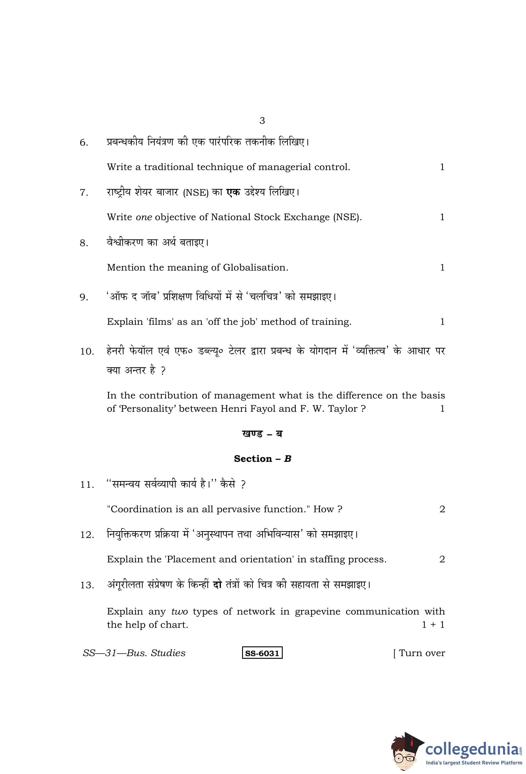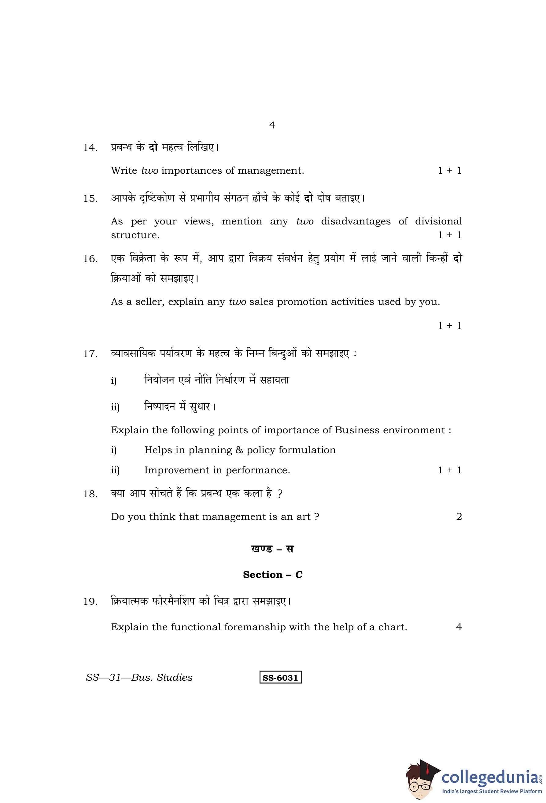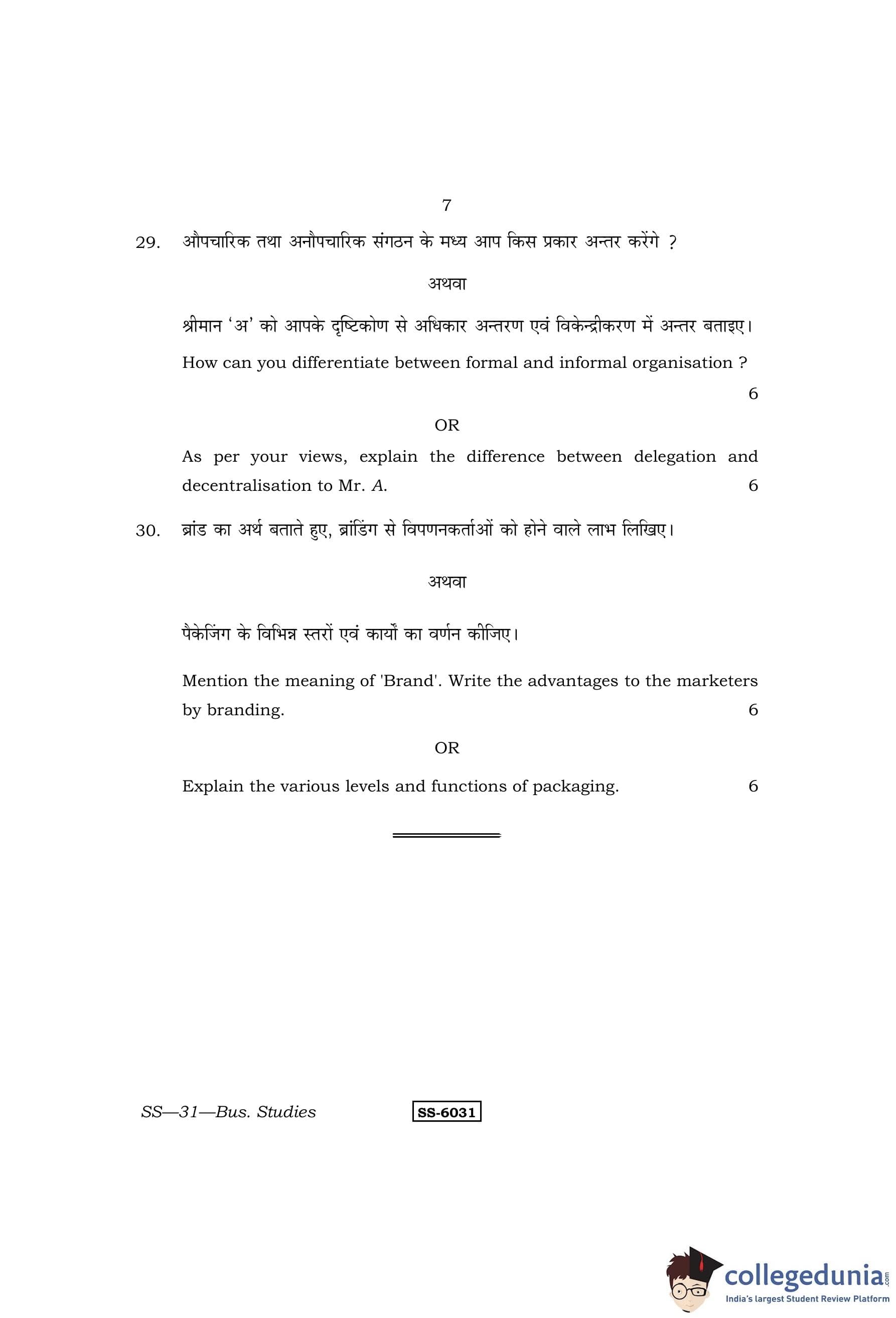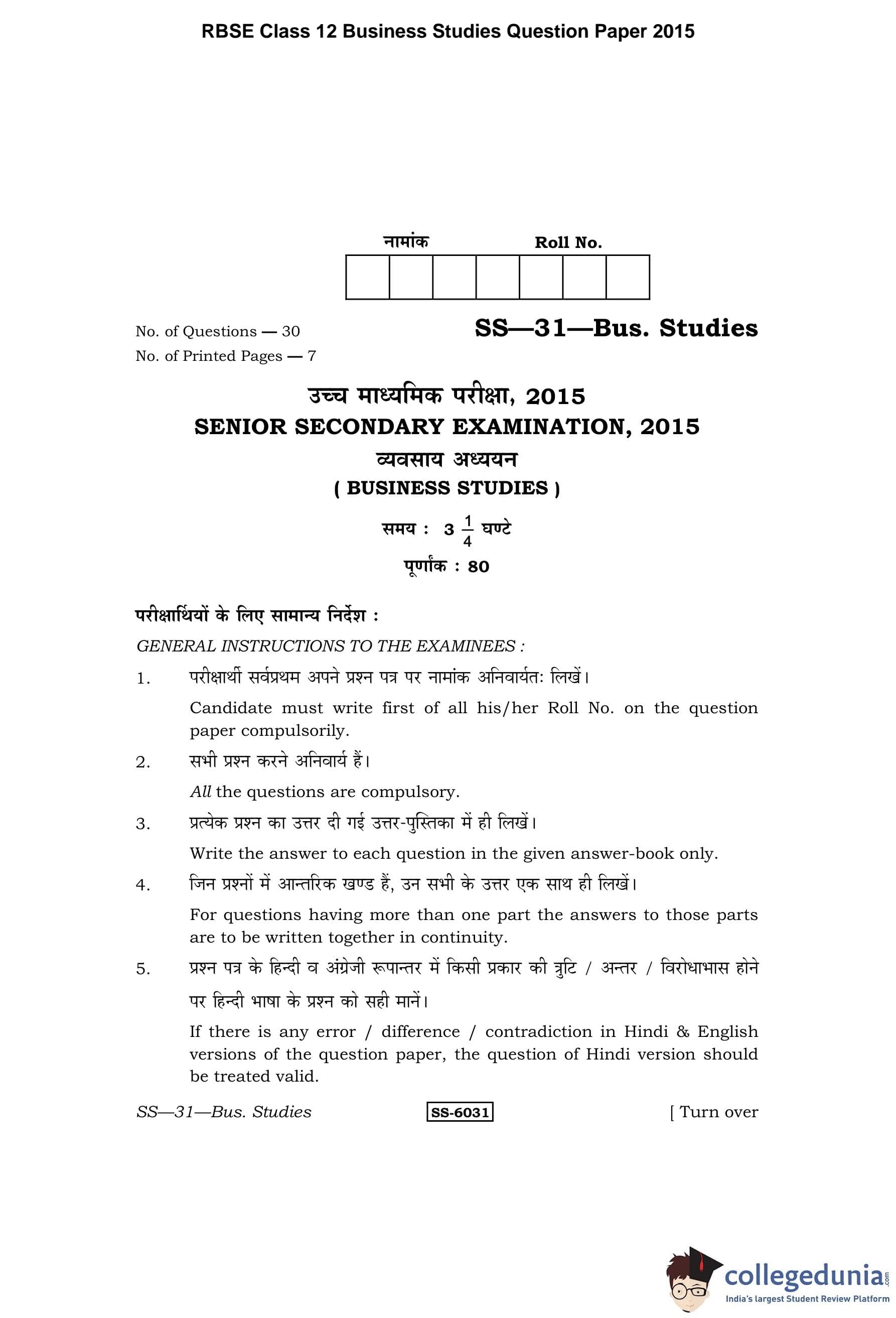RBSE Class 12 Business Studies Question Paper 2015 with Answer Key