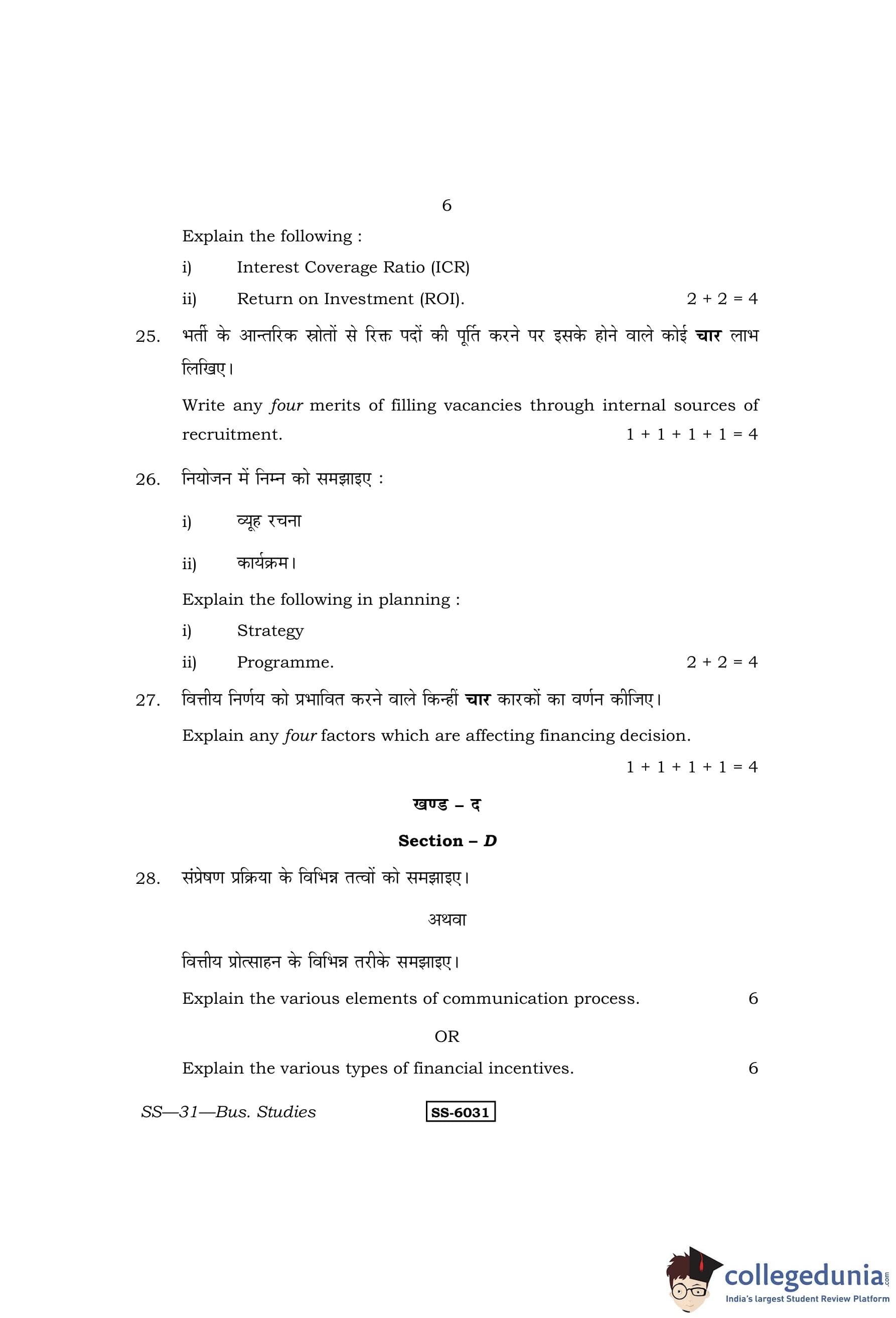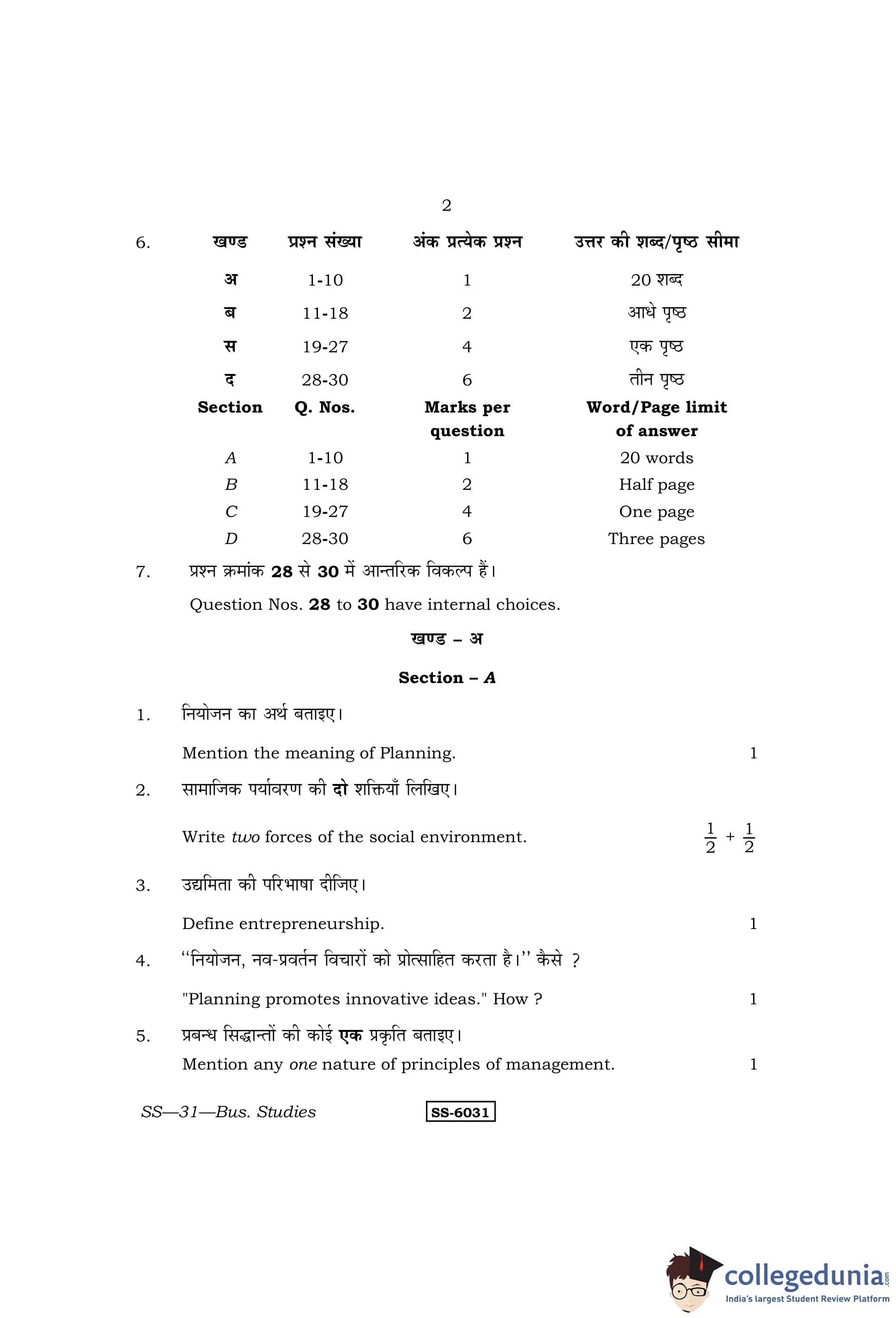 RBSE Class 12 Business Studies Question Paper 2015 with Answer Key pdf is available for download here. The exam was conducted by Board of Secondary Education Rajasthan (BSER) on March 18, 2015 in the Morning Session 8:30 AM to 11:45 AM. The question paper comprised a total of 30 questions divided among 4 sections.