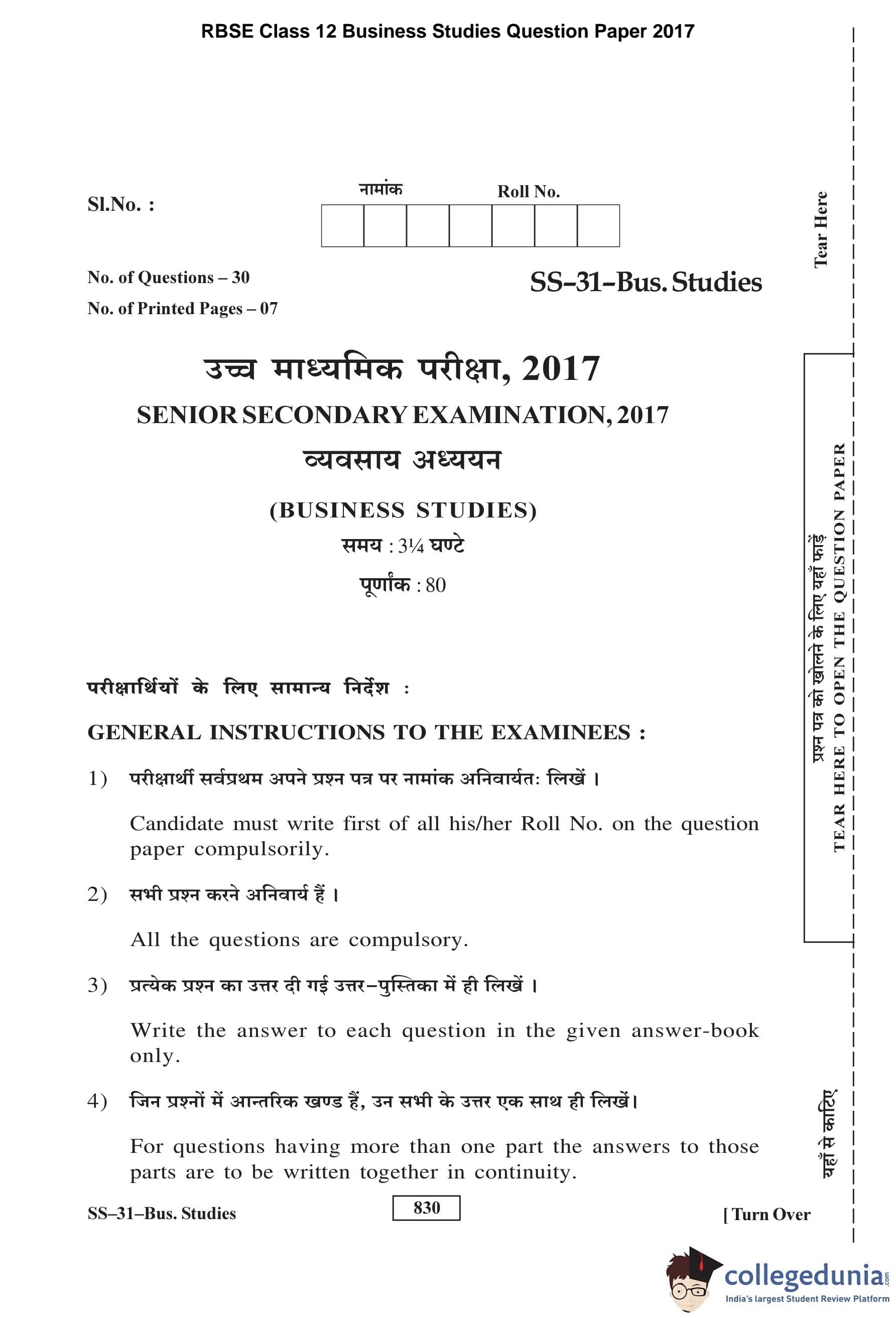 | RBSE Class 12 Business Studies Question Paper 2017 PDF | RBSE Class 12 Business Studies Answer Key 2017 PDF |