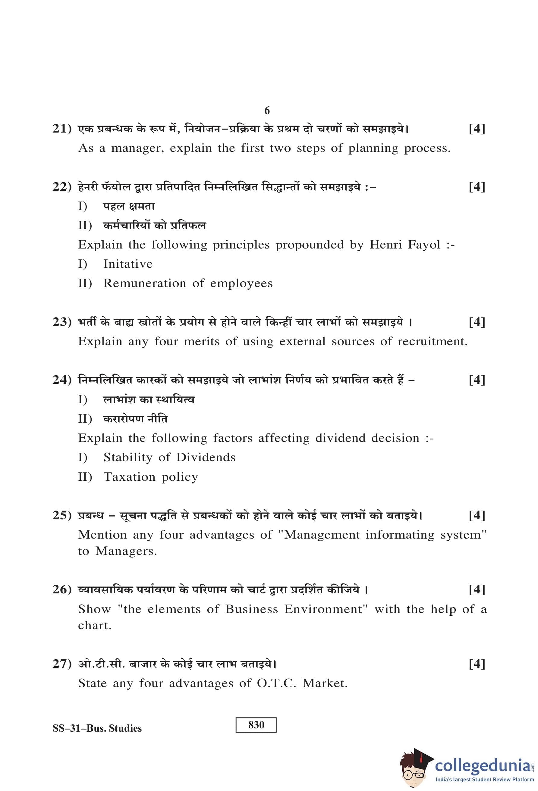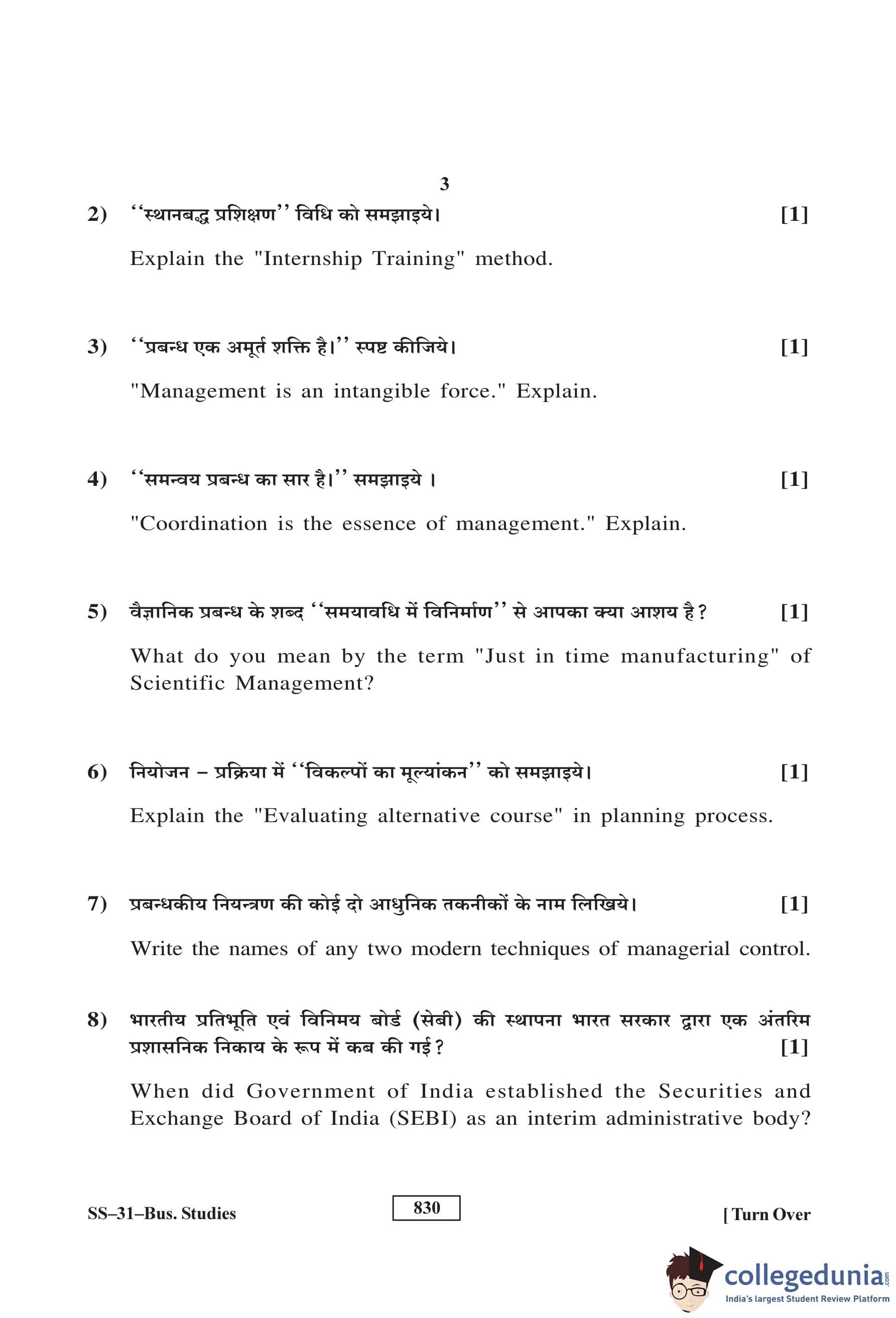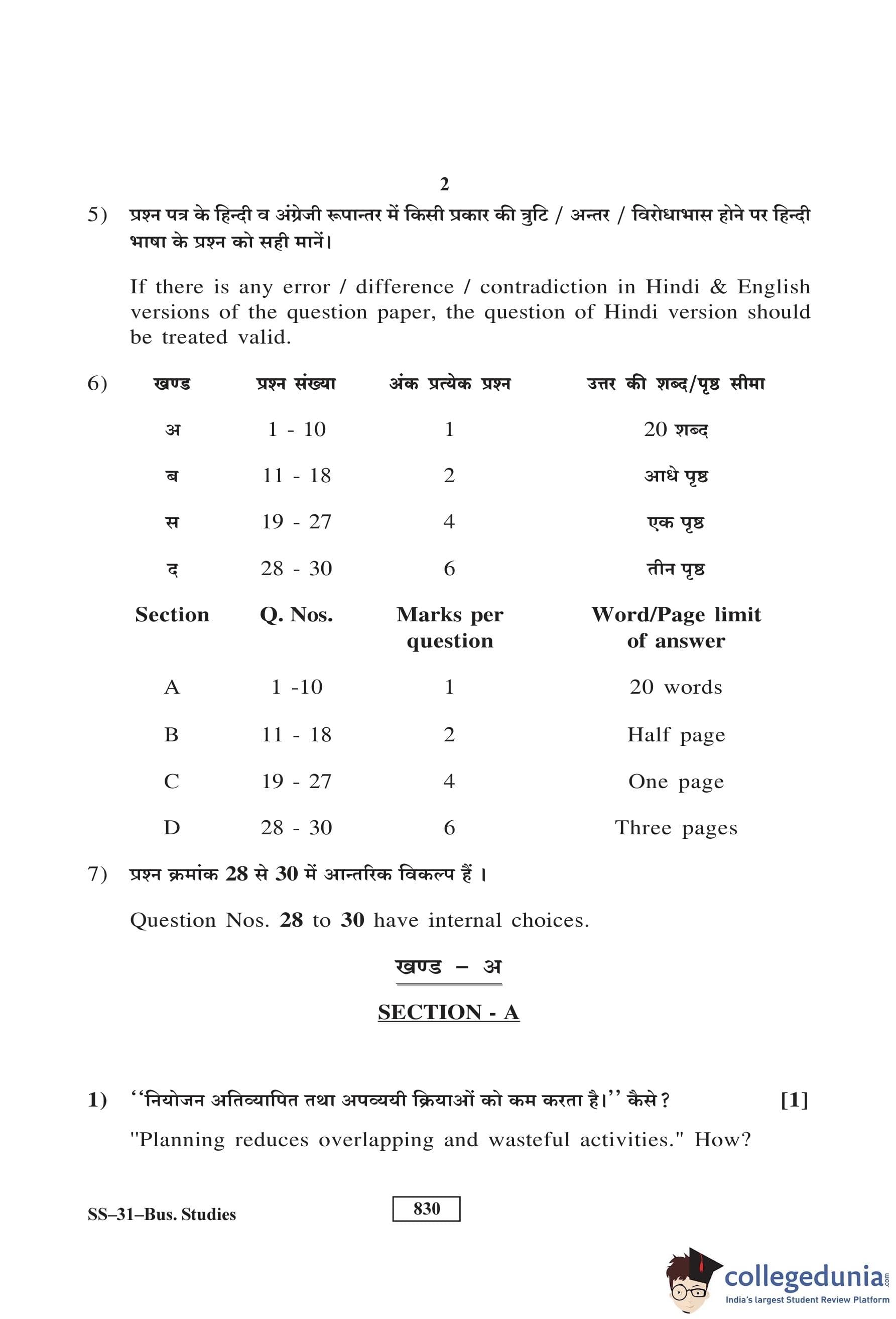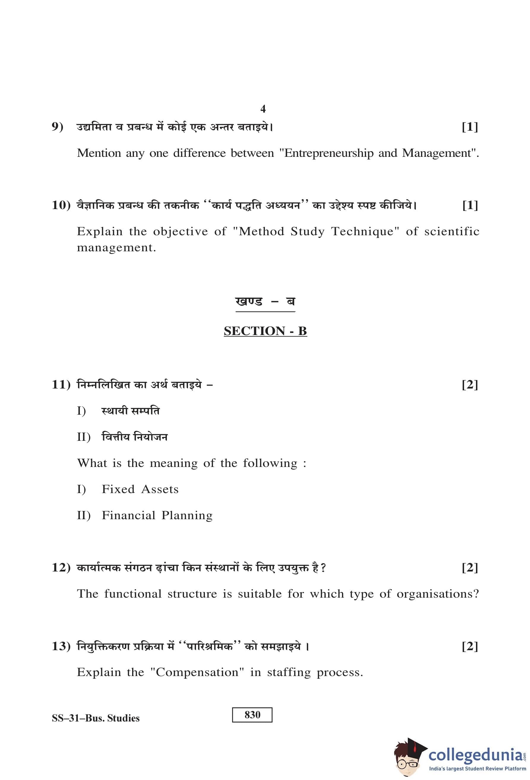 RBSE Class 12 Business Studies Question Paper 2017 with Answer Key pdf is available for download here. The exam was conducted by Board of Secondary Education Rajasthan (BSER) on March 10, 2017 in the Morning Session 8:30 AM to 11:45 AM. The question paper comprised a total of 30 questions divided among 4 sections.
