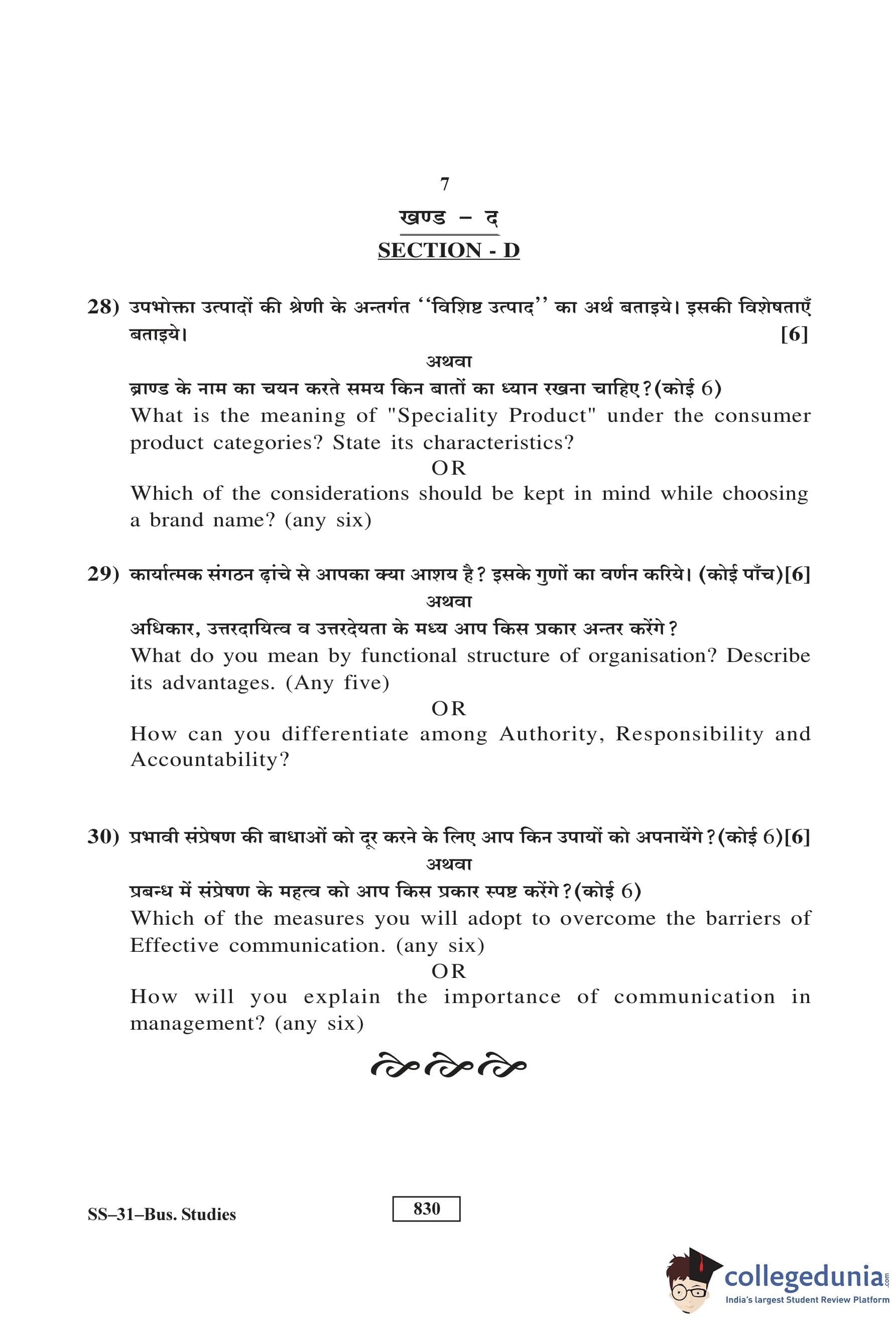 RBSE Class 12 Business Studies Question Paper 2017 with Answer Key