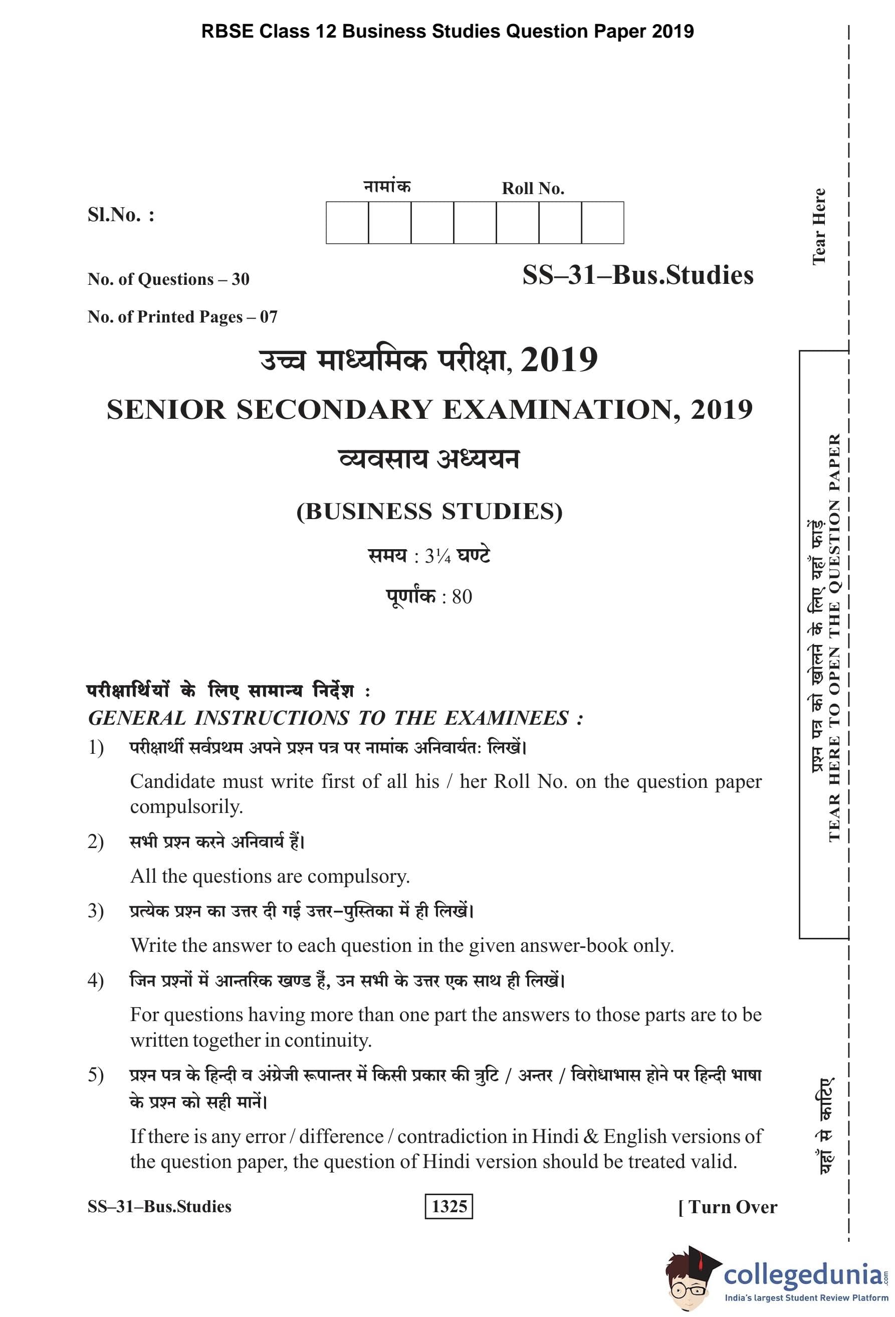 | RBSE Class 12 Business Studies Question Paper 2019 PDF | RBSE Class 12 Business Studies Answer Key 2019 PDF |