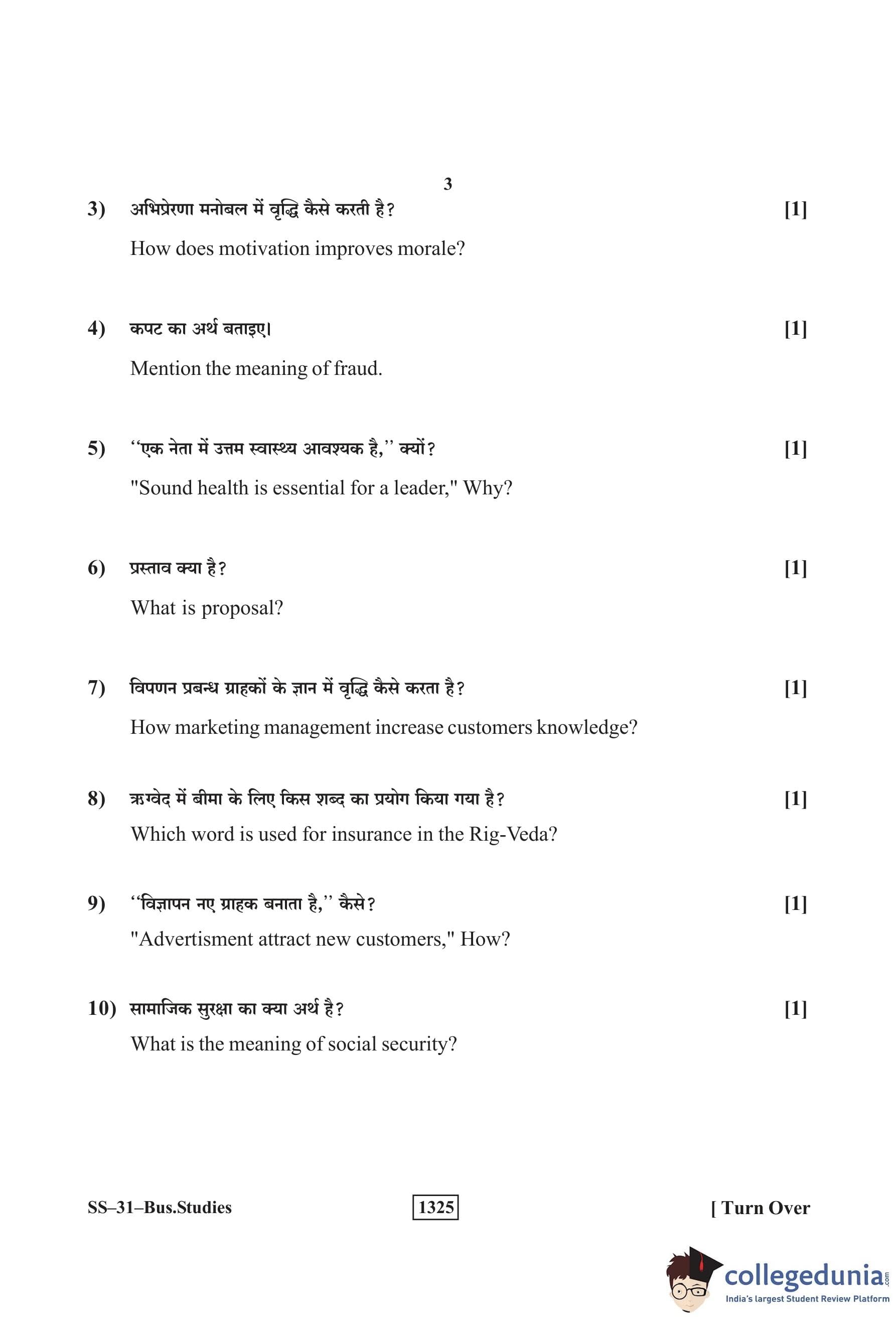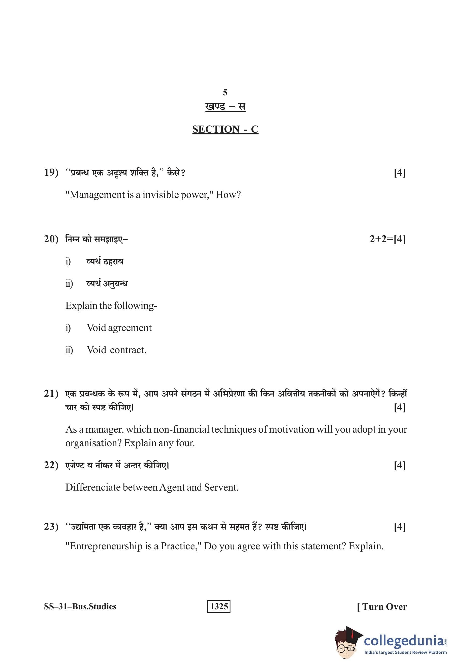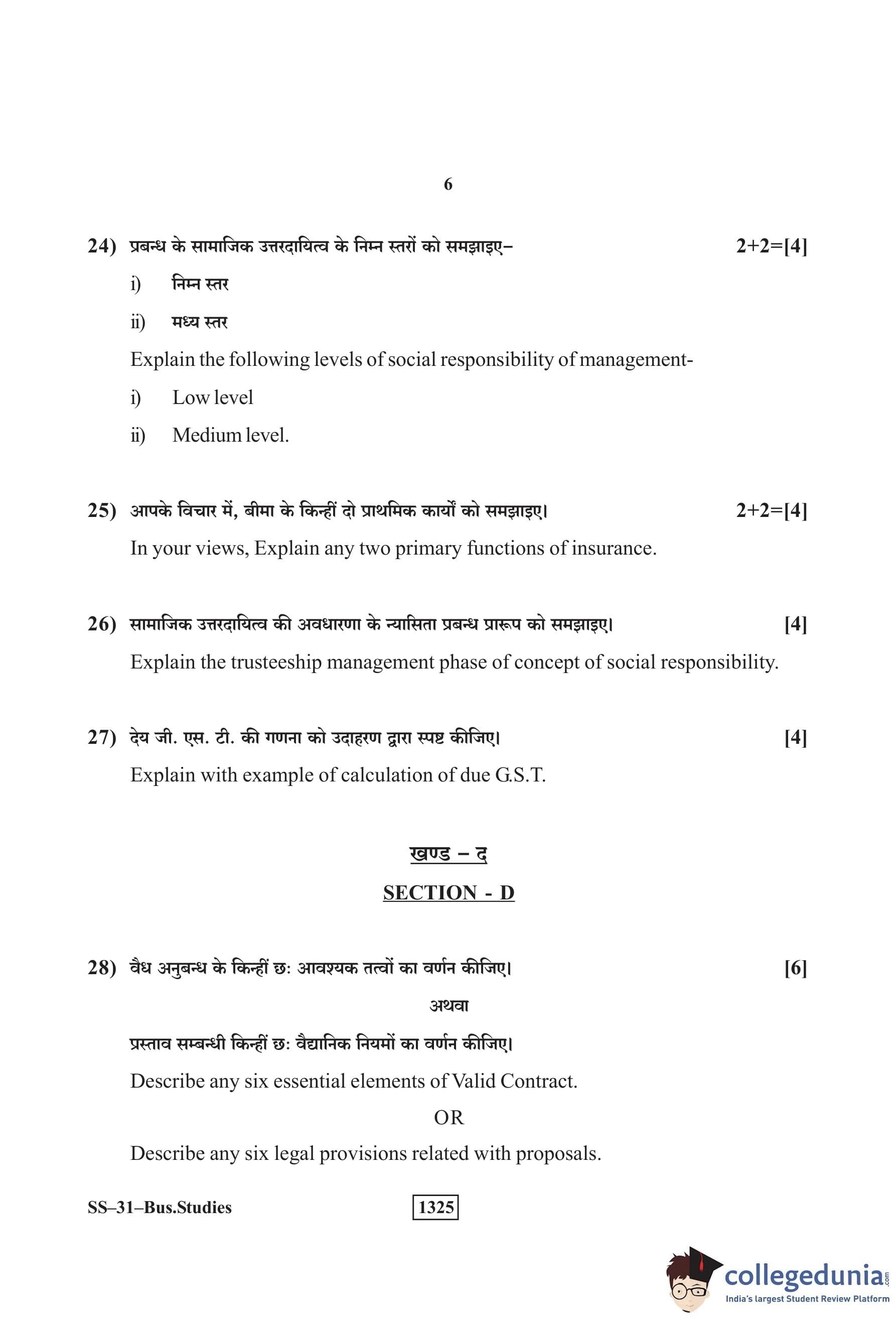 RBSE Class 12 Business Studies Question Paper 2019 with Answer Key