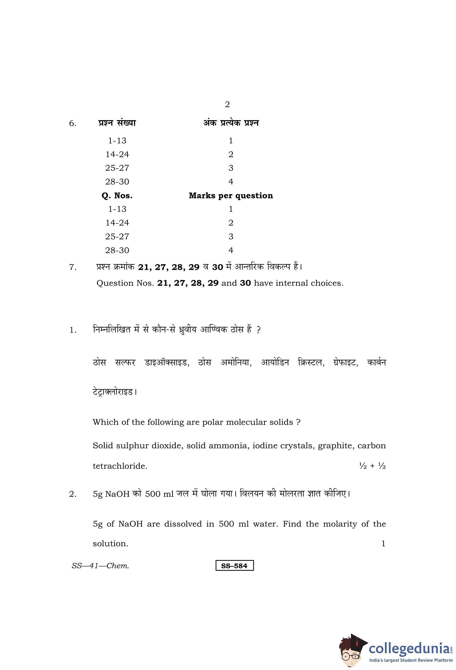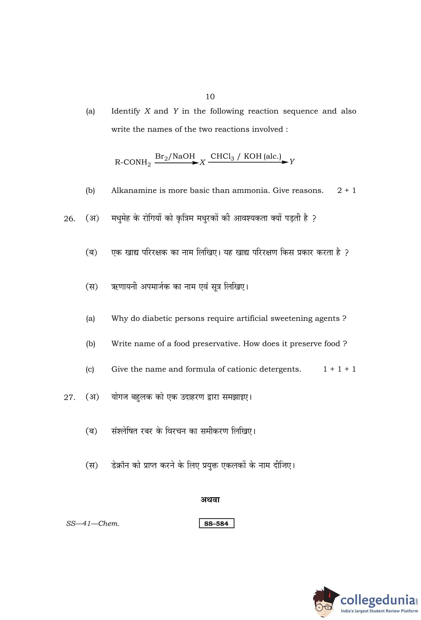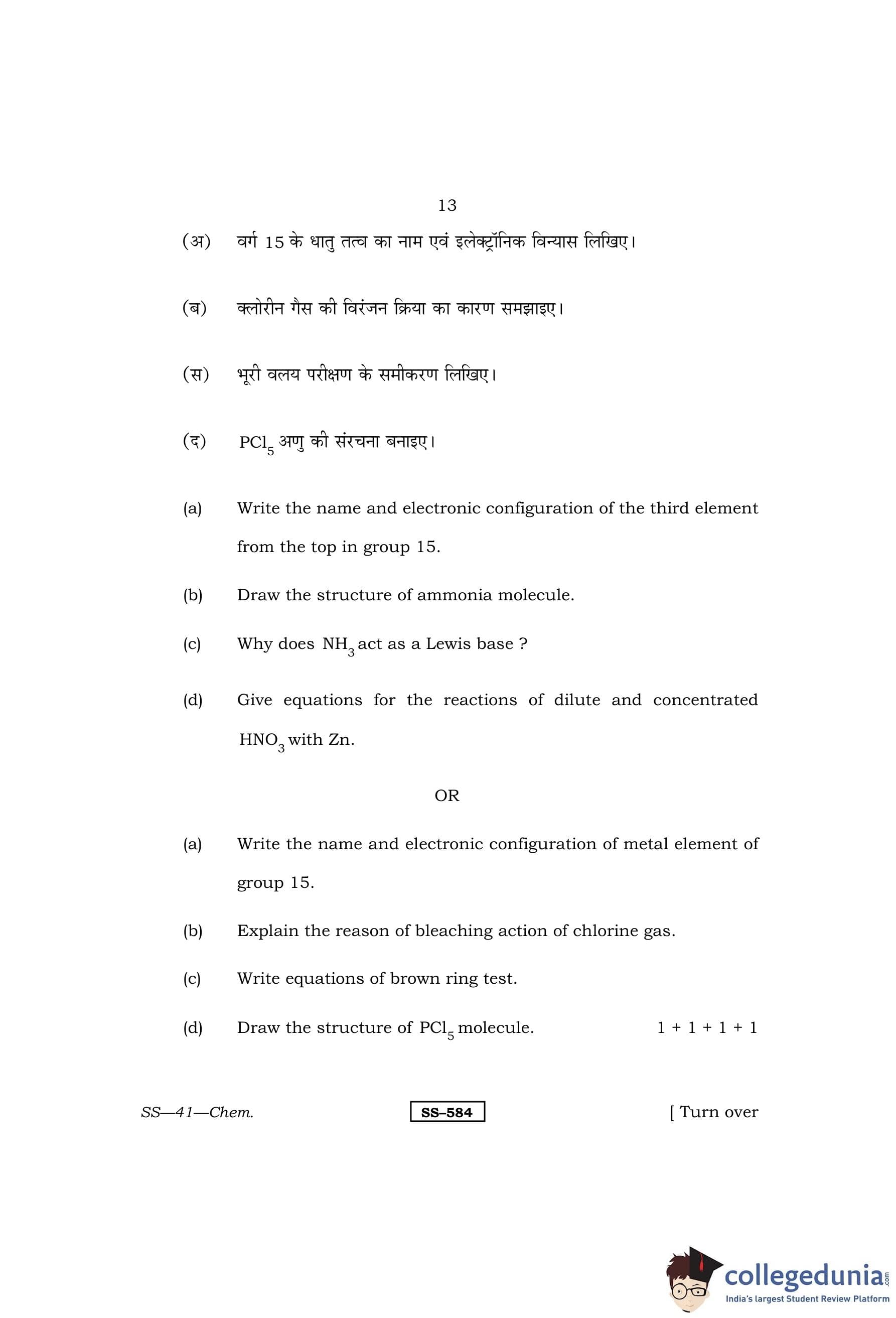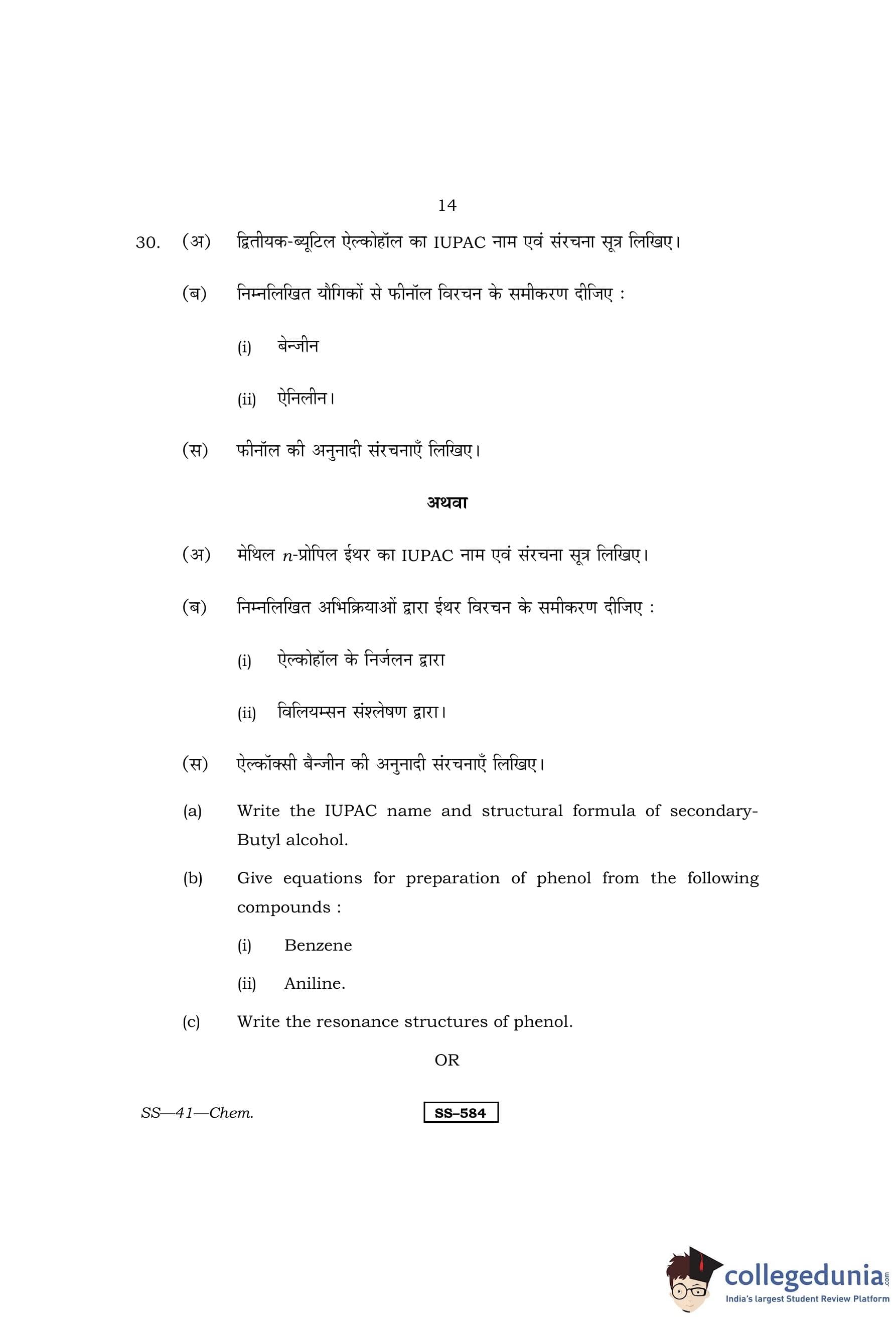 RBSE Class 12 Chemistry Question Paper 2013 with Answer Key pdf is available for download here. The exam was conducted by Board of Secondary Education Rajasthan (BSER). The question paper comprised a total of 30 questions.