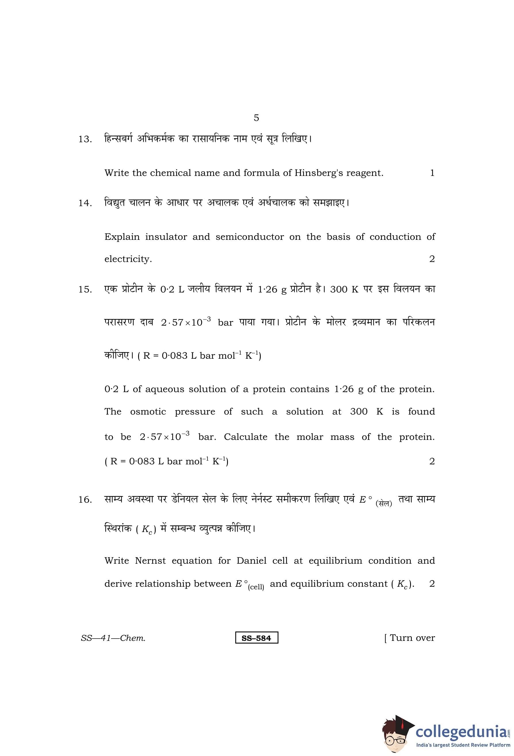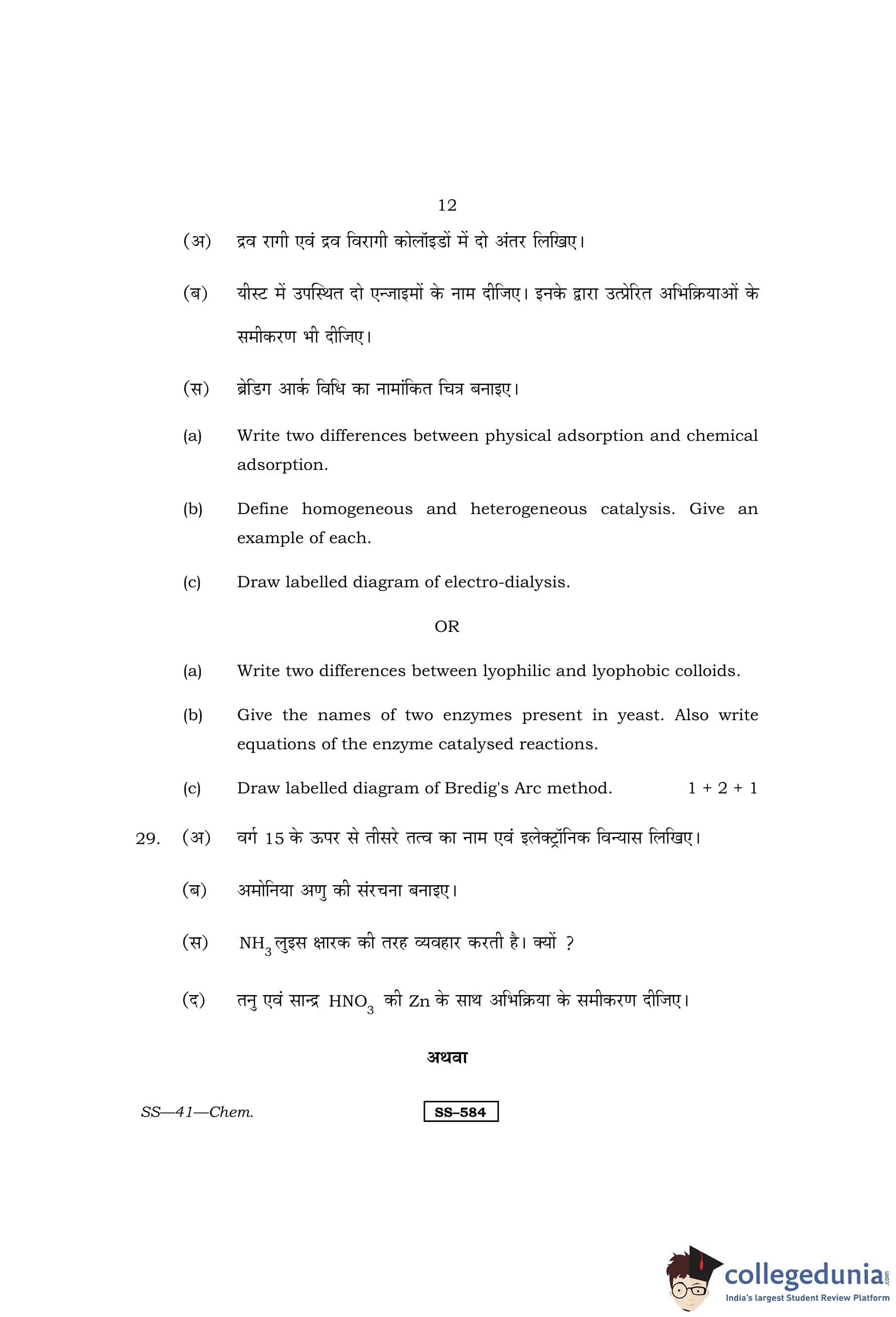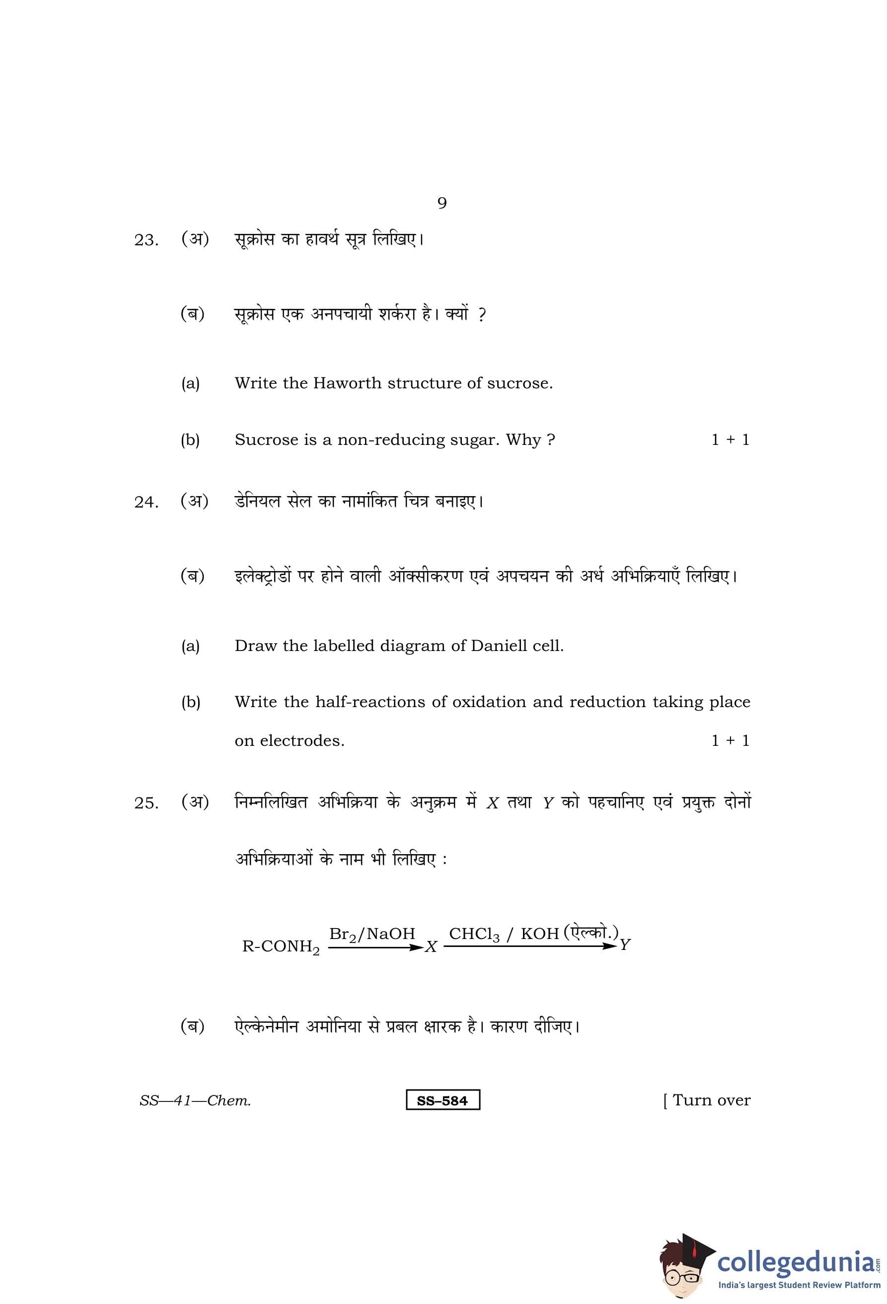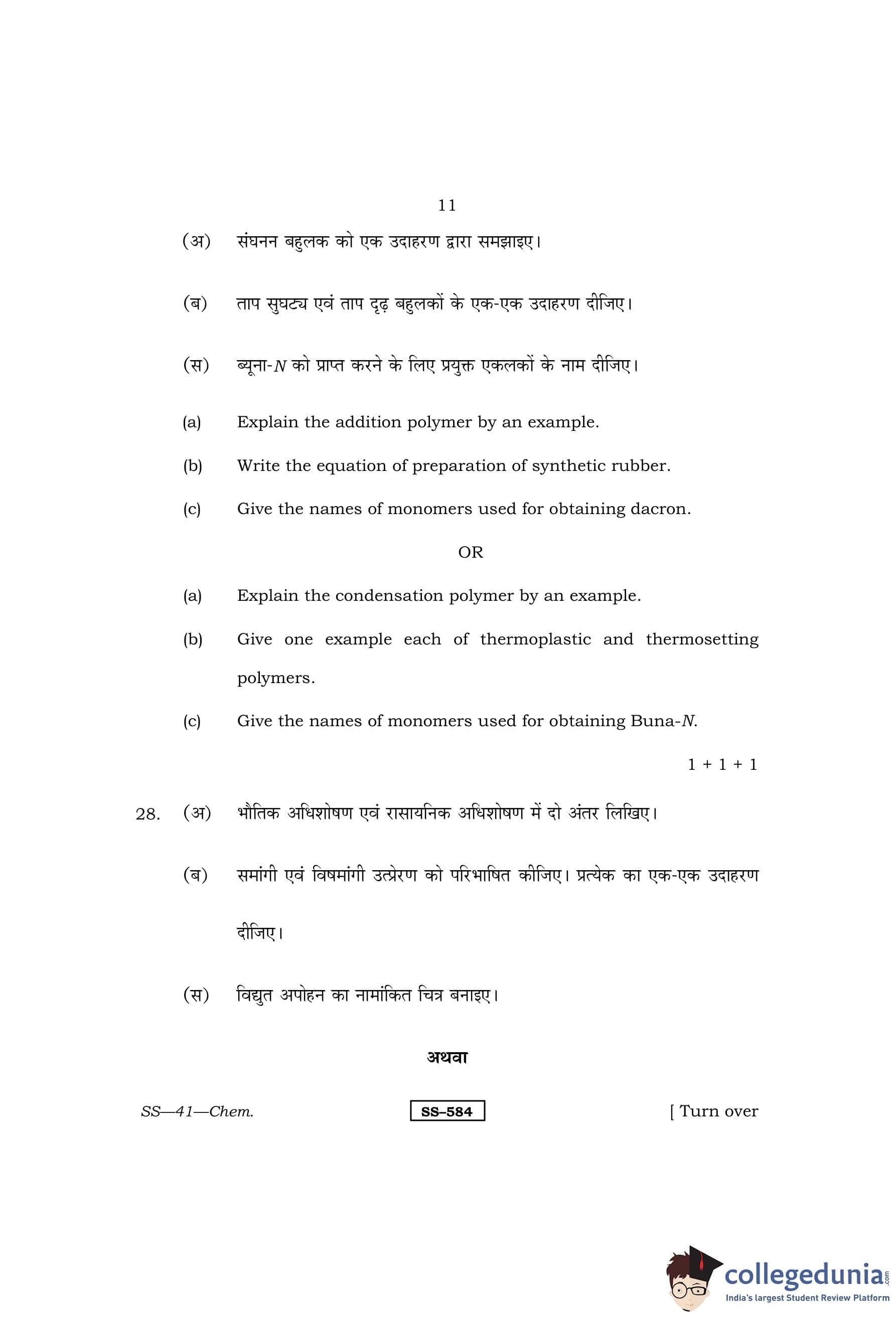RBSE Class 12 Chemistry Question Paper 2013 with Answer Key pdf is available for download here. The exam was conducted by Board of Secondary Education Rajasthan (BSER). The question paper comprised a total of 30 questions.