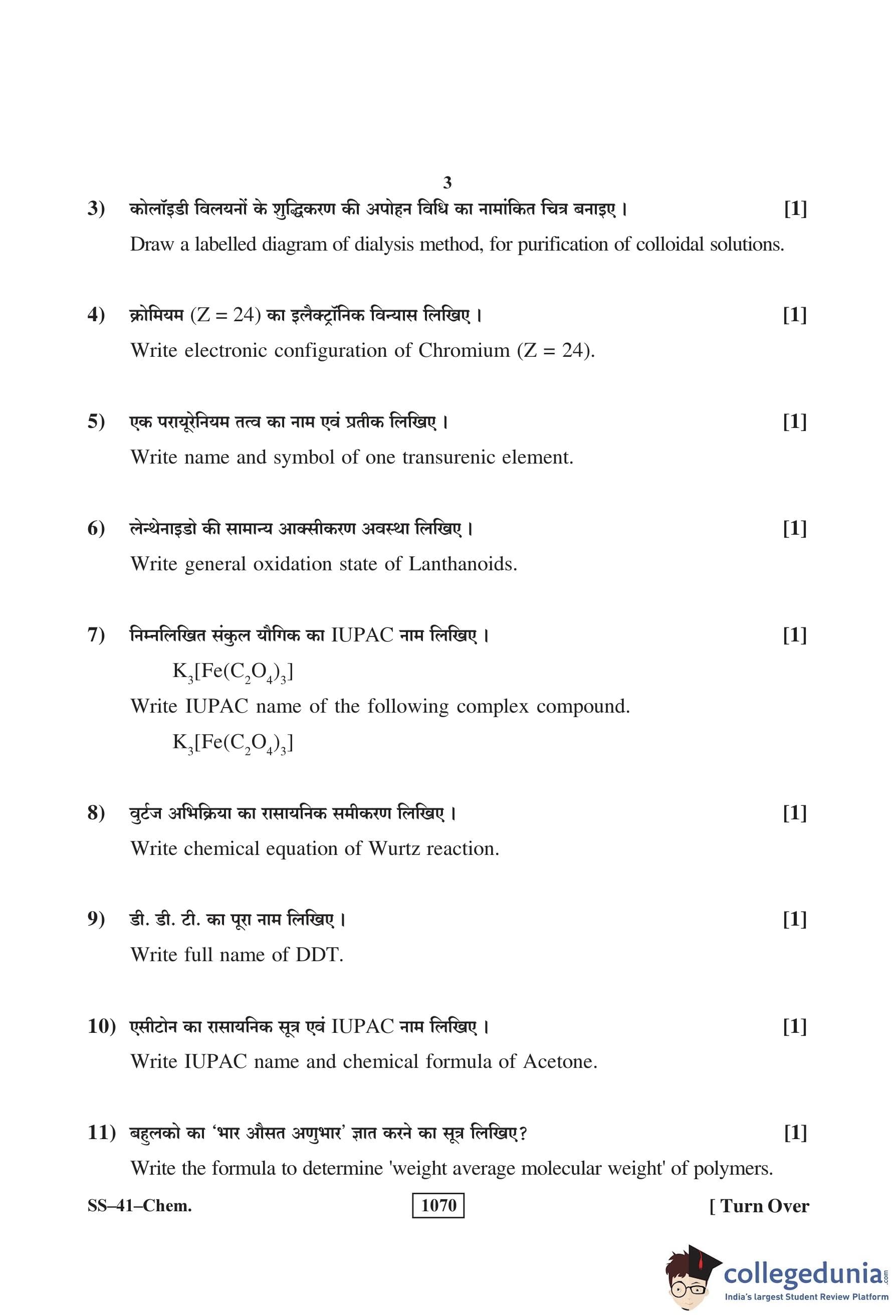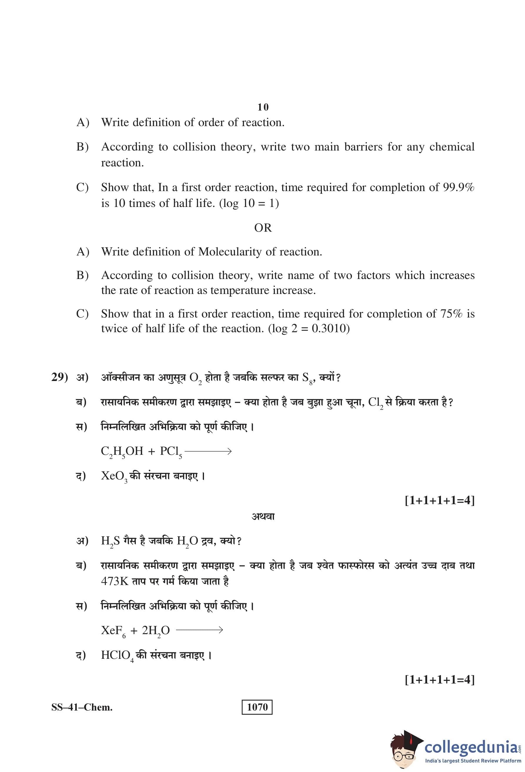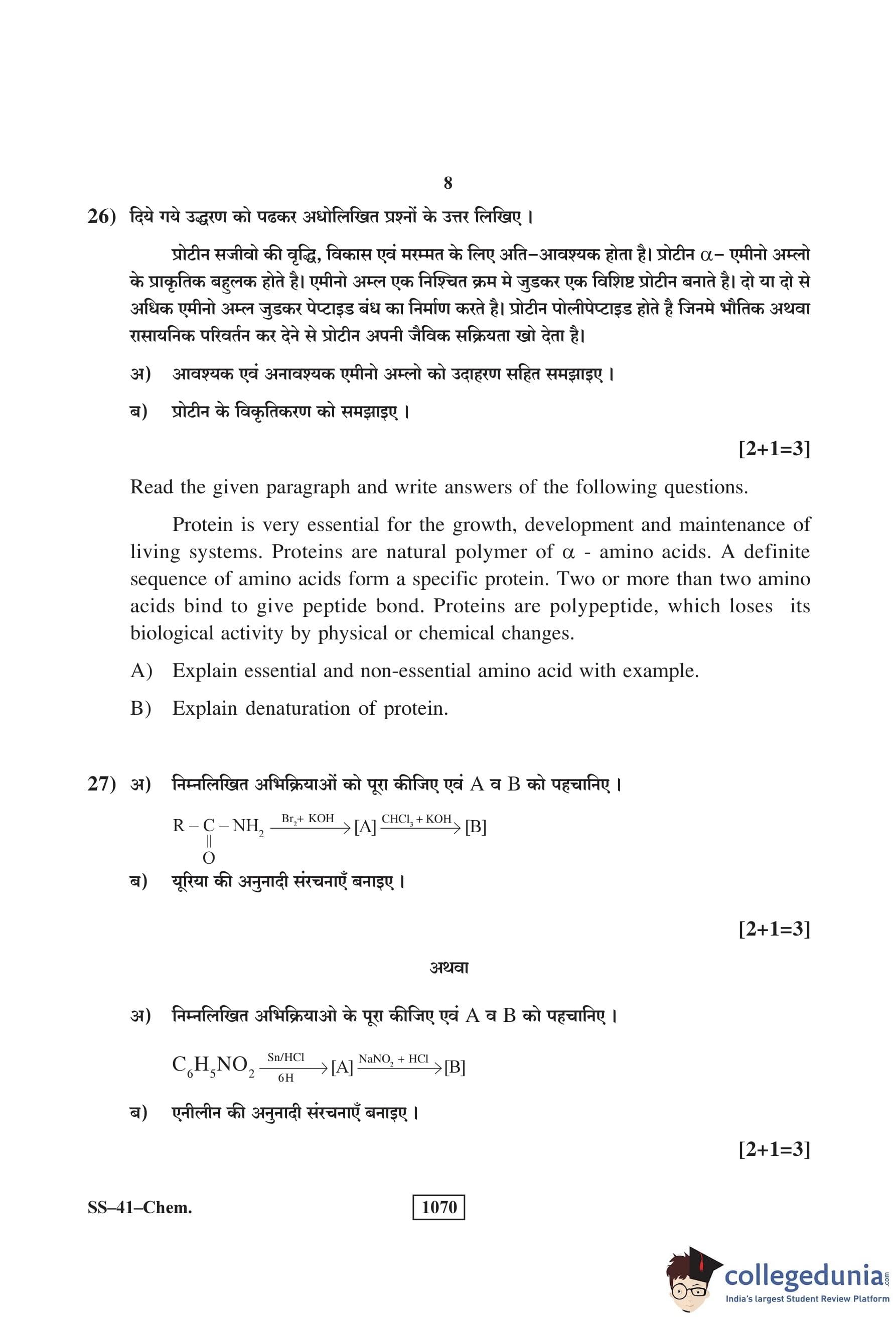 RBSE Class 12 Chemistry Question Paper 2018 with Answer Key pdf is available for download here. The exam was conducted by Board of Secondary Education Rajasthan (BSER) on March 16, 2018 in the Morning Session 8:30 AM to 11:45 AM. The question paper comprised a total of 30 questions divided among 4 sections.