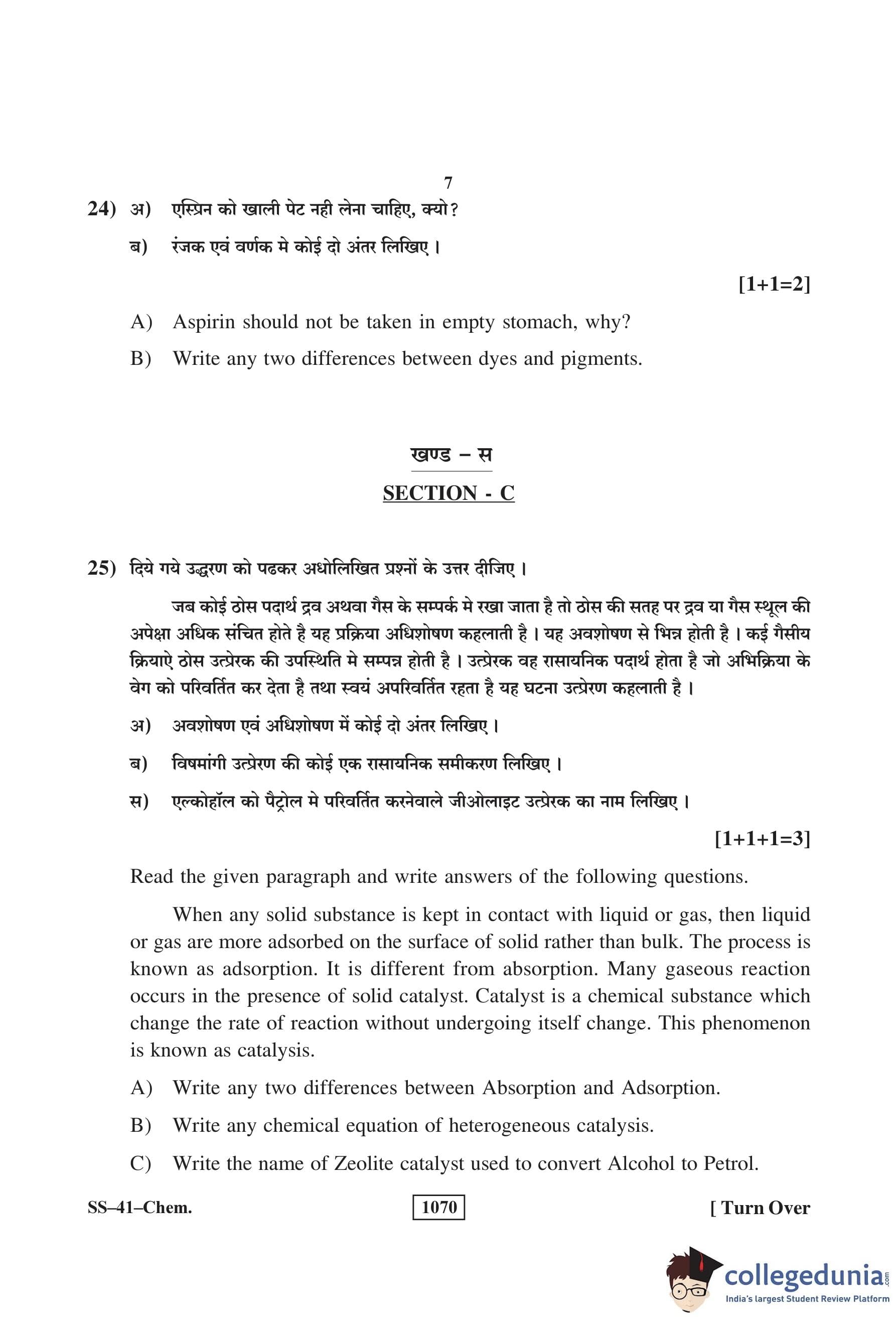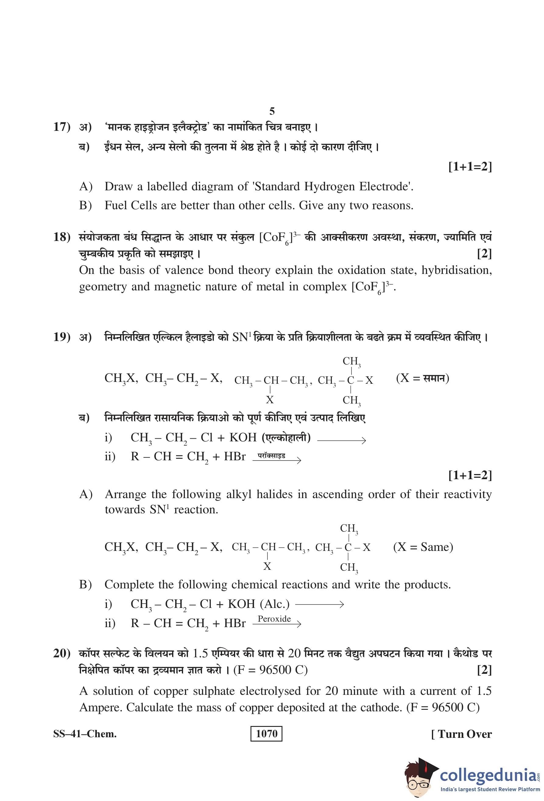 RBSE Class 12 Chemistry Question Paper 2018 with Answer Key