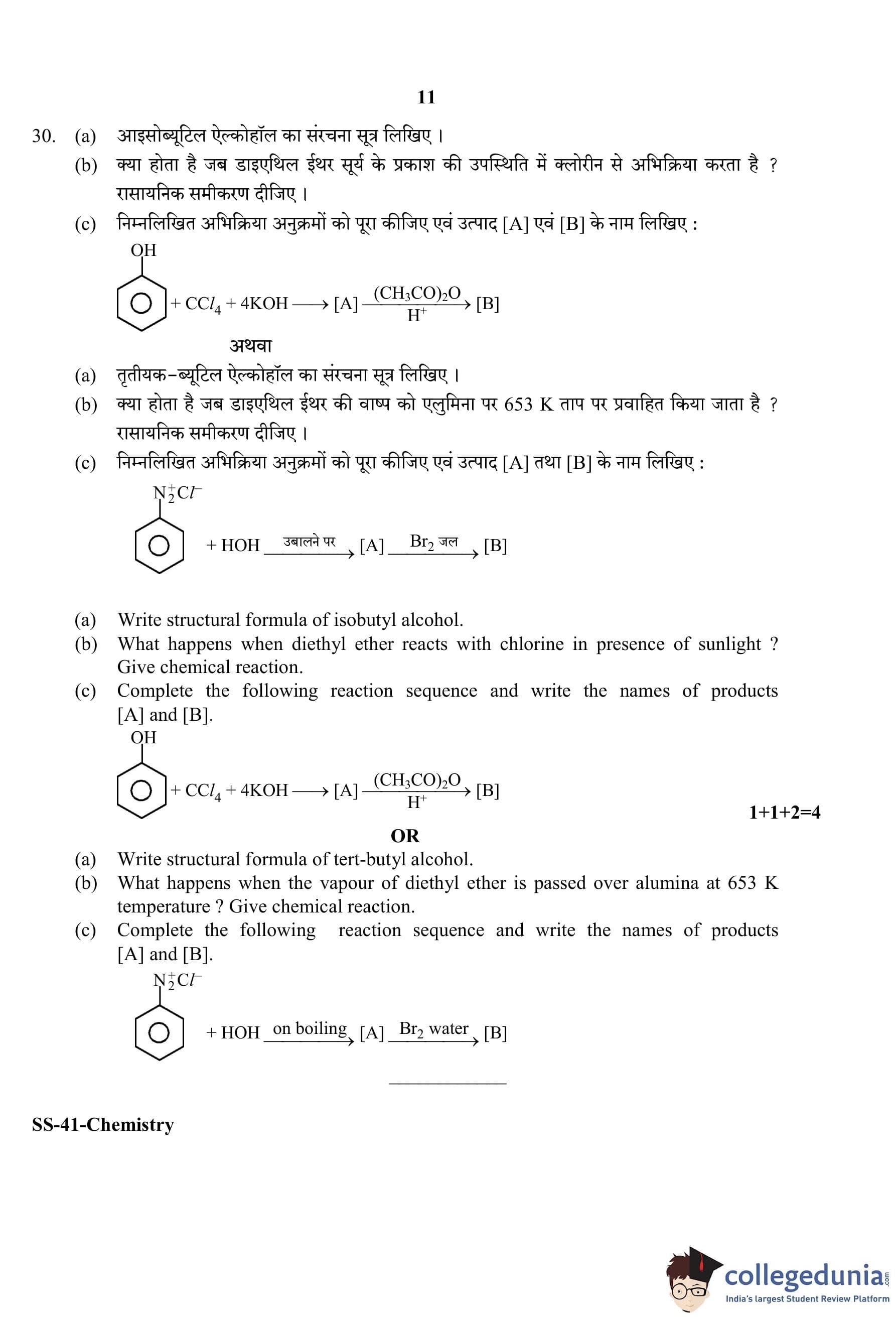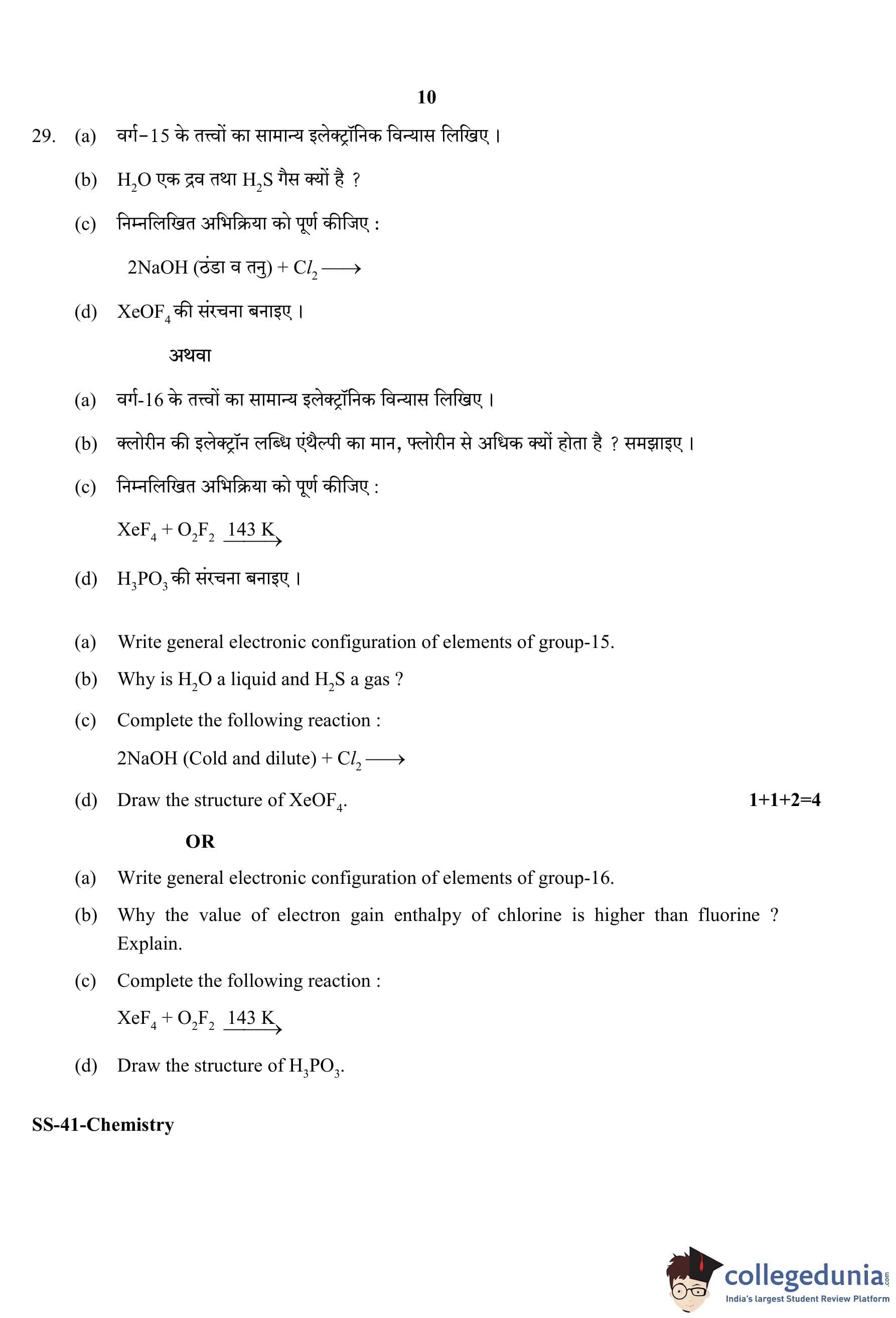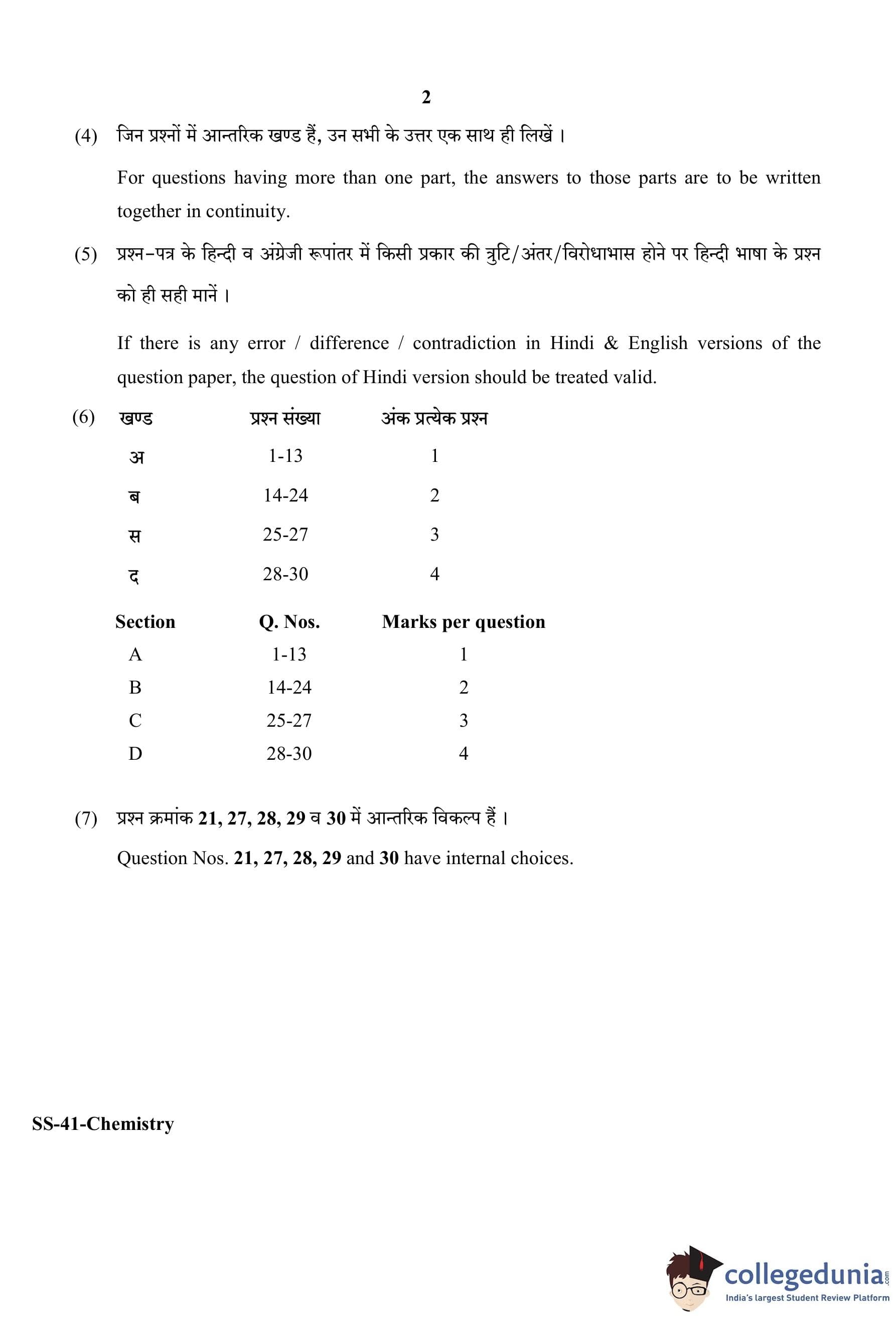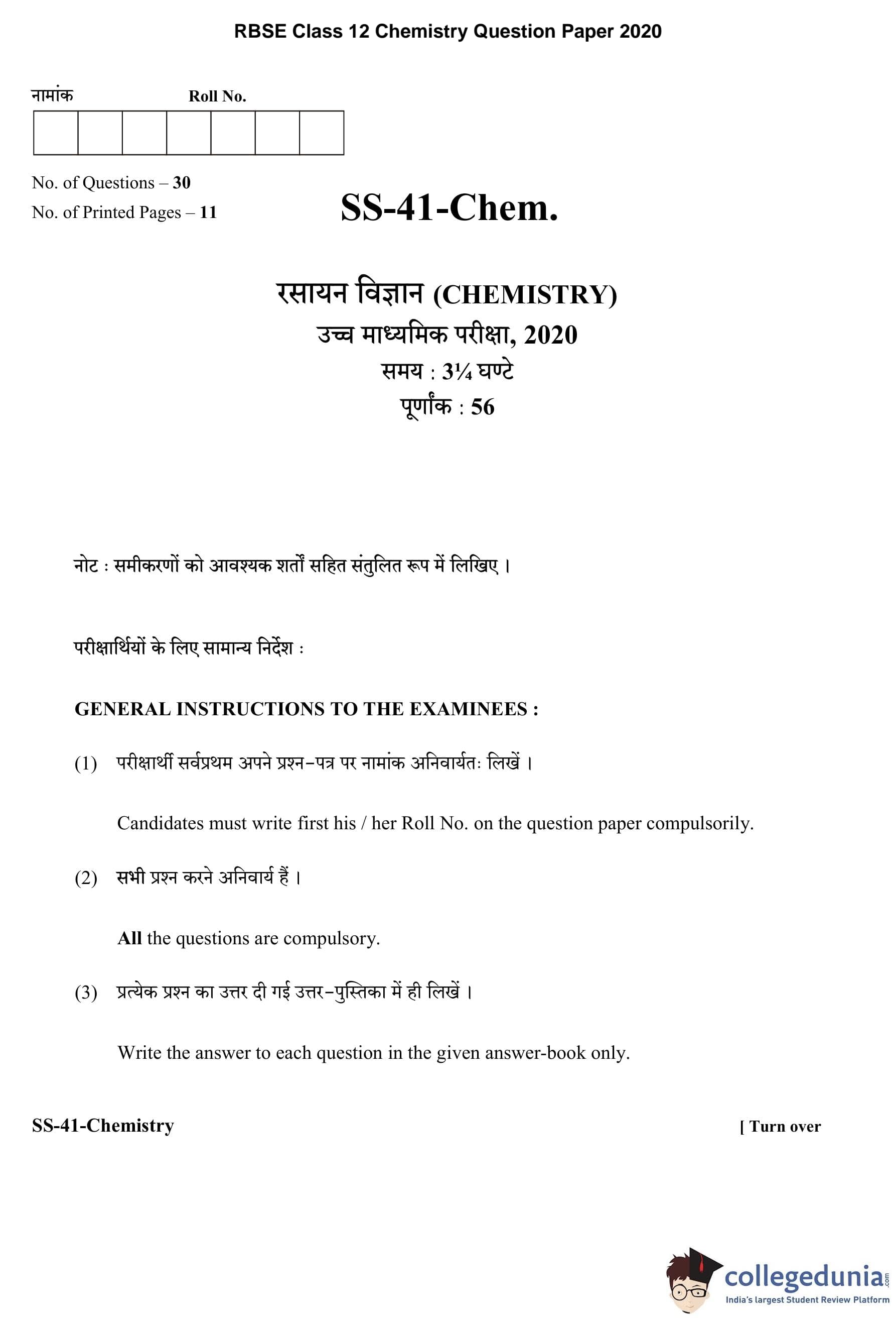 RBSE Class 12 Chemistry Question Paper 2020 with Answer Key pdf is available for download here. The exam was conducted by Board of Secondary Education Rajasthan (BSER) on March 17, 2020 in the Morning Session 8:30 AM to 11:45 AM. The question paper comprised a total of 30 questions divided among 4 sections.