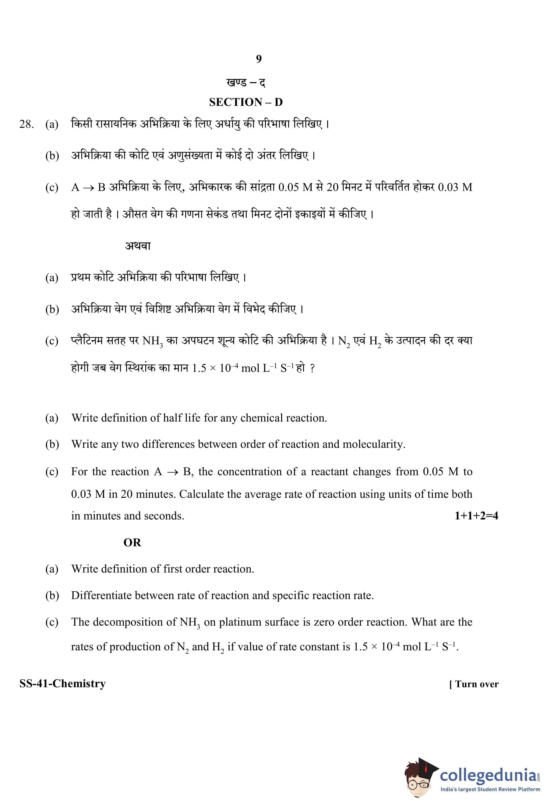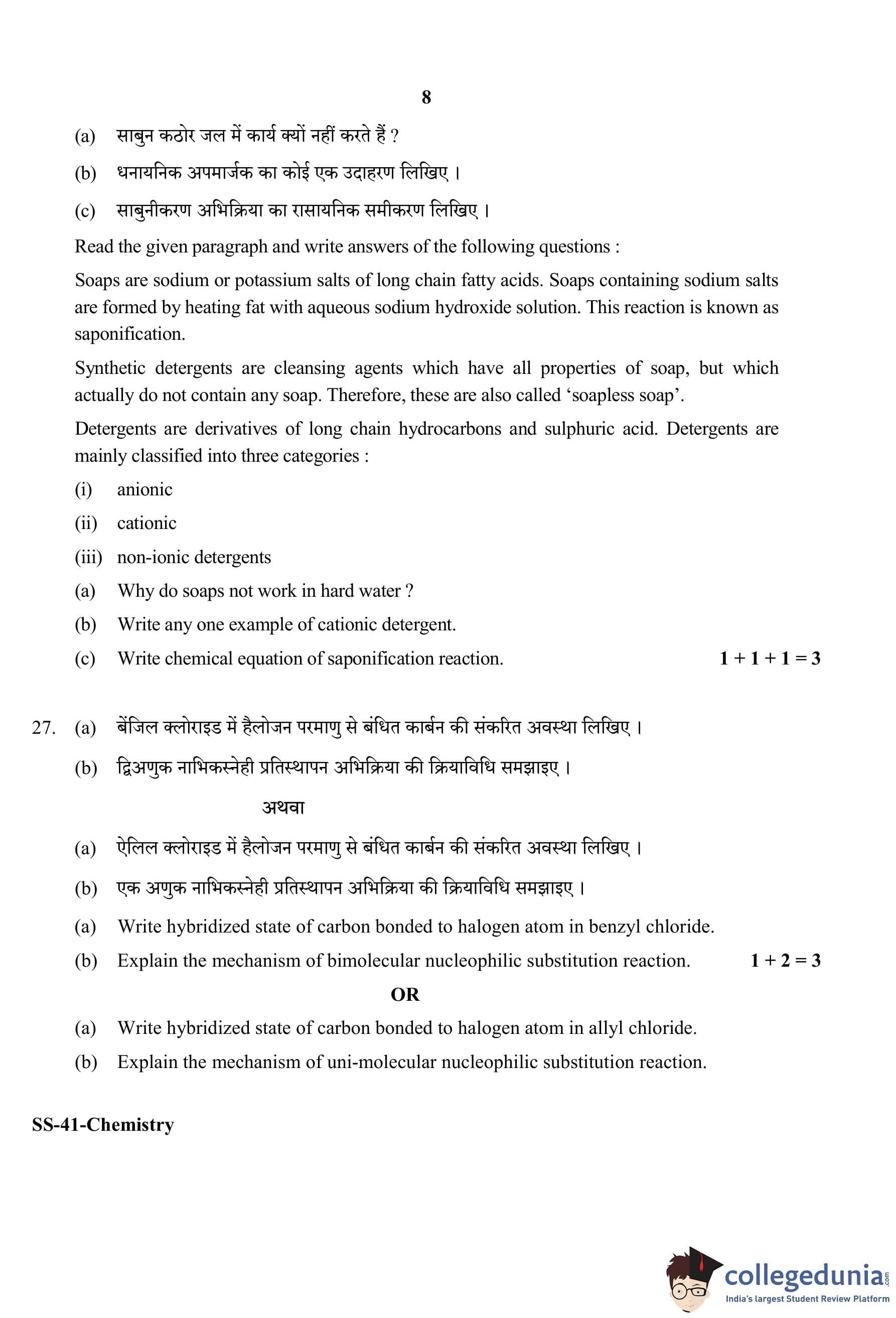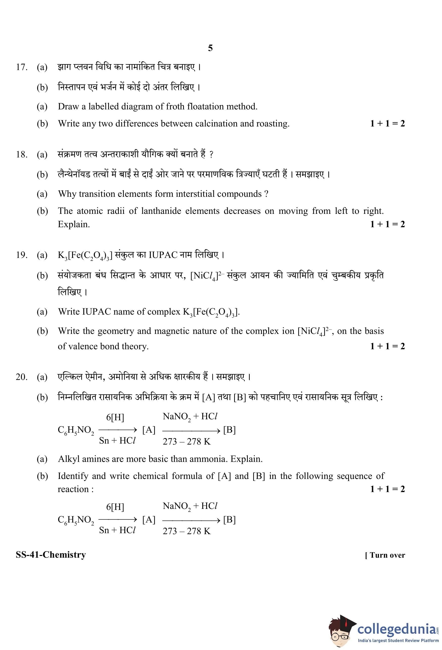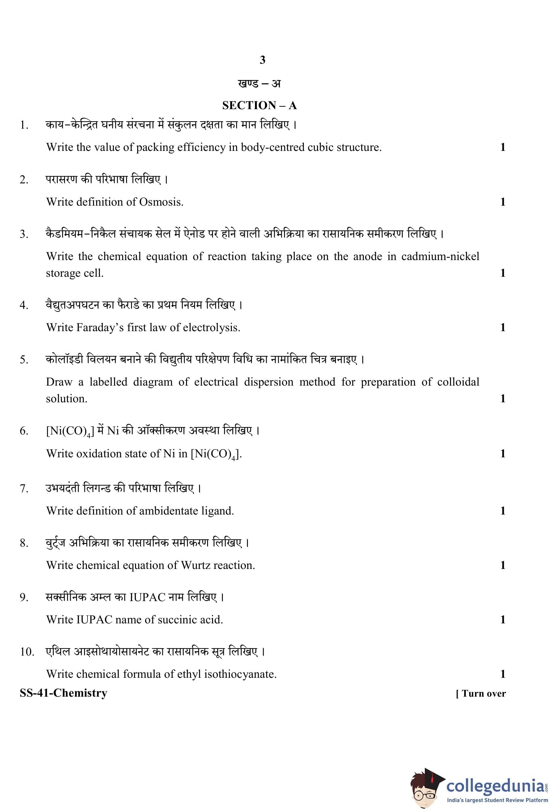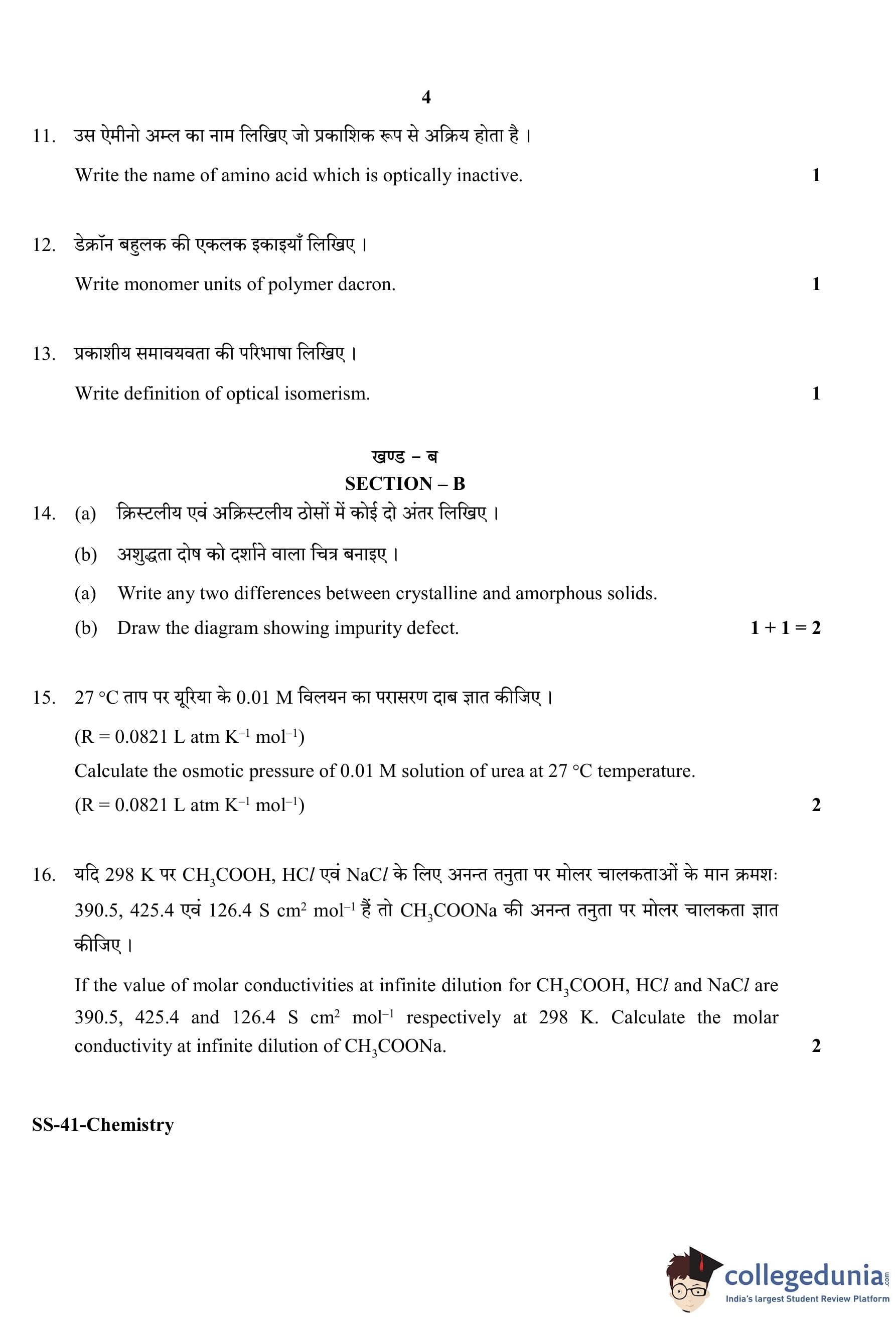 RBSE Class 12 Chemistry Question Paper 2020 with Answer Key pdf is available for download here. The exam was conducted by Board of Secondary Education Rajasthan (BSER) on March 17, 2020 in the Morning Session 8:30 AM to 11:45 AM. The question paper comprised a total of 30 questions divided among 4 sections.