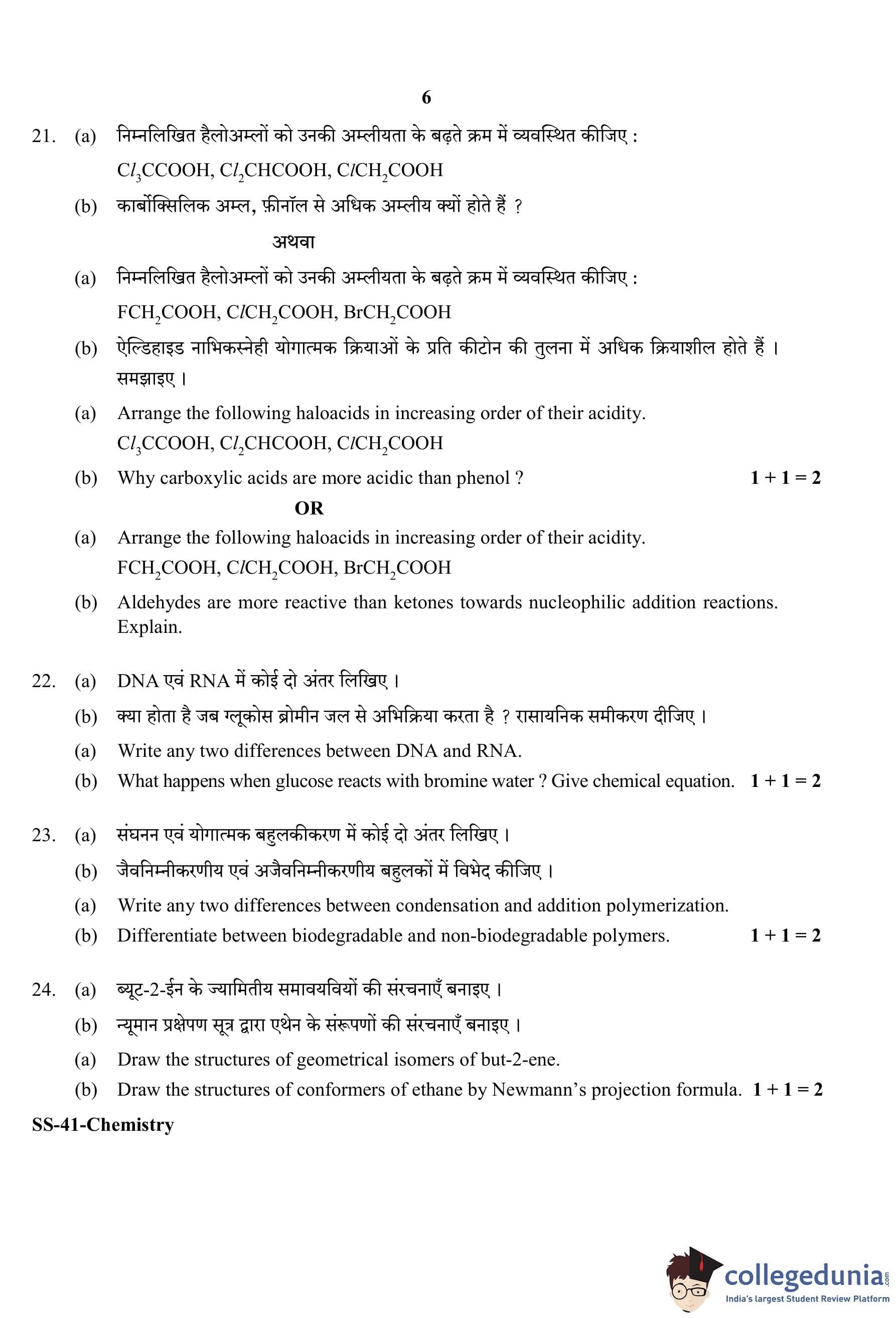 RBSE Class 12 Chemistry Question Paper 2020 with Answer Key