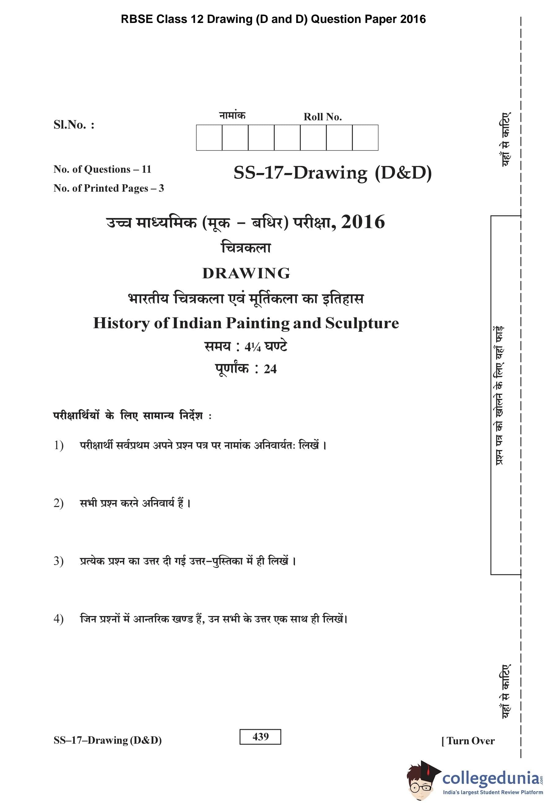 | RBSE Class 12 Drawing Question Paper 2016 PDF | RBSE Class 12 Drawing Answer Key 2016 PDF |