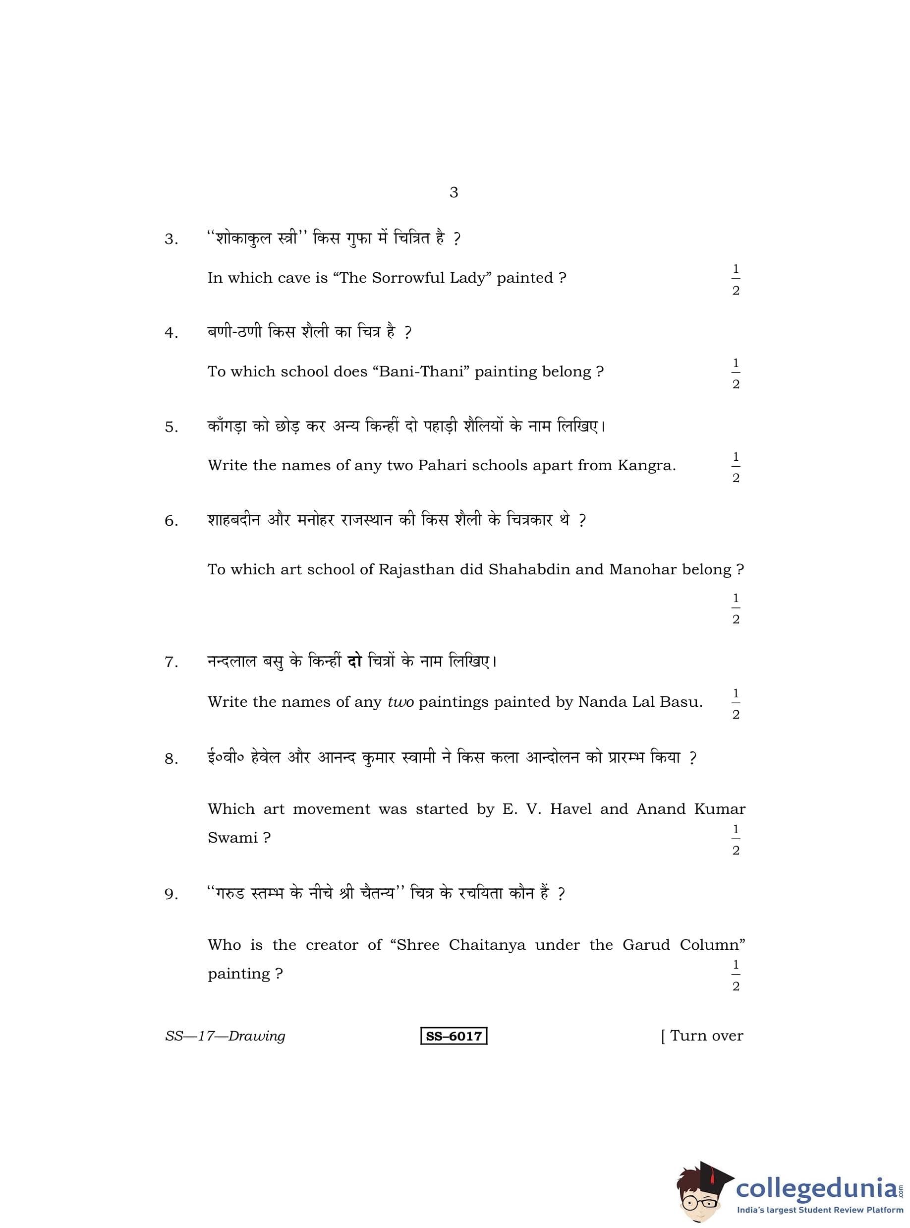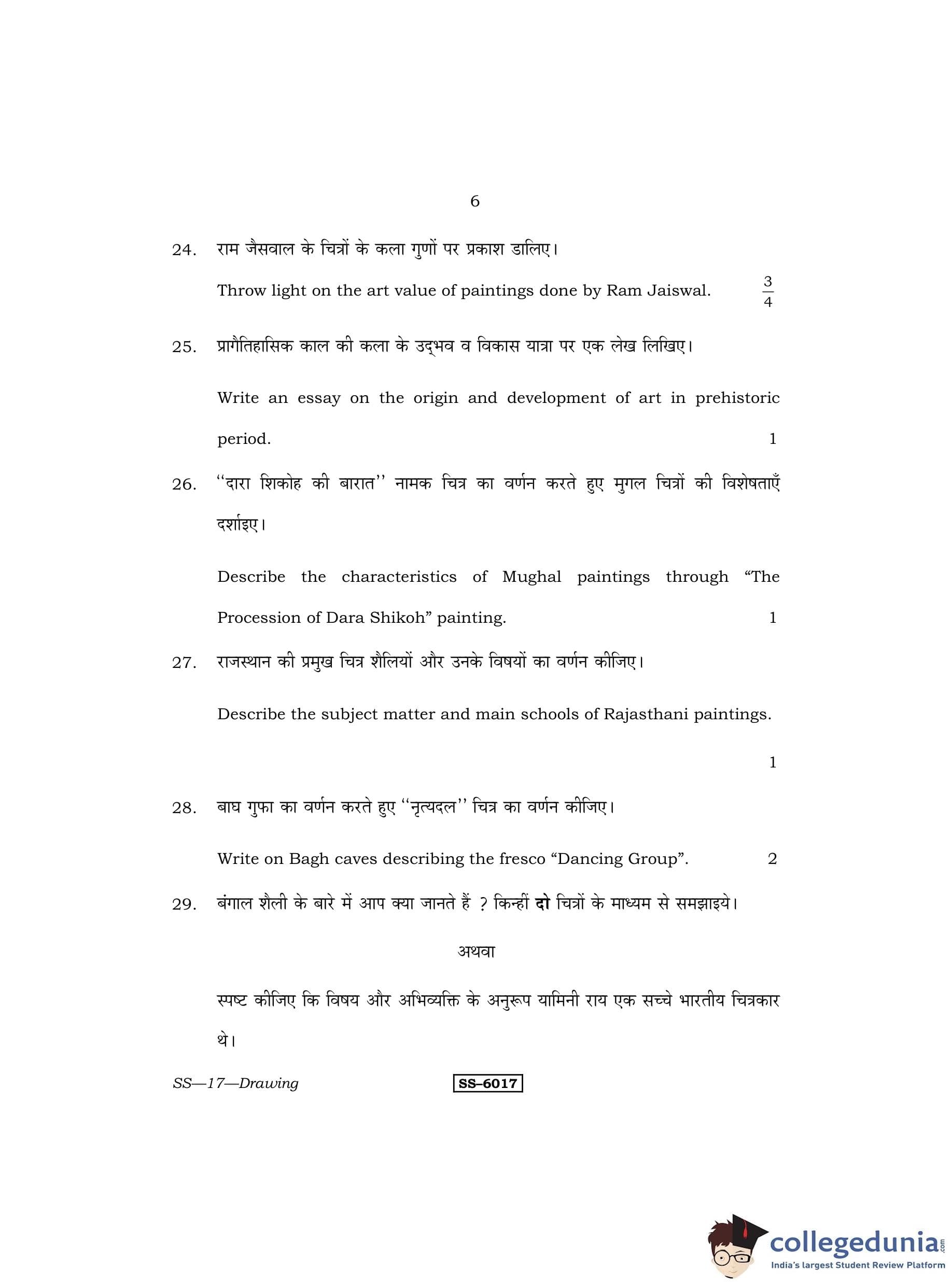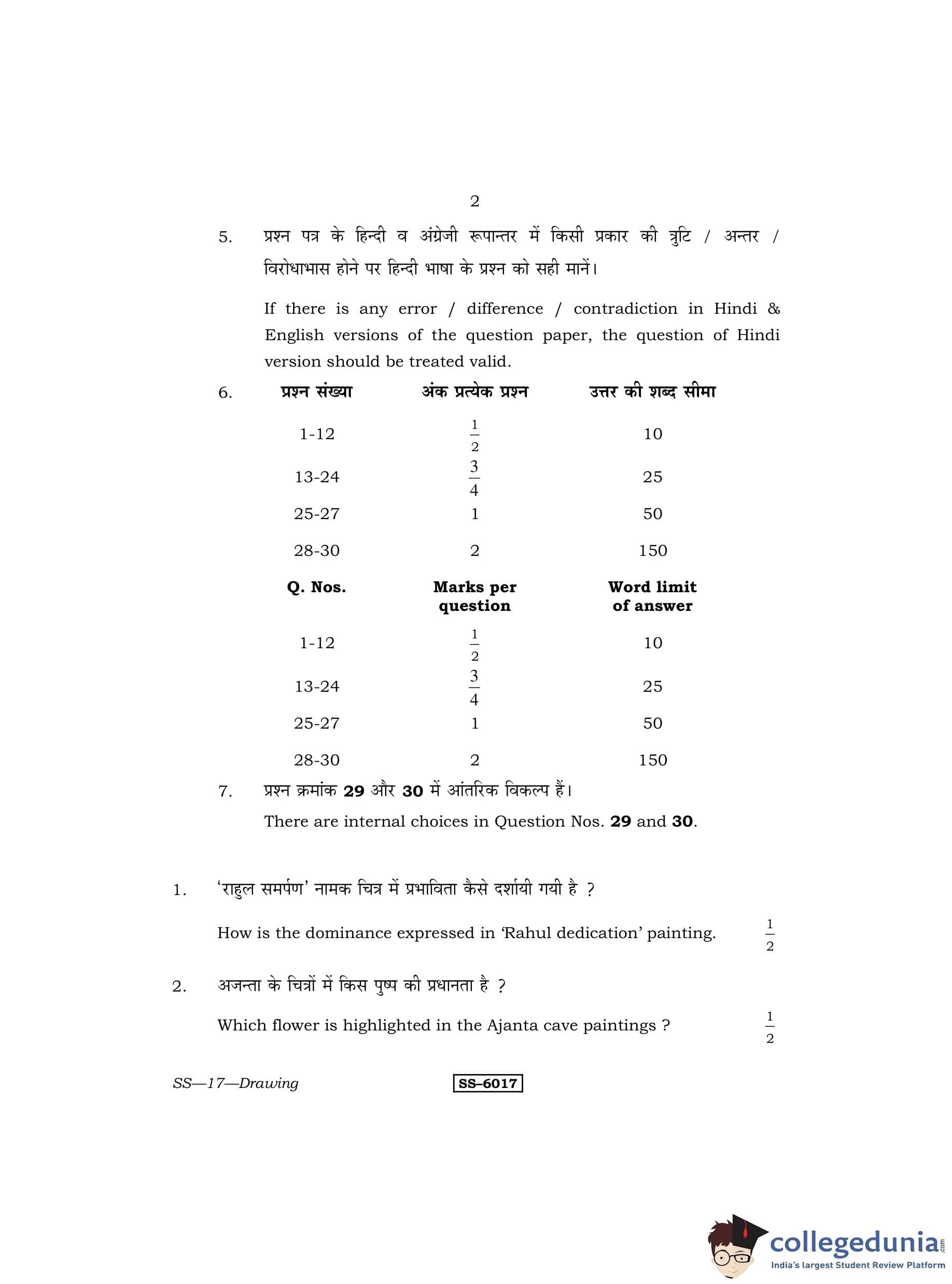 RBSE Class 12 Drawing Question Paper 2015 with Answer Key