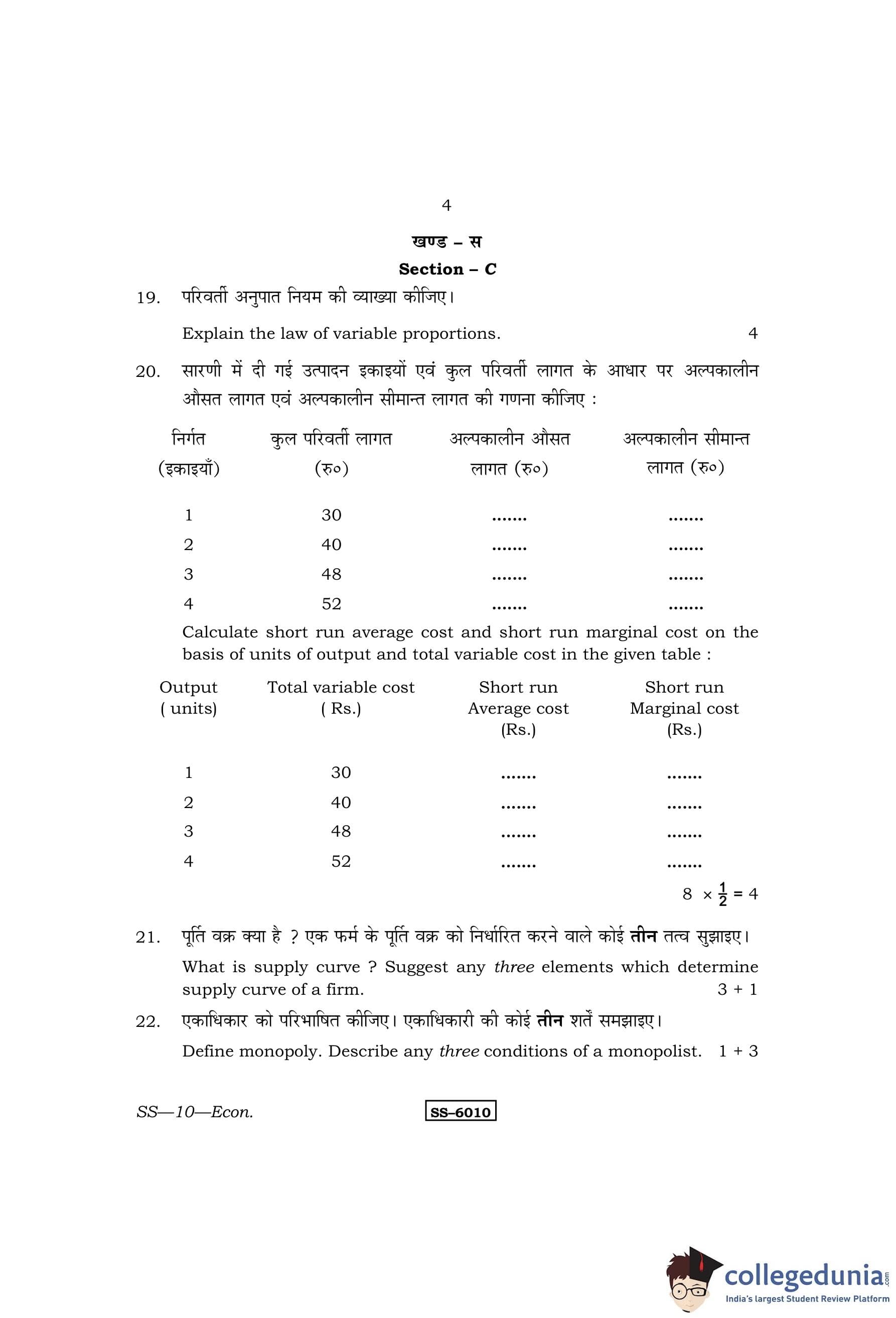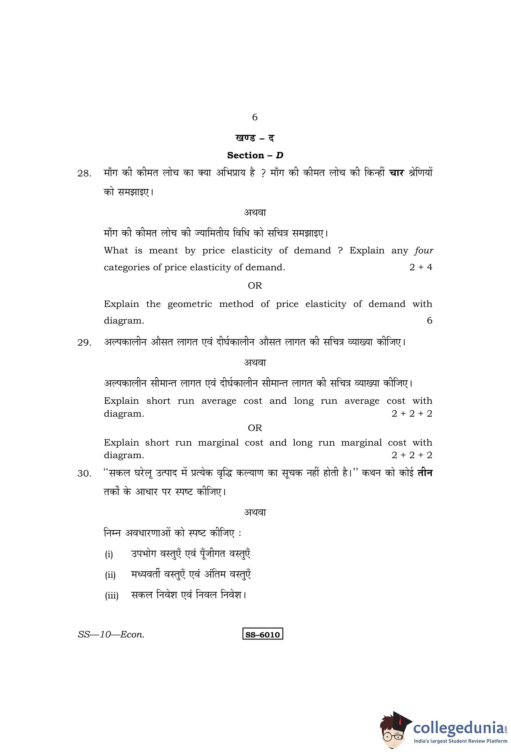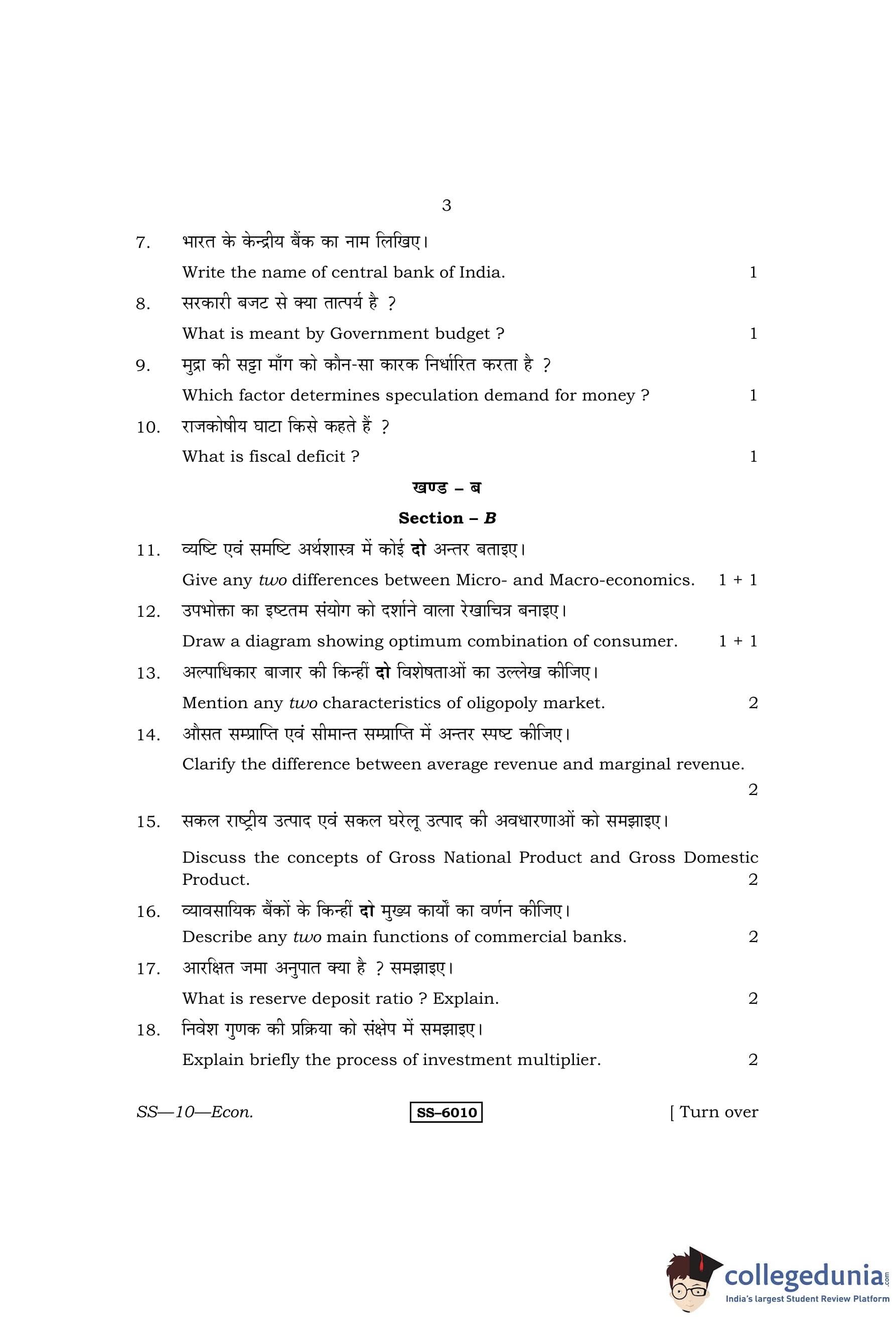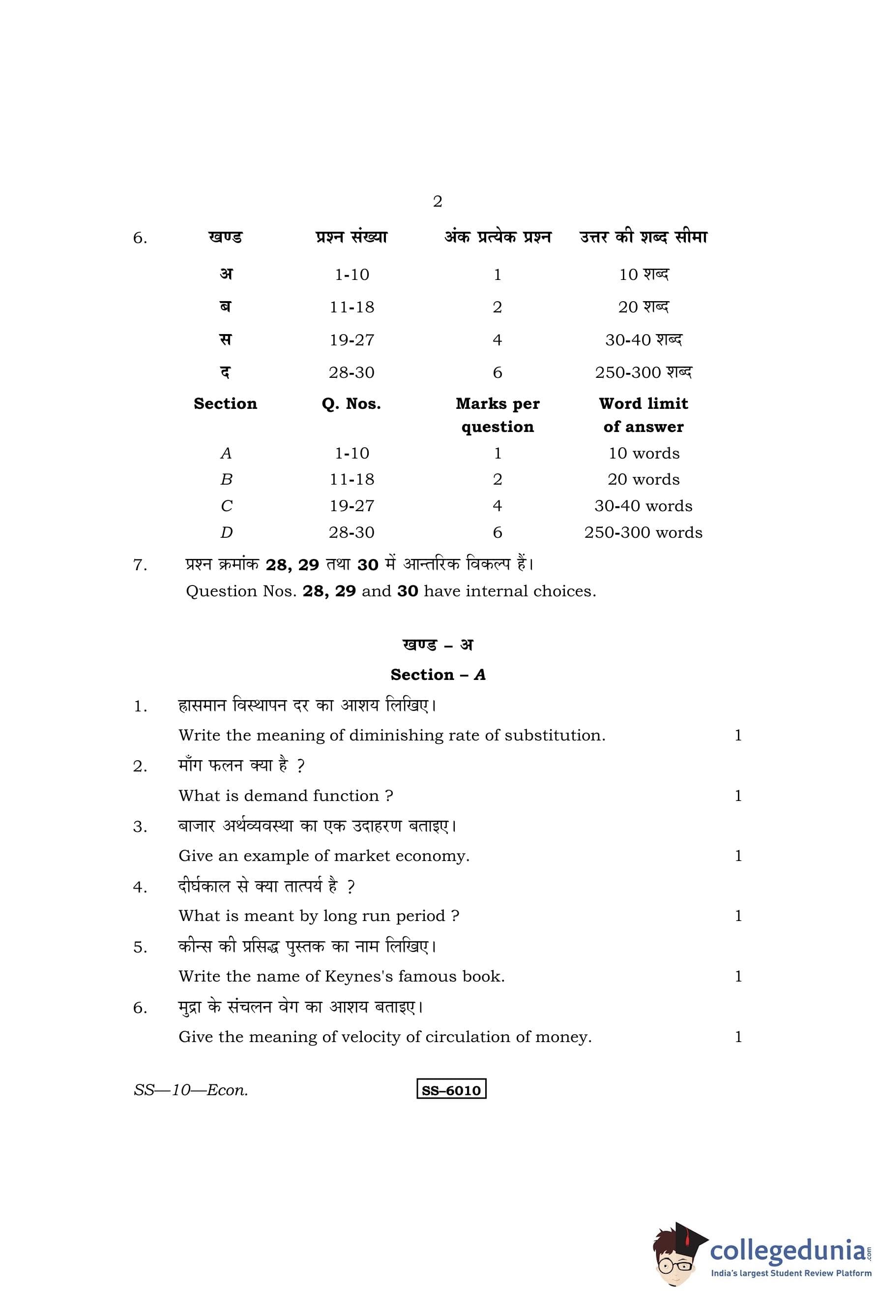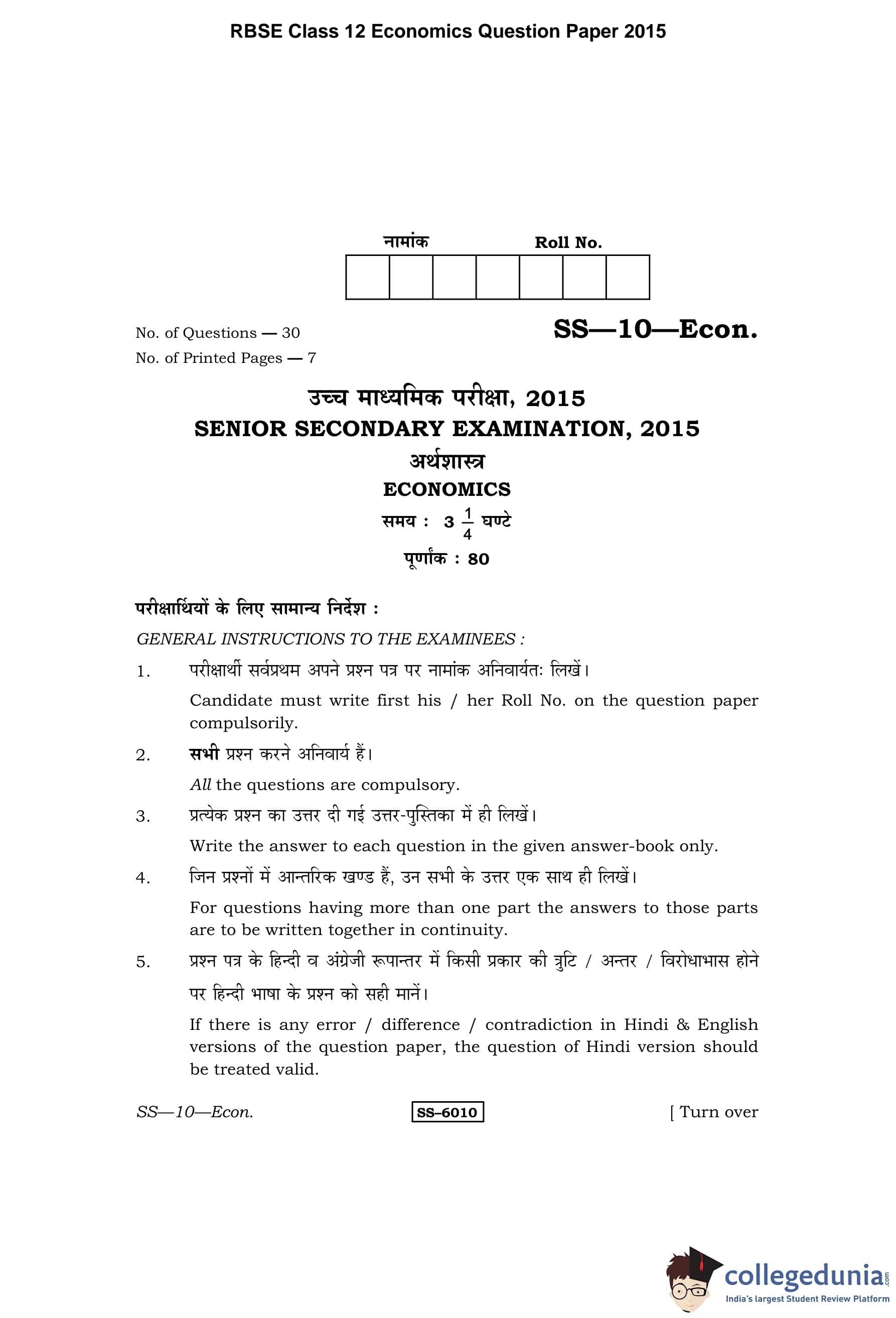 RBSE Class 12 Economics Question Paper 2015 with Answer Key pdf is available for download here. The exam was conducted by Board of Secondary Education Rajasthan (BSER) on March 31, 2015 in the Morning Session 8:30 AM to 11:45 AM. The question paper comprised a total of 30 questions divided among 4 sections.
