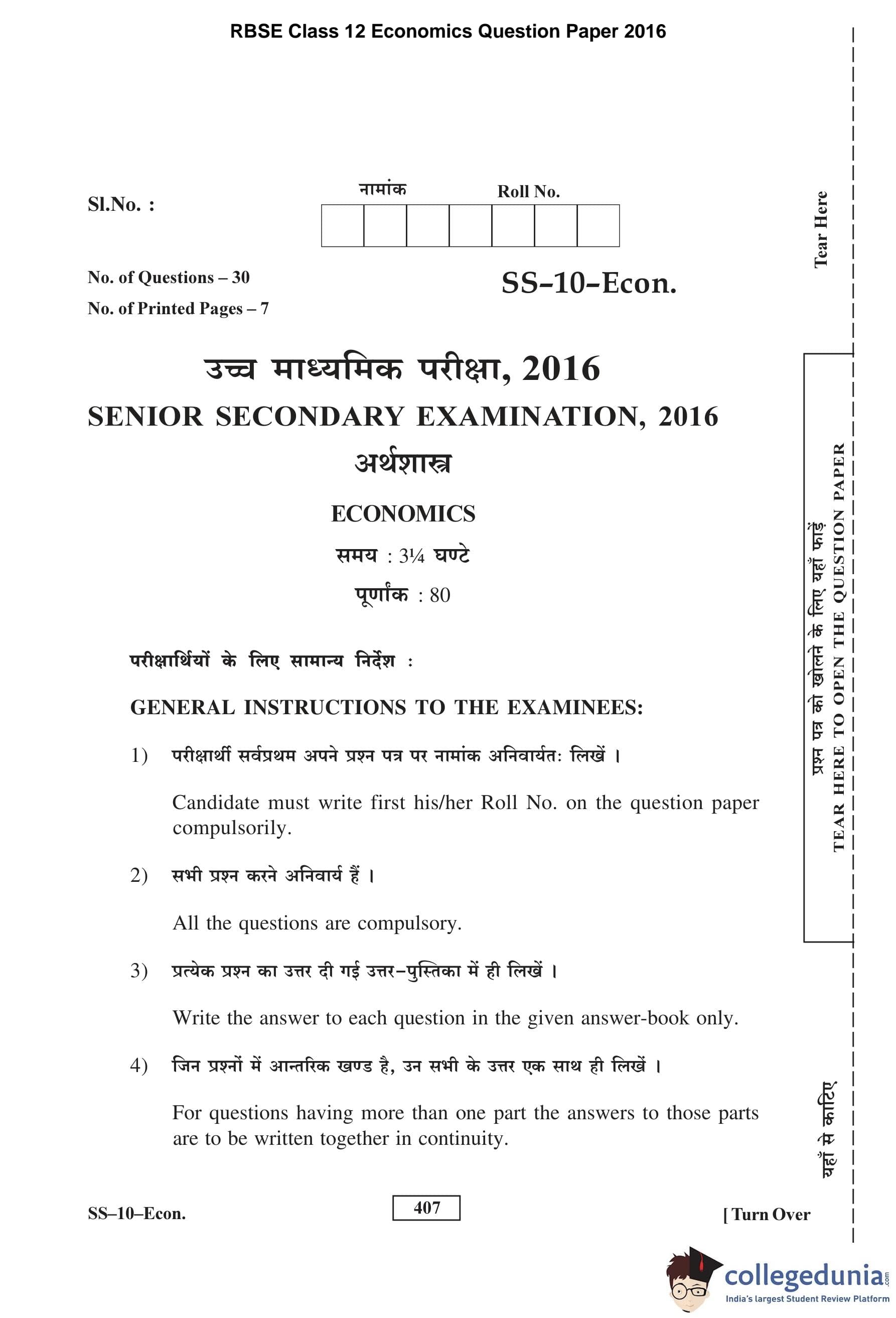 | RBSE Class 12 Economics Question Paper 2016 PDF | RBSE Class 12 Economics Answer Key 2016 PDF |