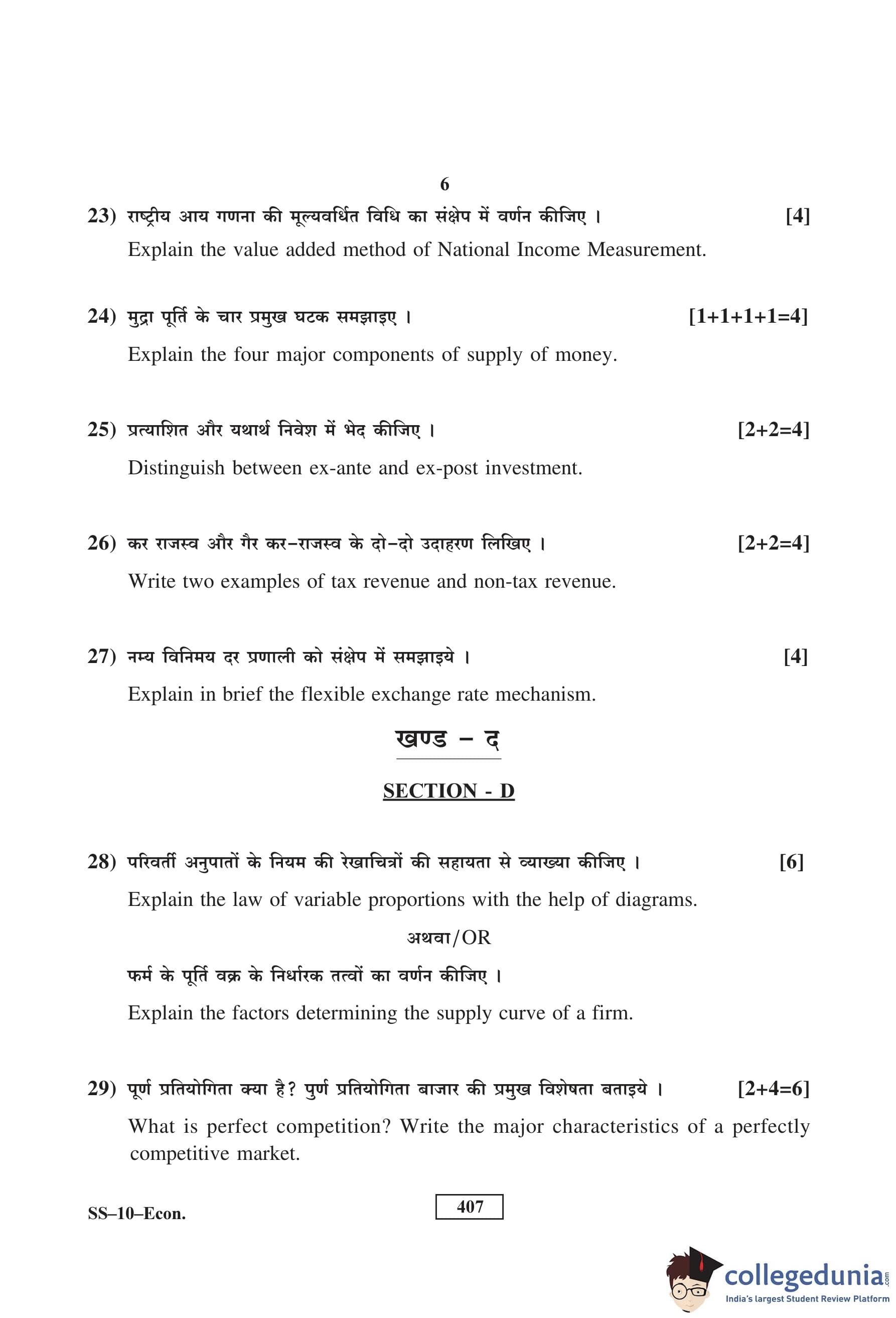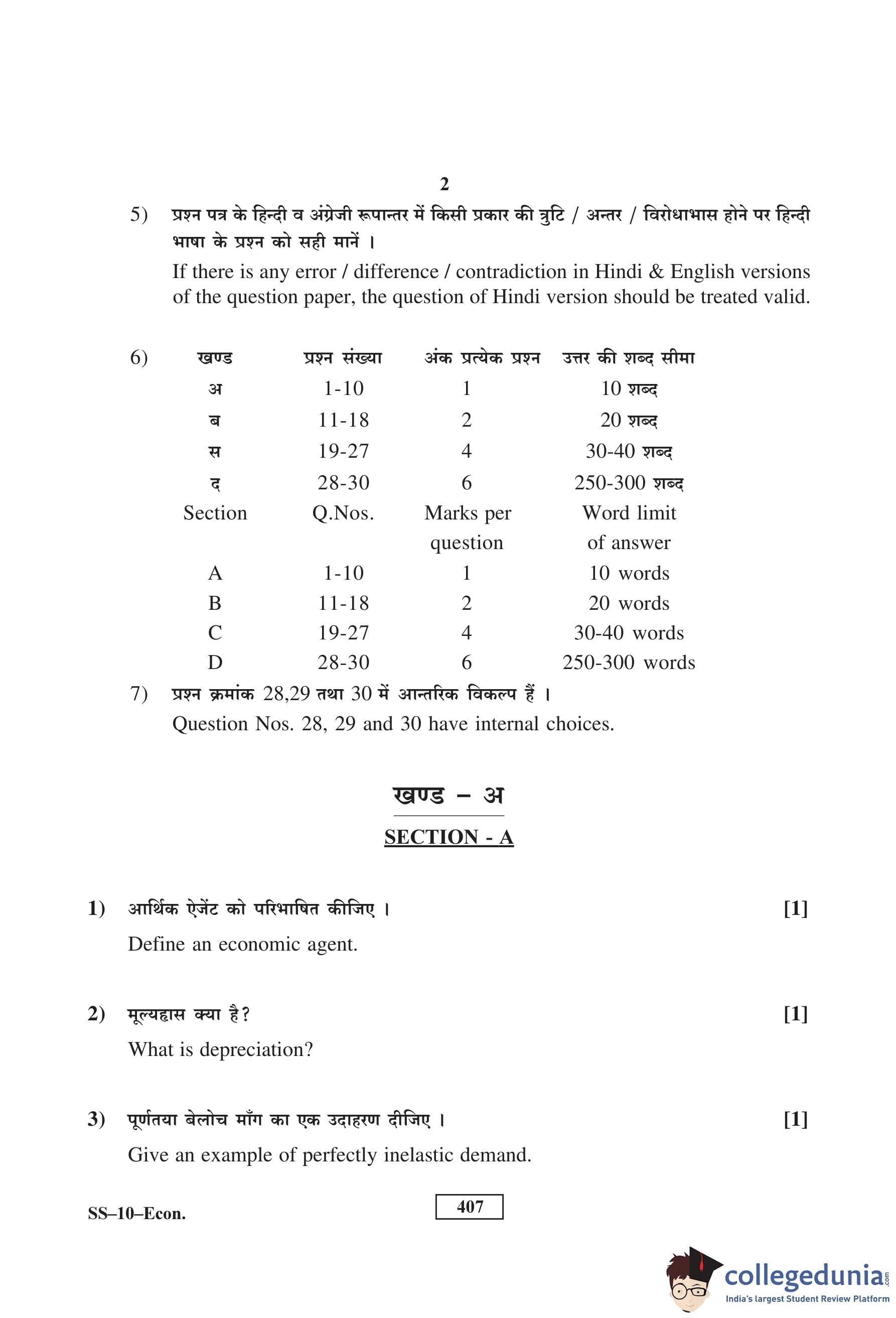RBSE Class 12 Economics Question Paper 2016 with Answer Key pdf is available for download here. The exam was conducted by Board of Secondary Education Rajasthan (BSER) on March 15, 2016 in the Morning Session 8:30 AM to 11:45 AM. The question paper comprised a total of 30 questions divided among 4 sections.