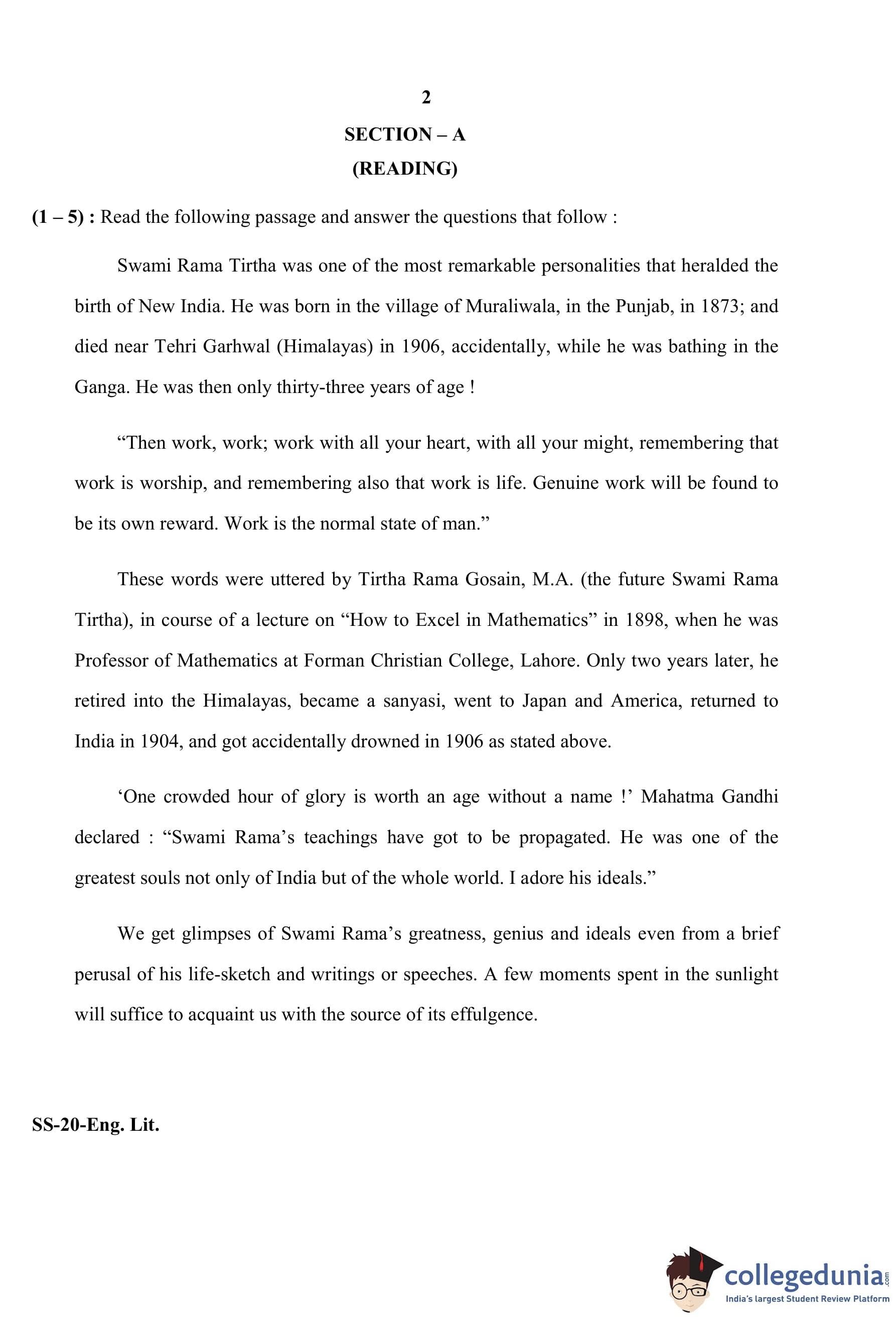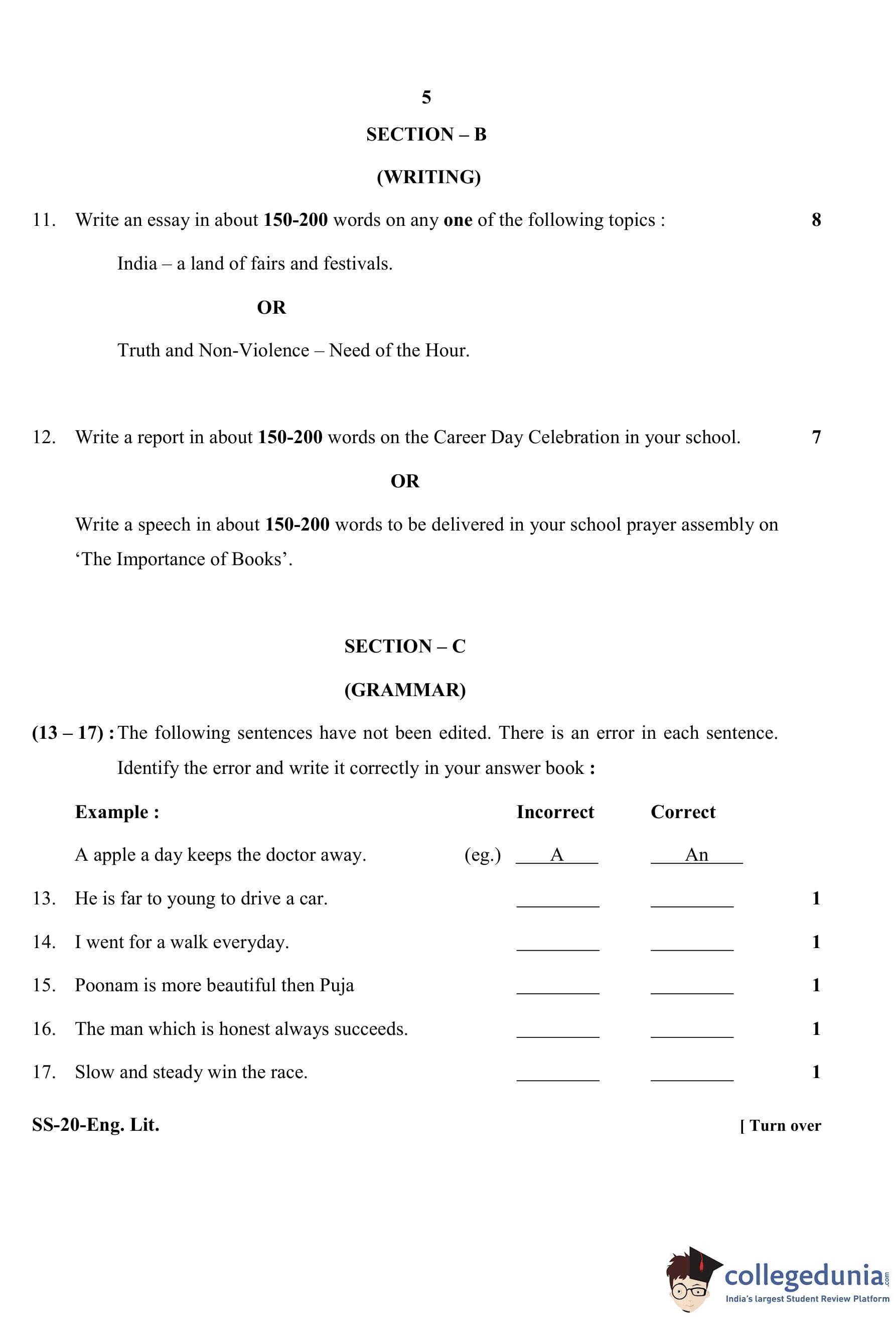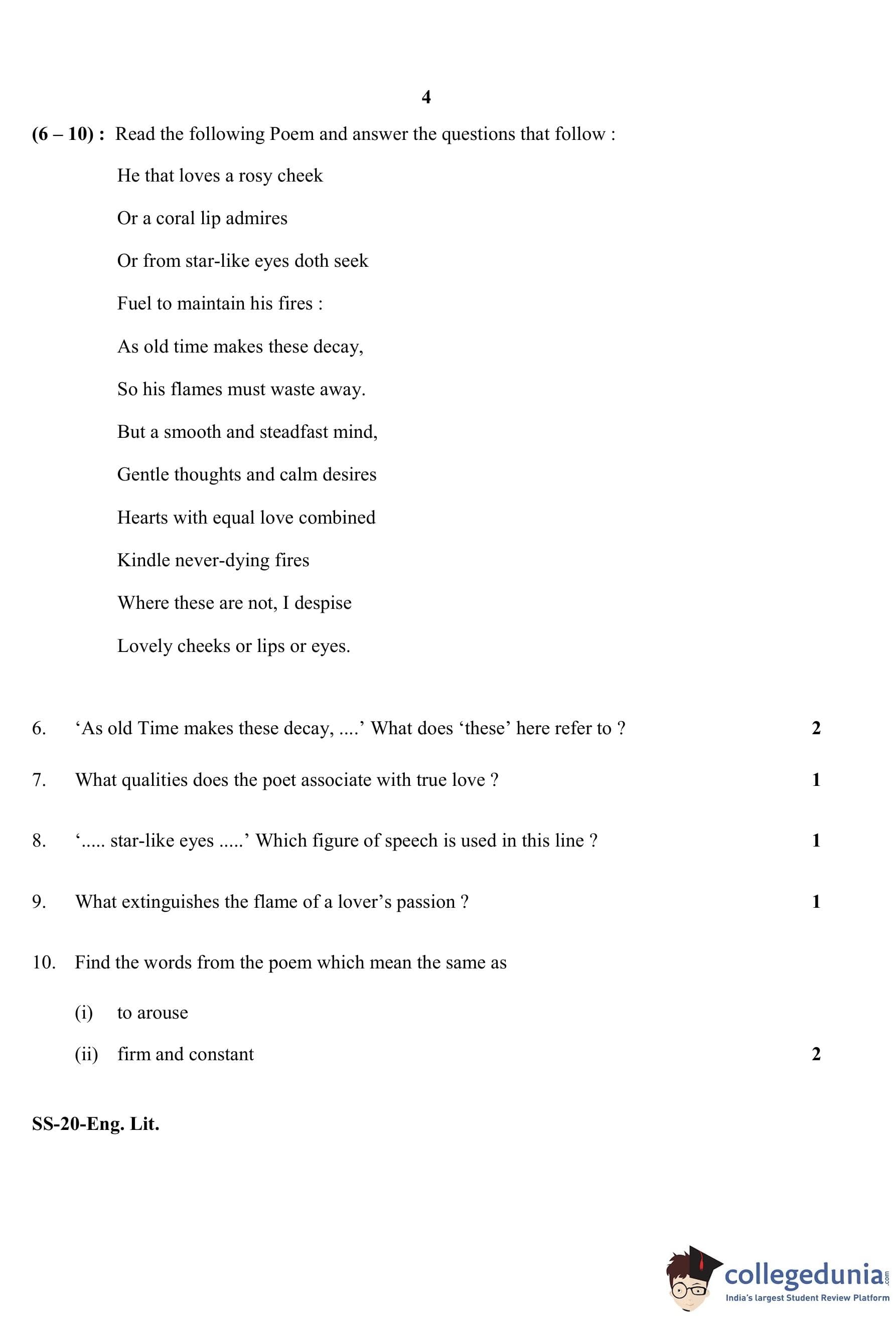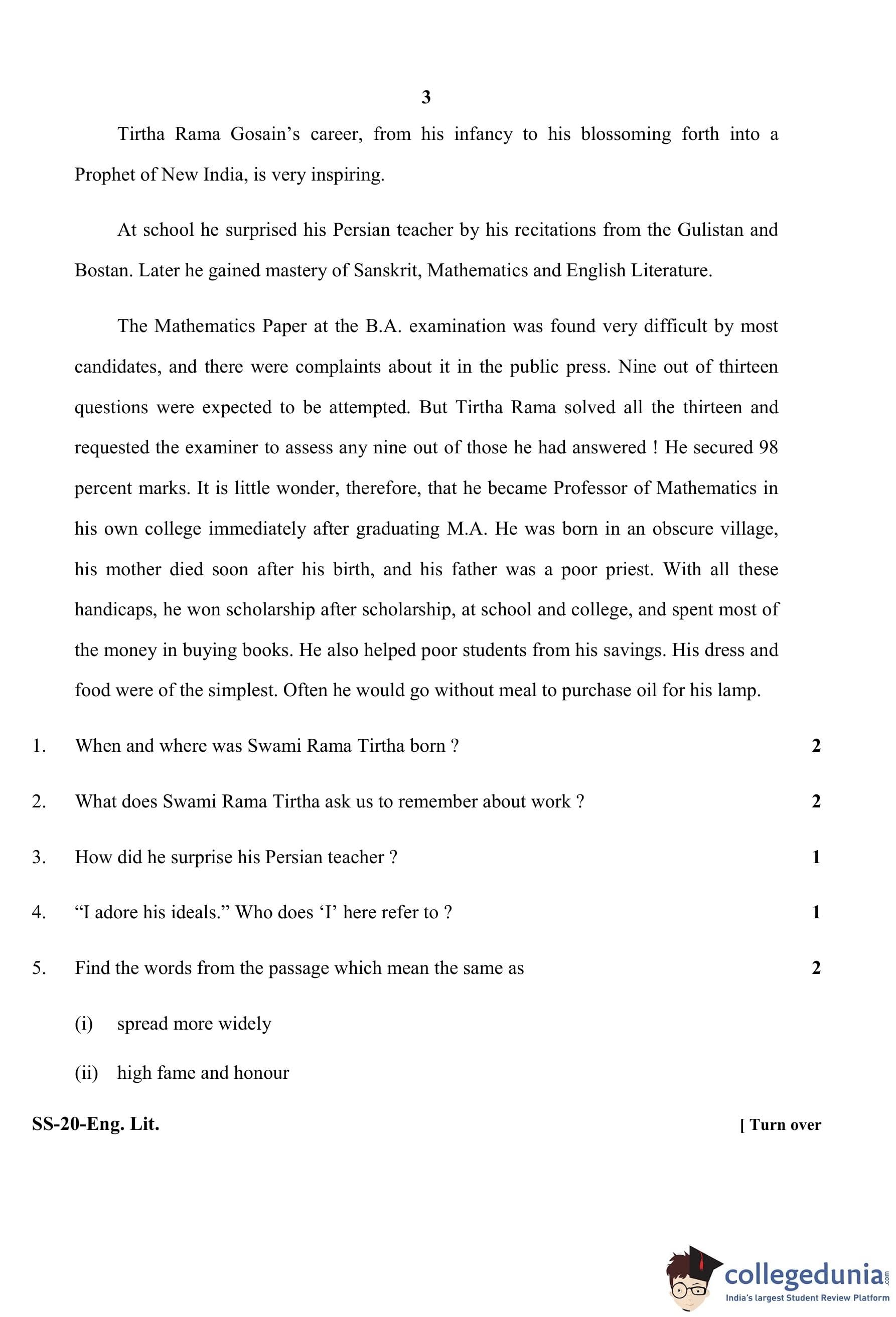 RBSE Class 12 English Literature Question Paper 2020 with Answer Key pdf is available for download here. The exam was conducted by Board of Secondary Education Rajasthan (BSER) on March 27, 2020 in the Morning Session 8:30 AM to 11:45 AM. The question paper comprised a total of 27 questions divided among 6 sections.