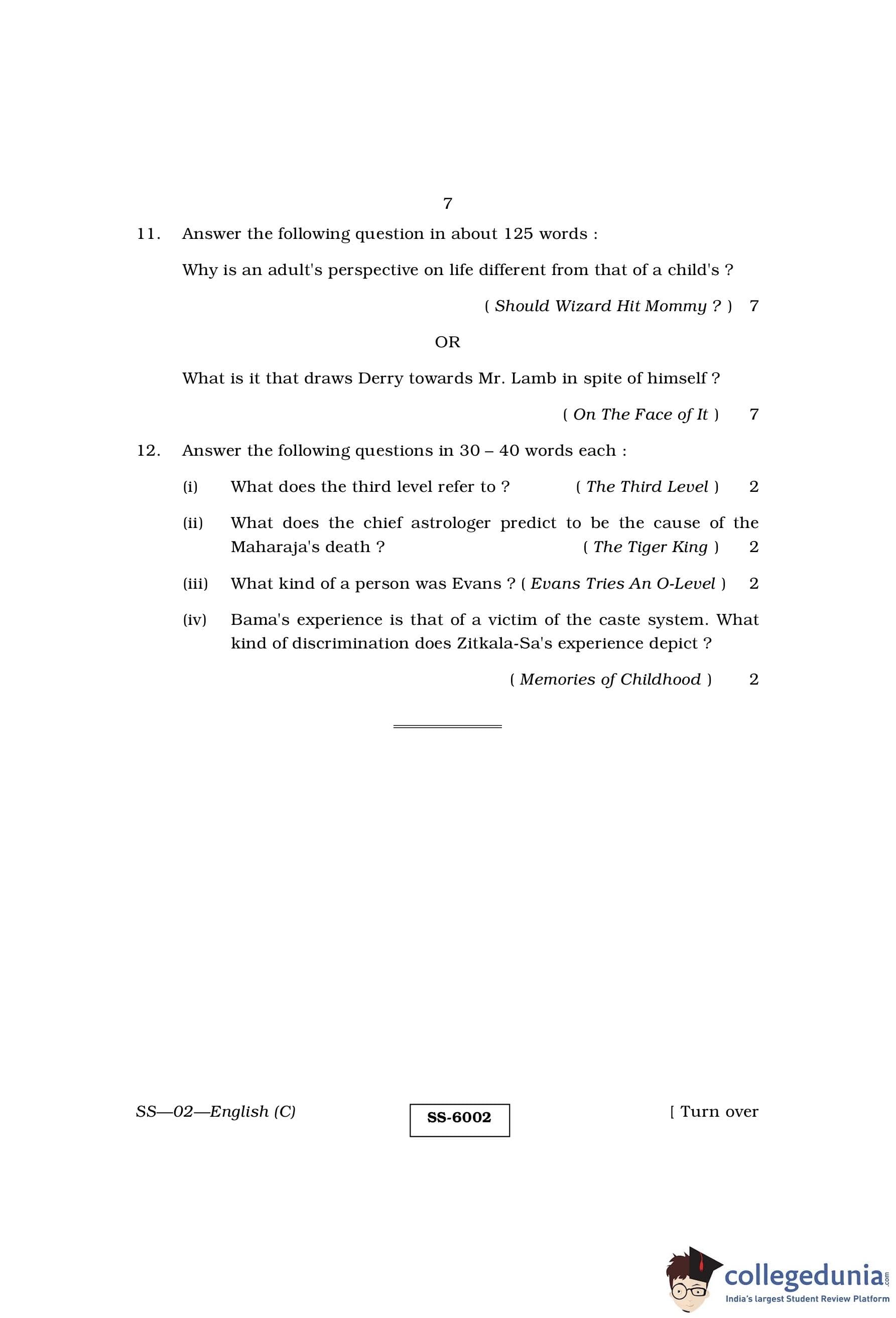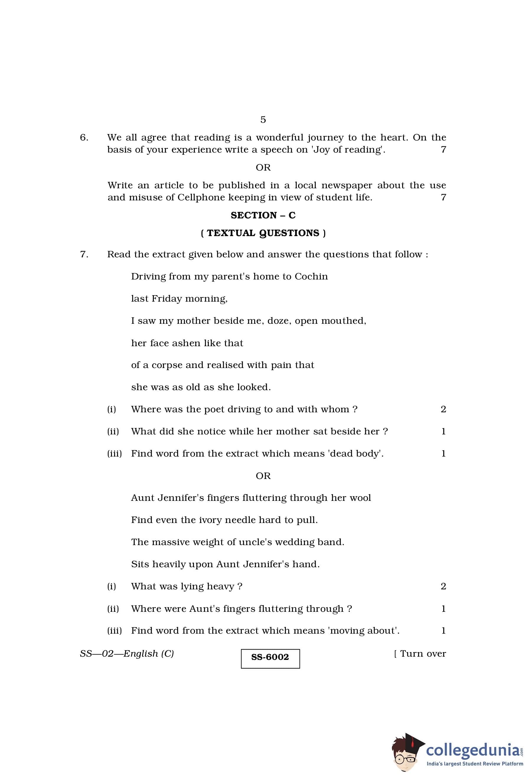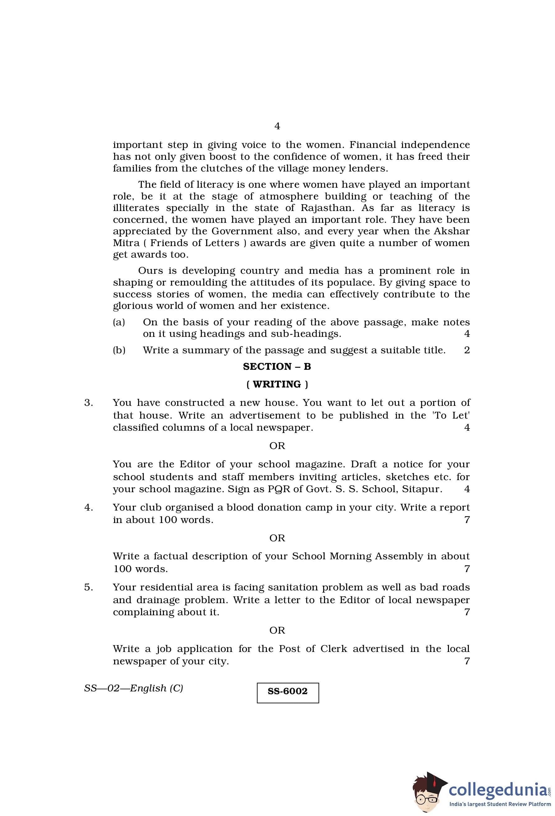 RBSE Class 12 English Question Paper 2015 with Answer Key