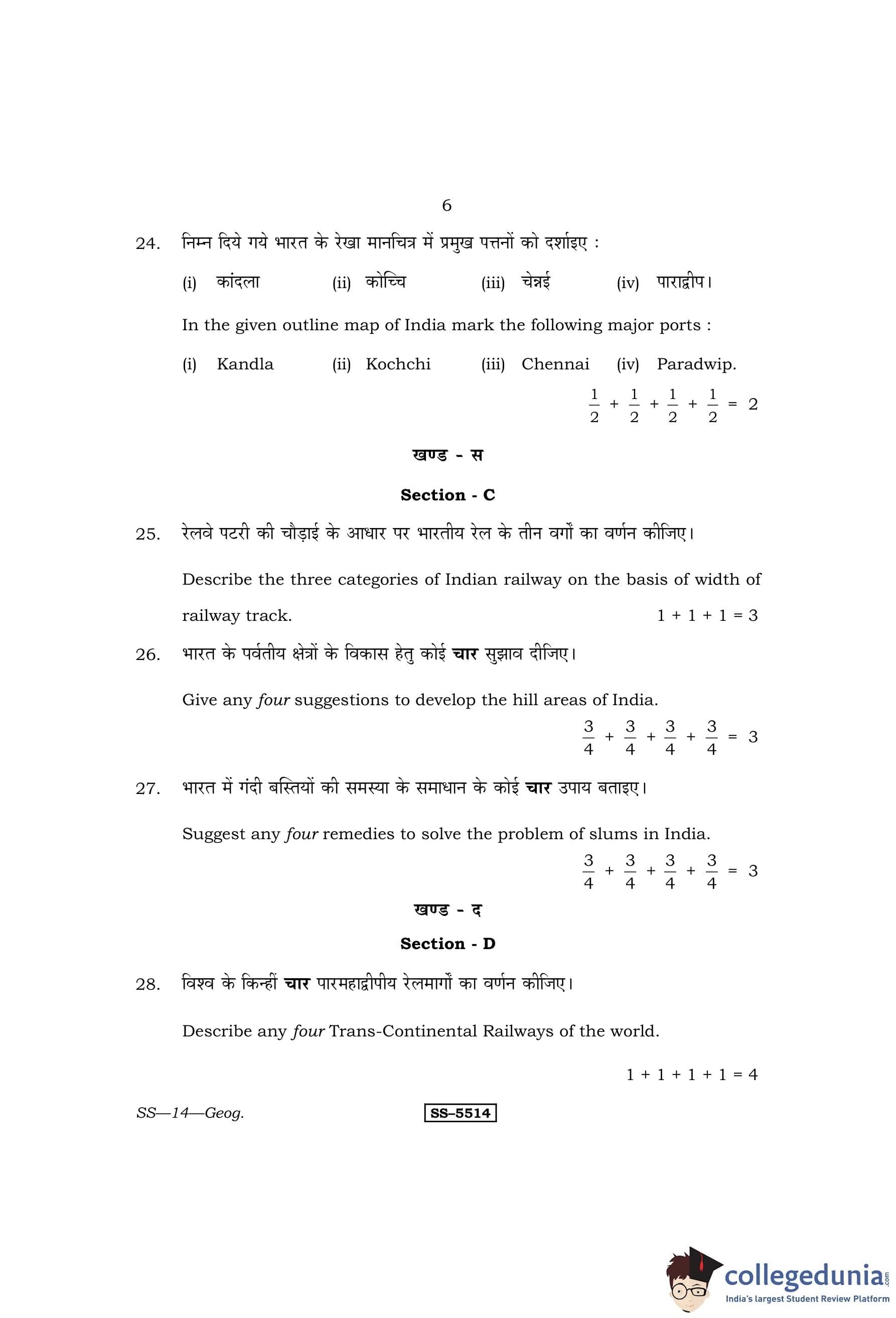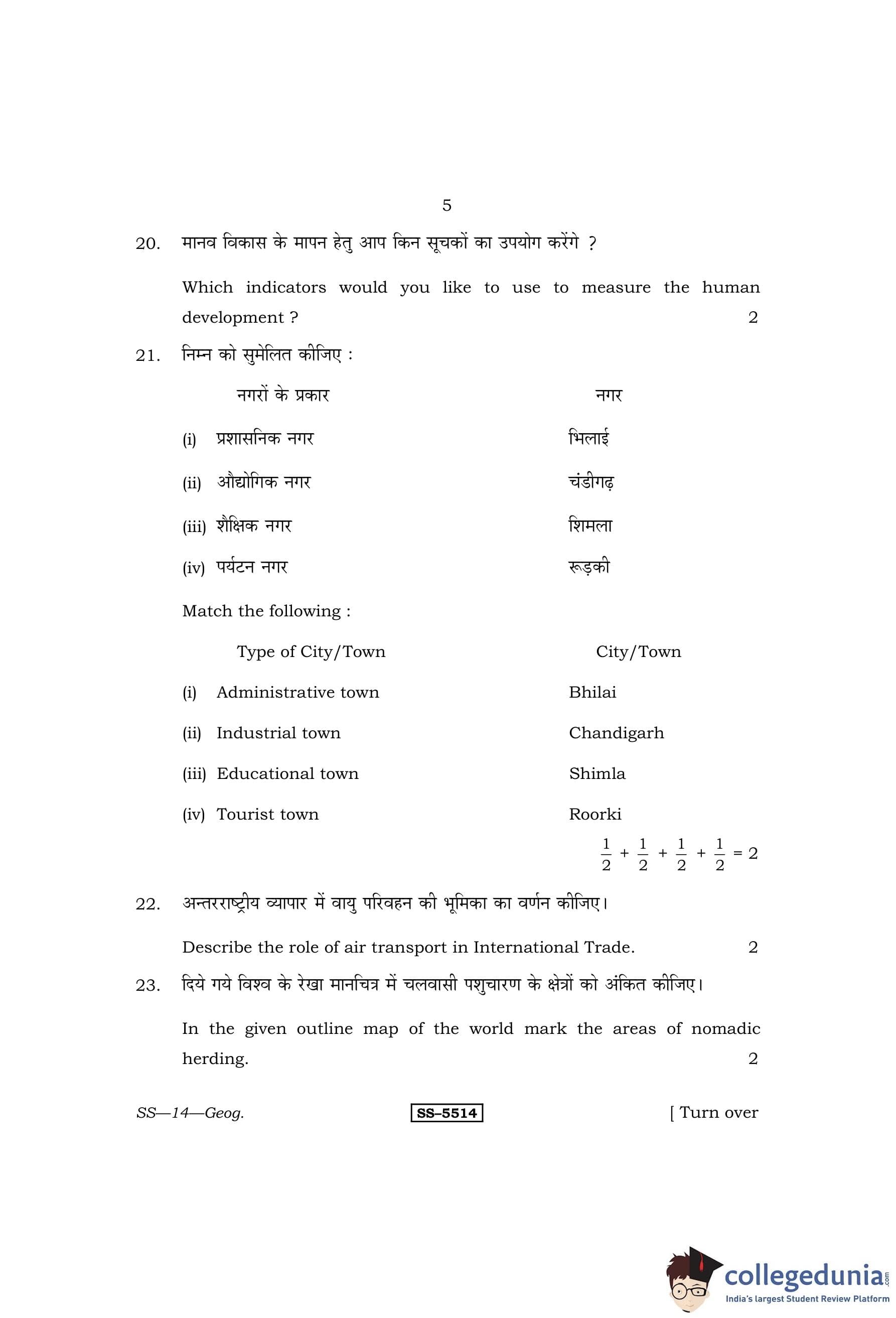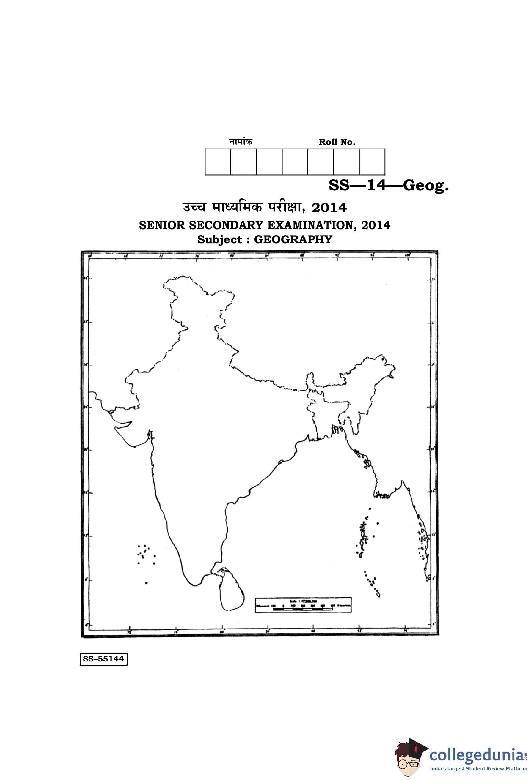 RBSE Class 12 Geography Question Paper 2014 with Answer Key