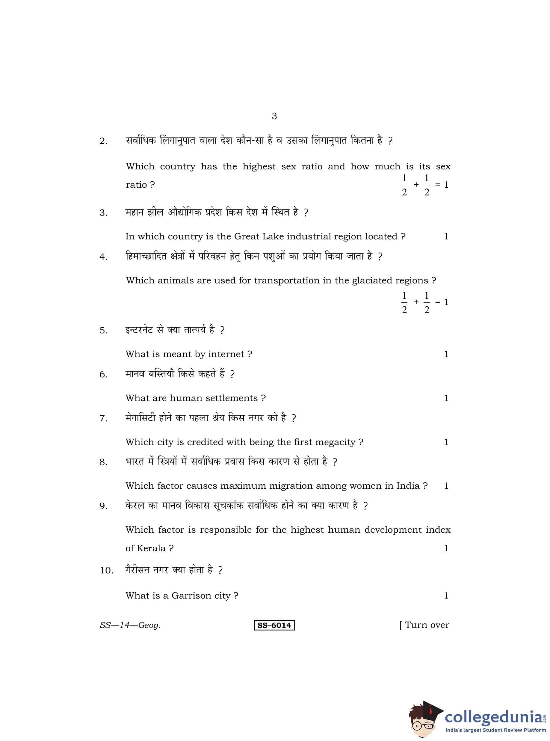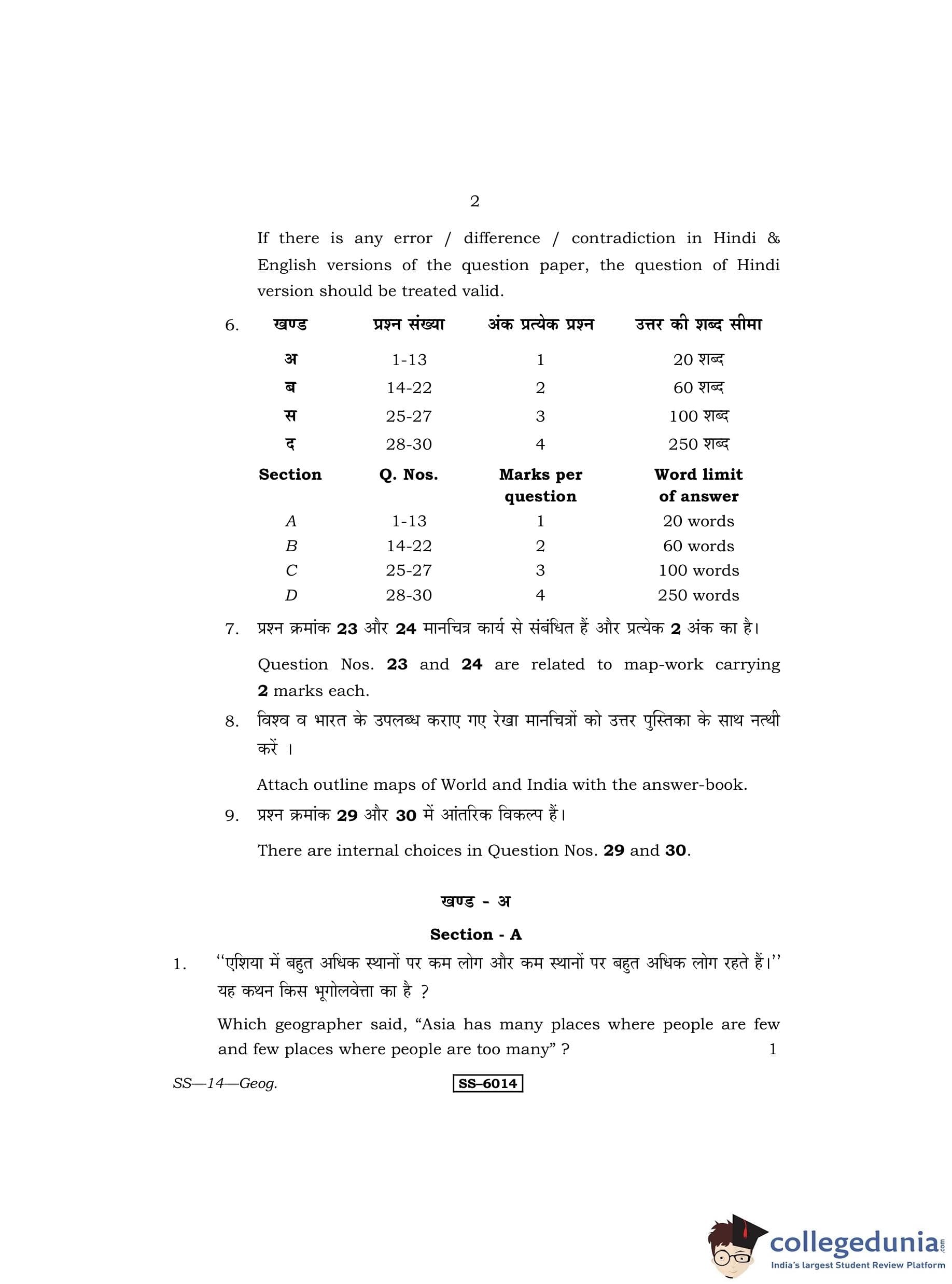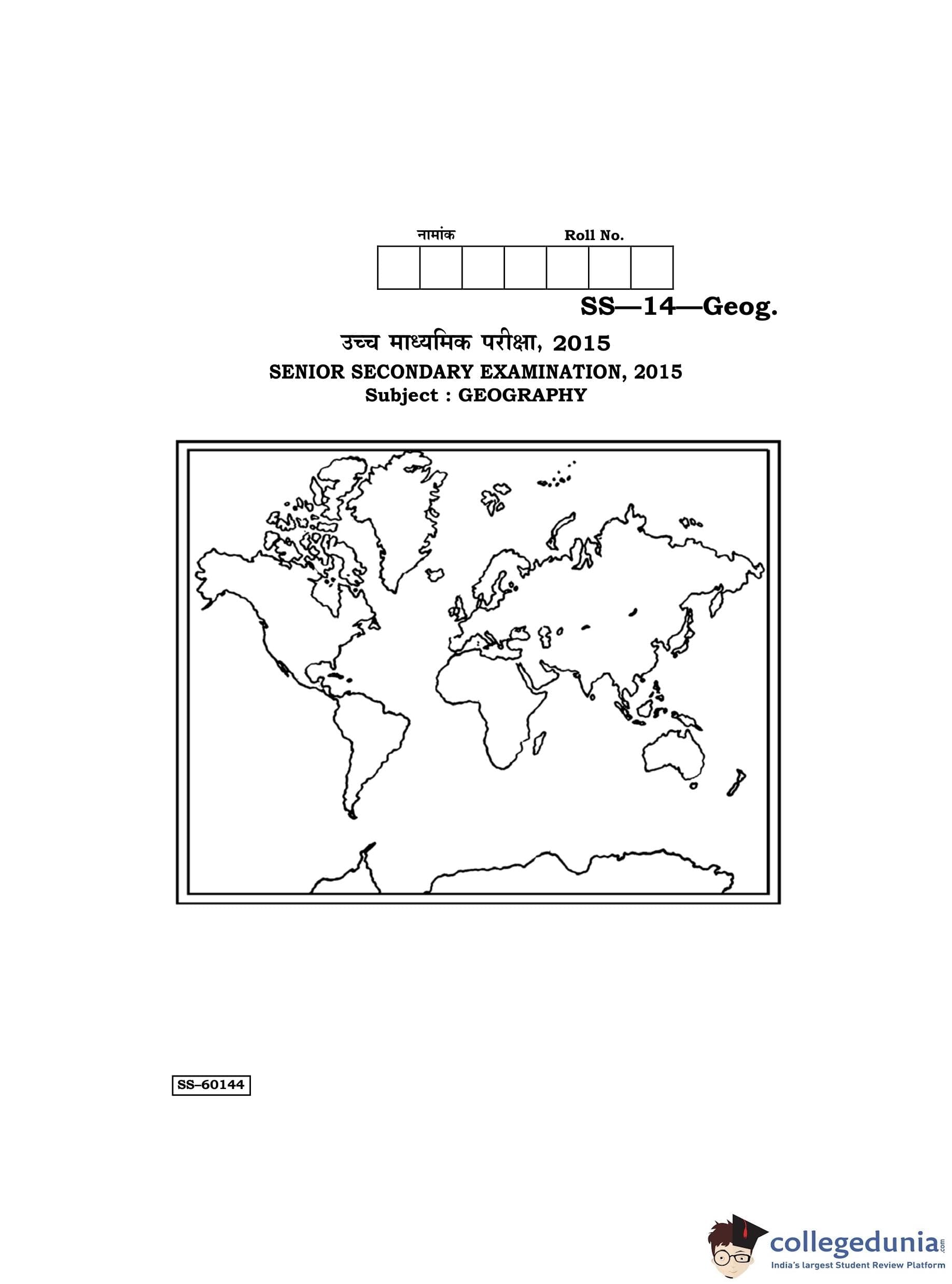 RBSE Class 12 Geography Question Paper 2015 with Answer Key