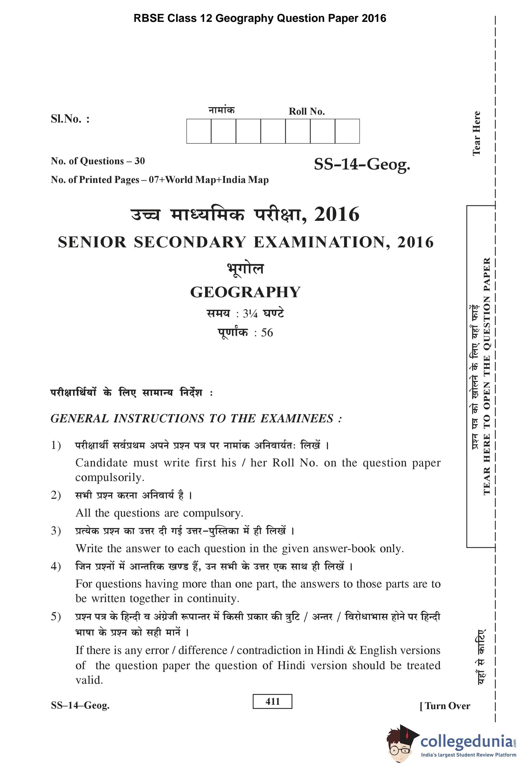| RBSE Class 12 Geography Question Paper 2016 PDF | RBSE Class 12 Geography Answer Key 2016 PDF |