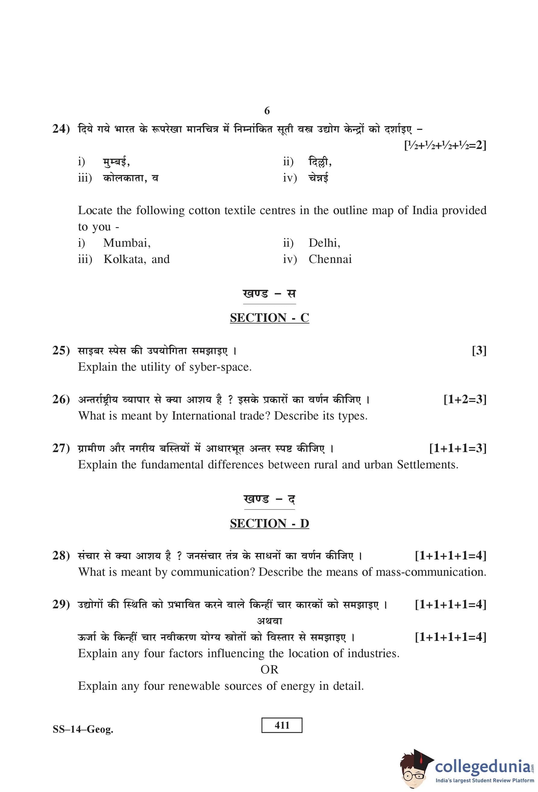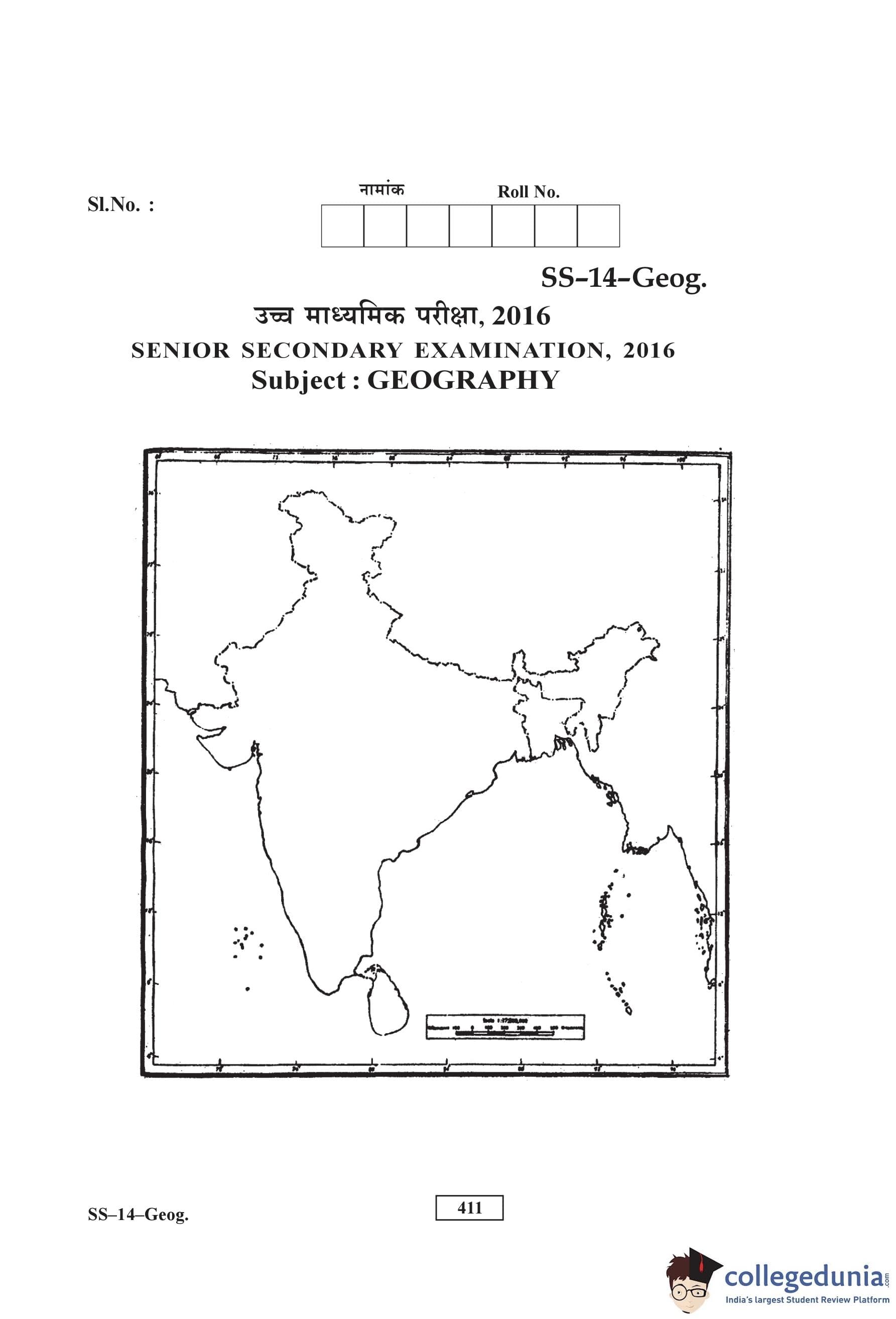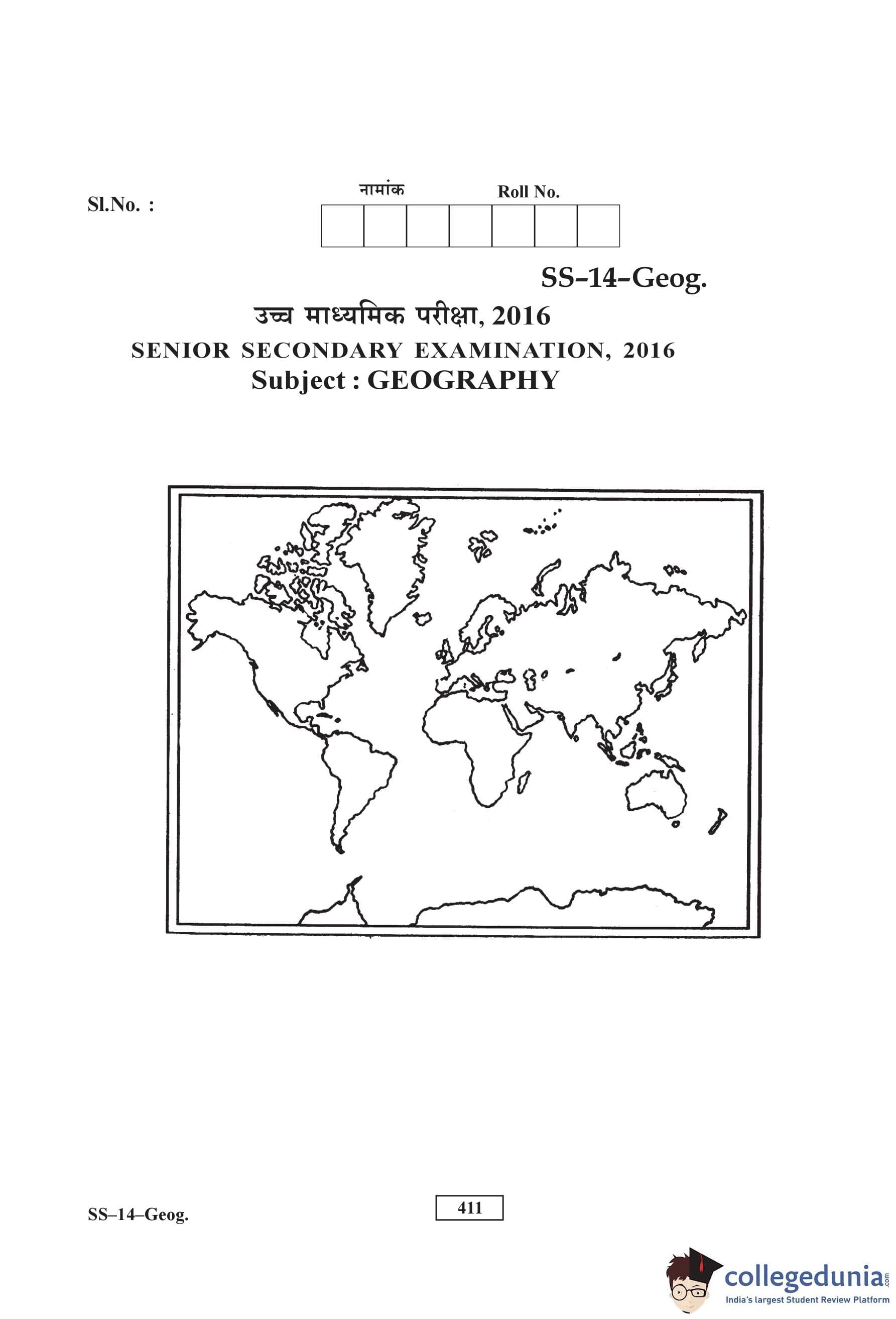 RBSE Class 12 Geography Question Paper 2016 with Answer Key